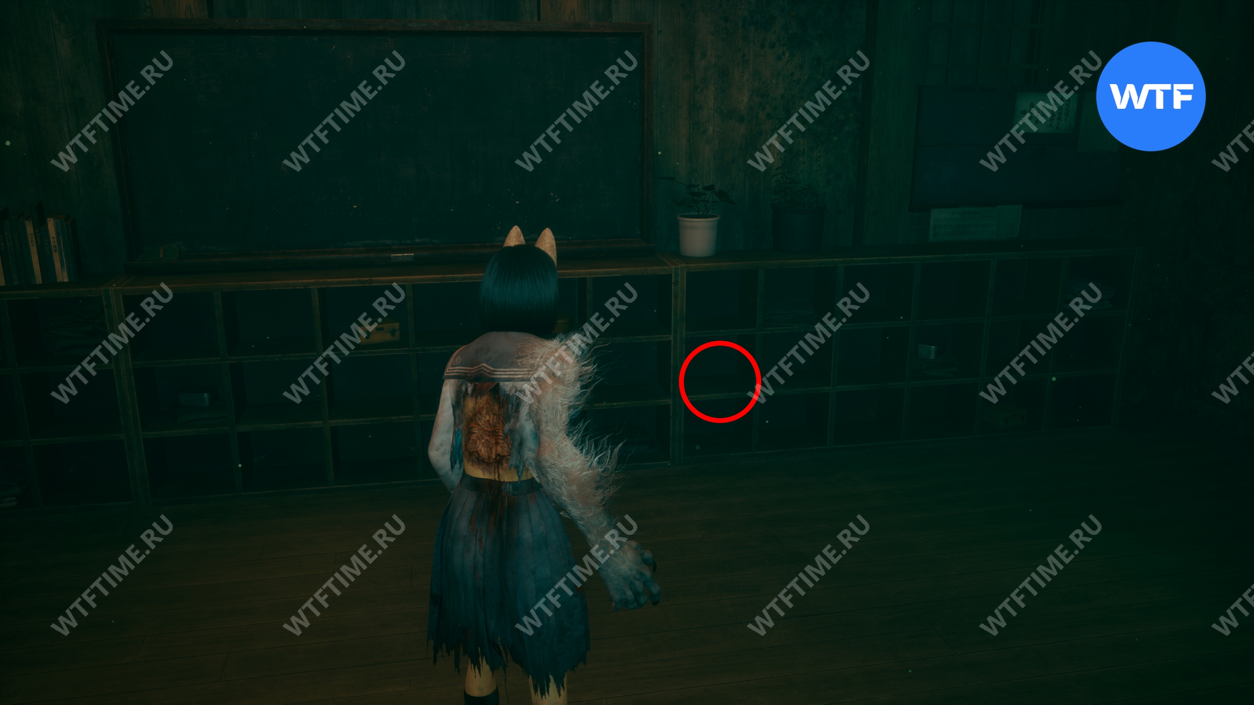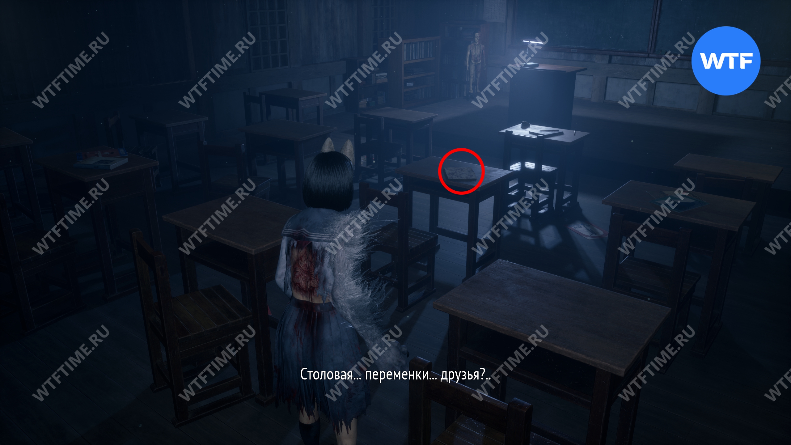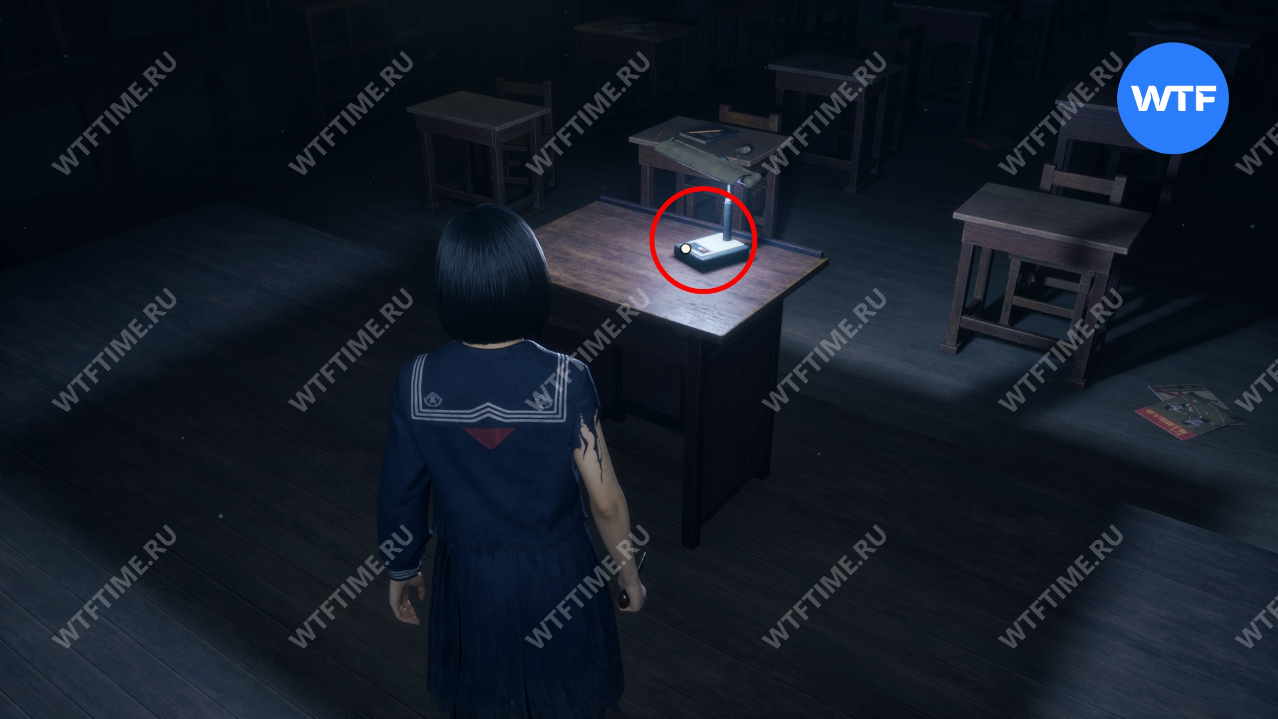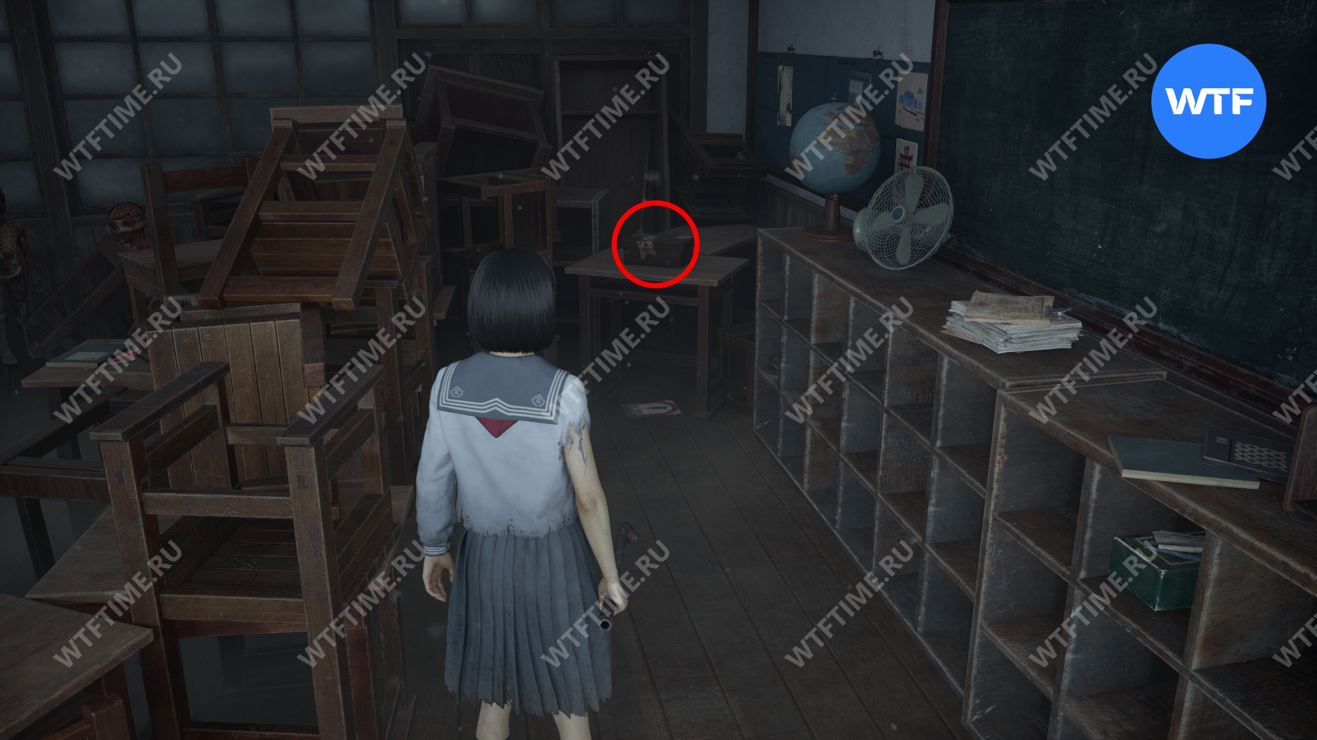 В этом же классе, но уже ПОСЛЕ взаимодействия с лампой, на шкафу у восточной стены можно забрать еще один Дневник Ринко.