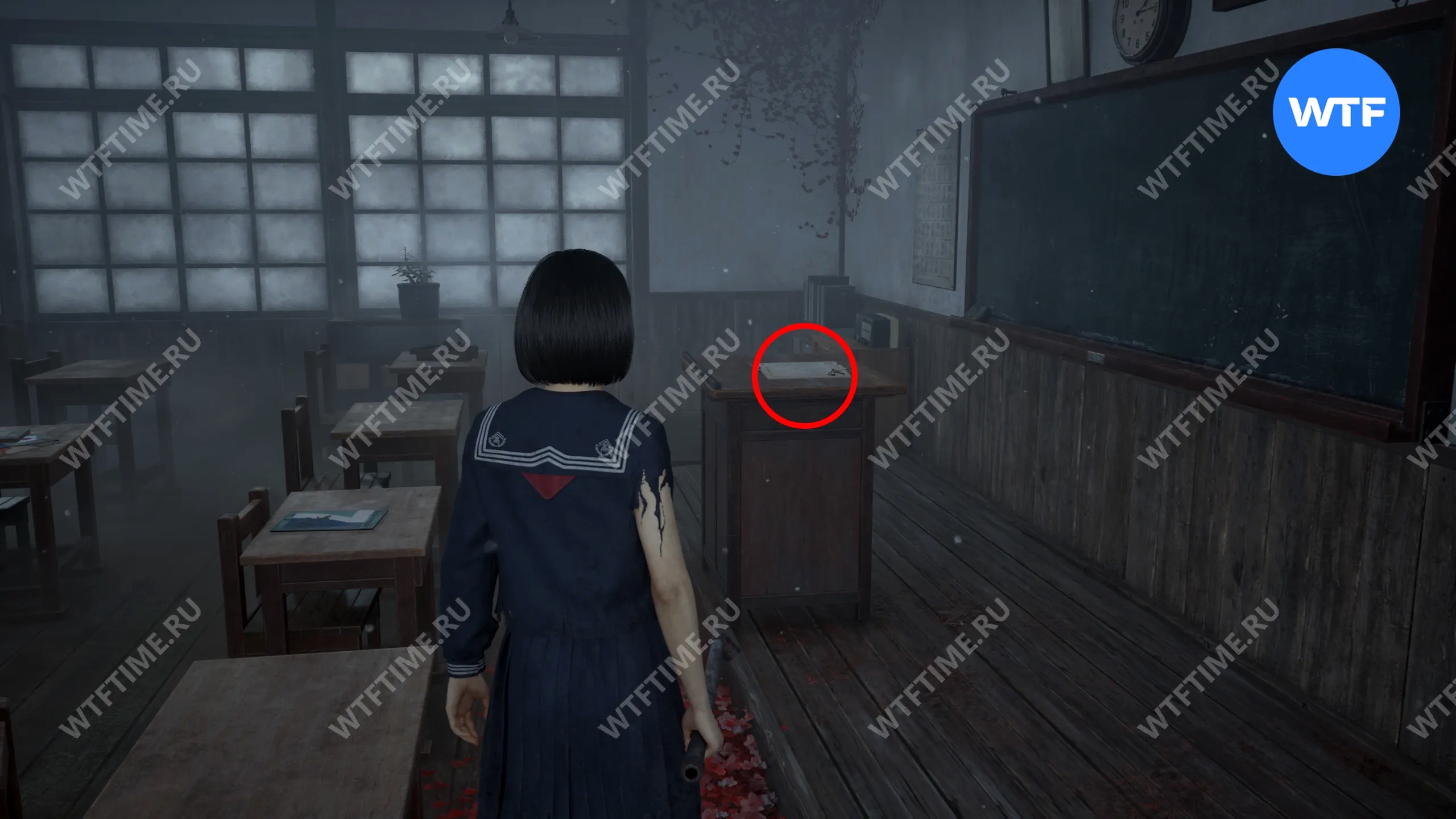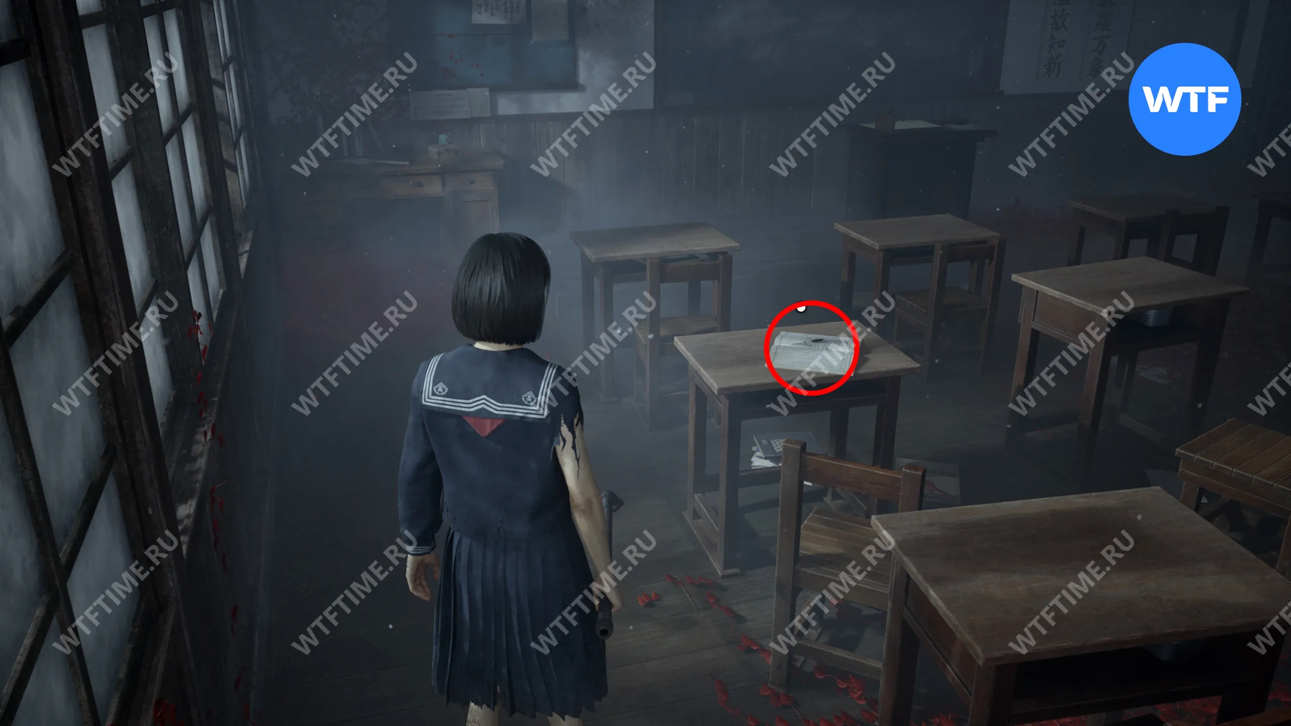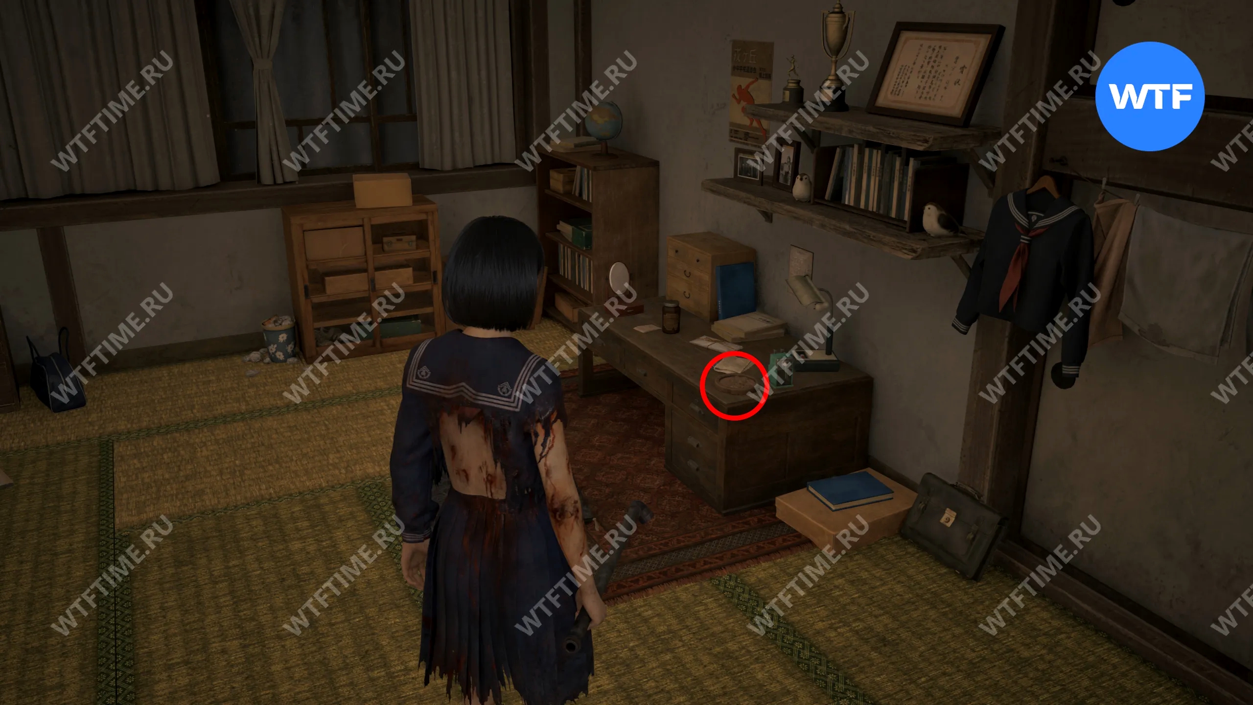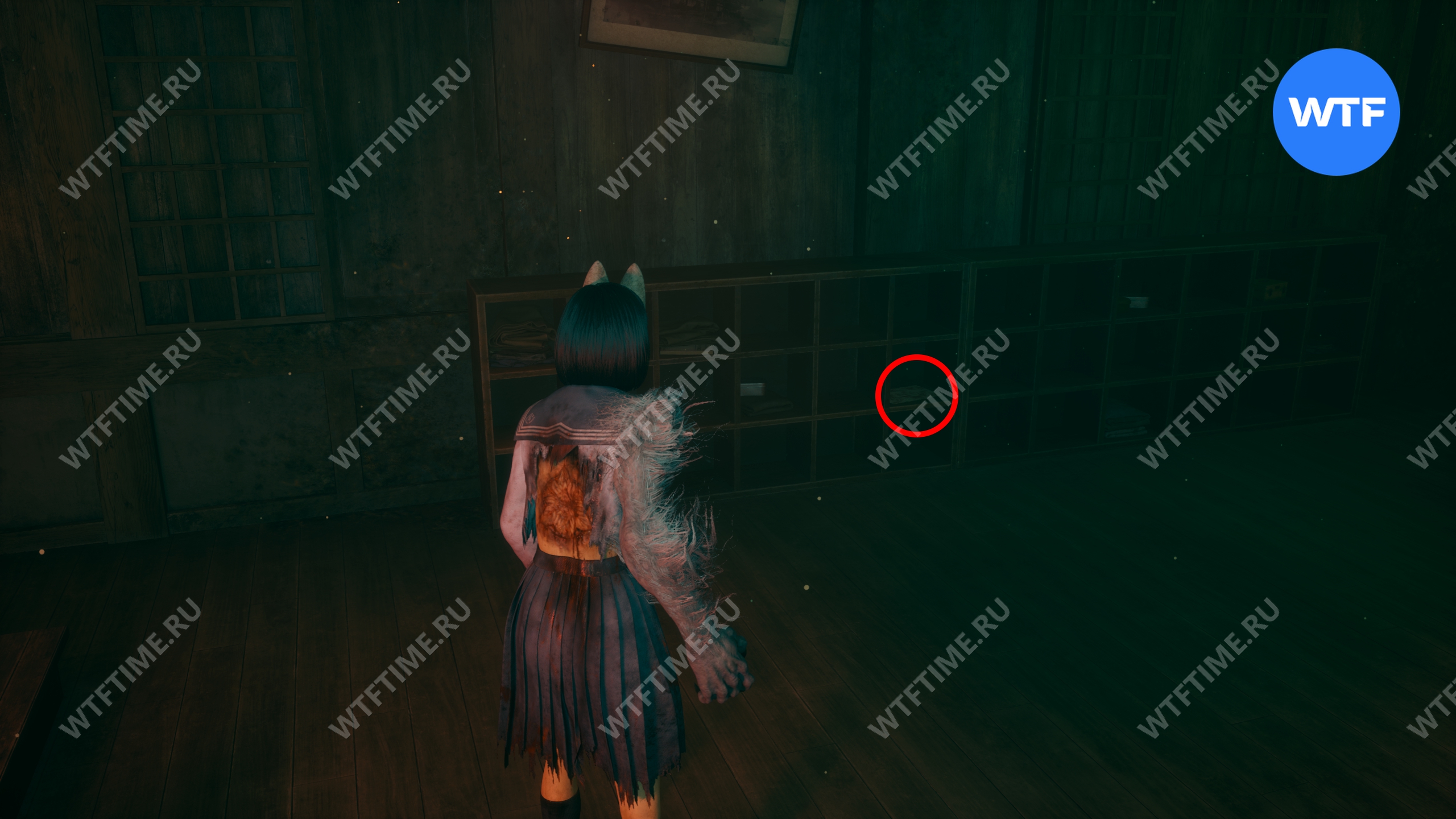В этом же классе, но уже ПОСЛЕ взаимодействия с лампой, на шкафу у восточной стены можно забрать еще один Дневник Ринко.