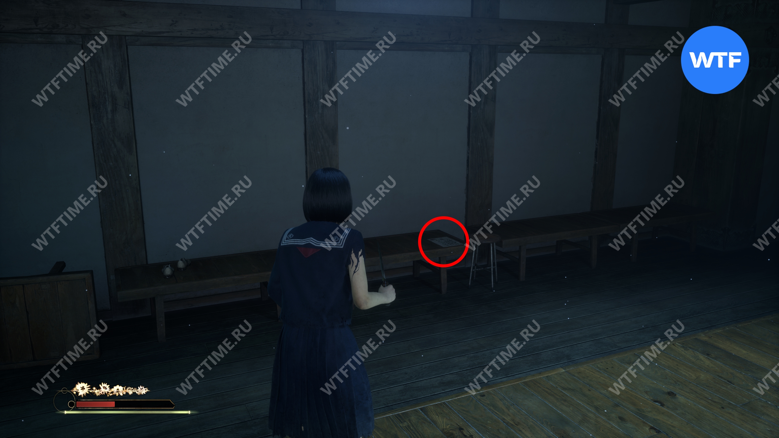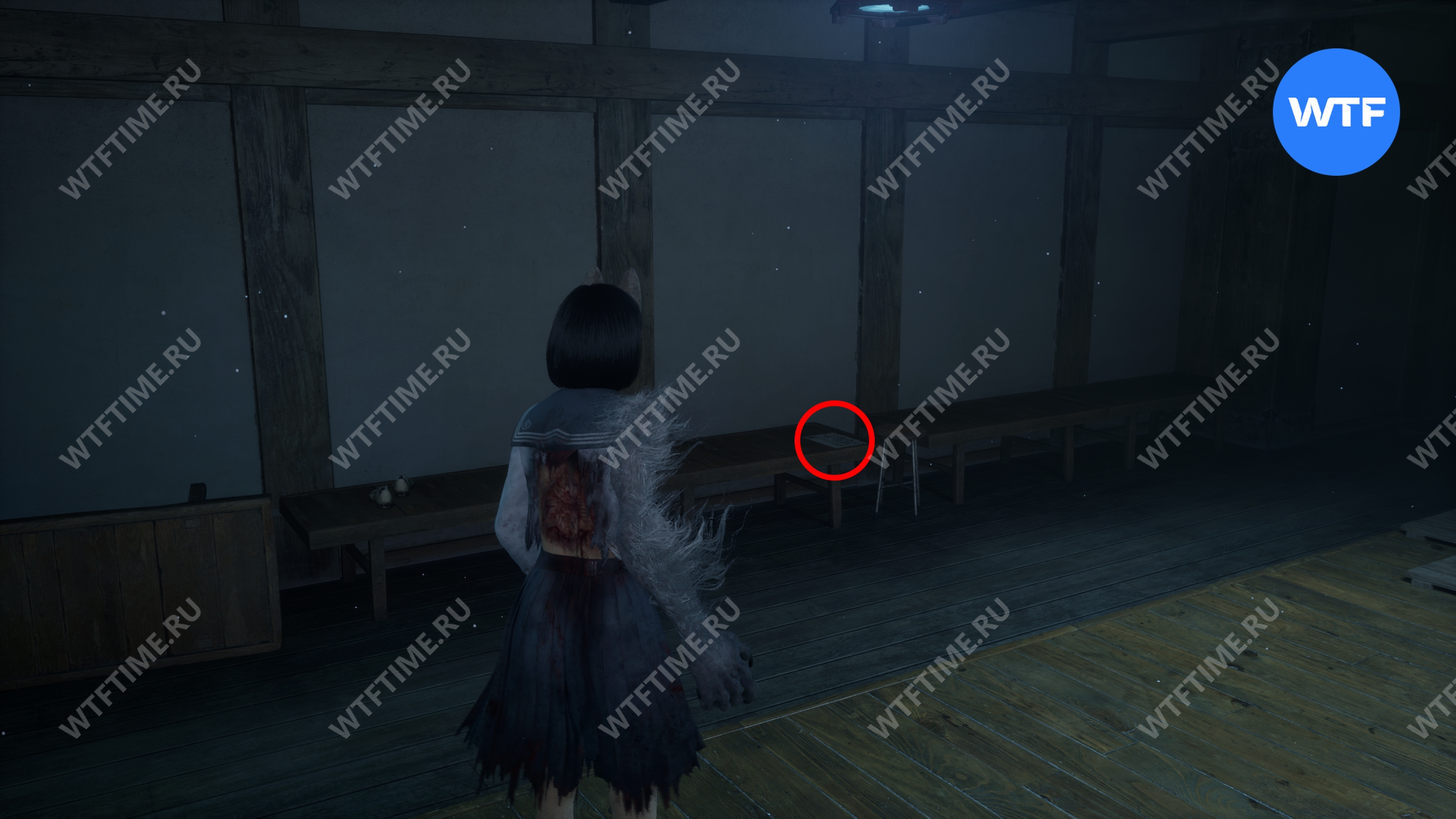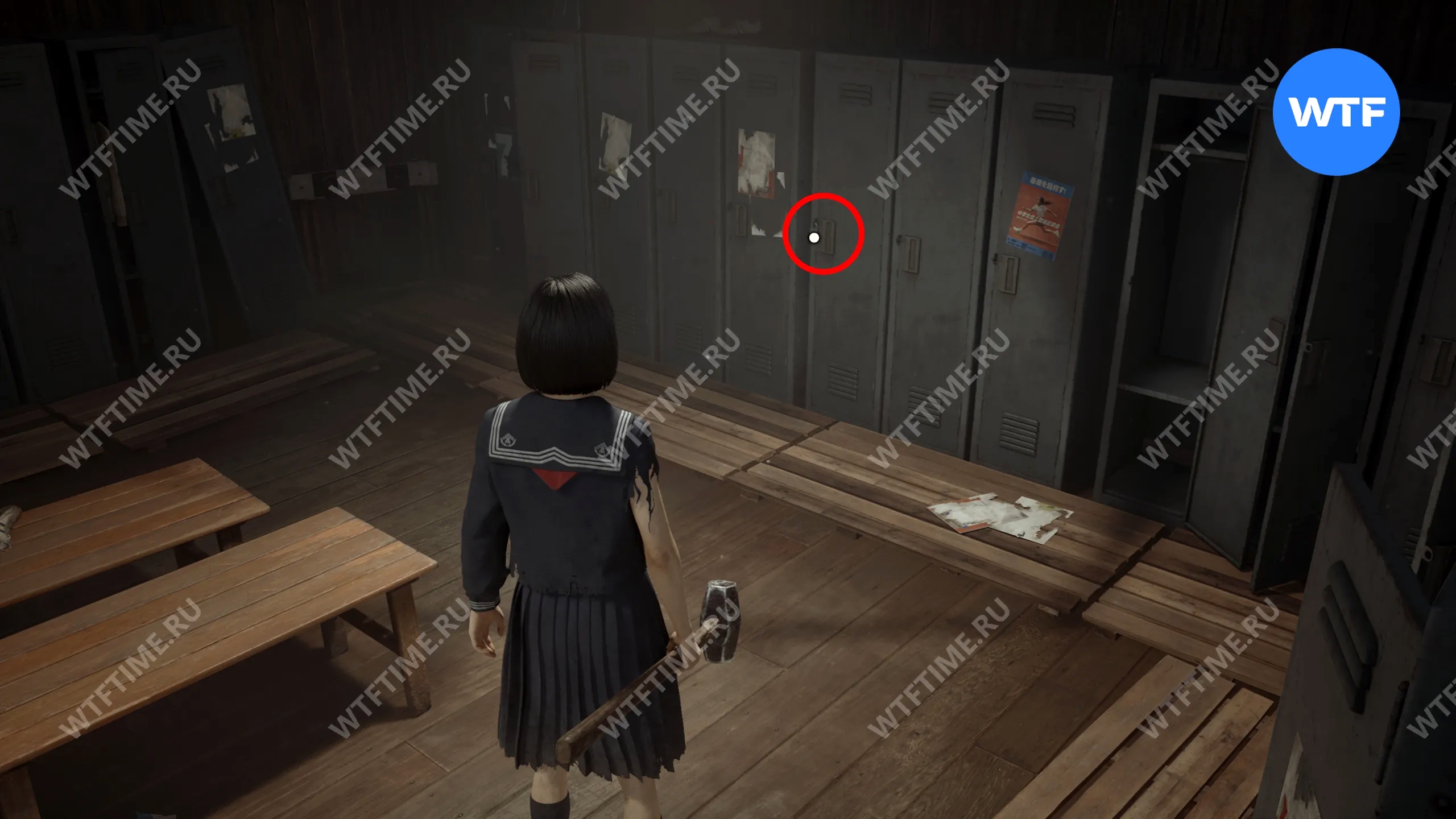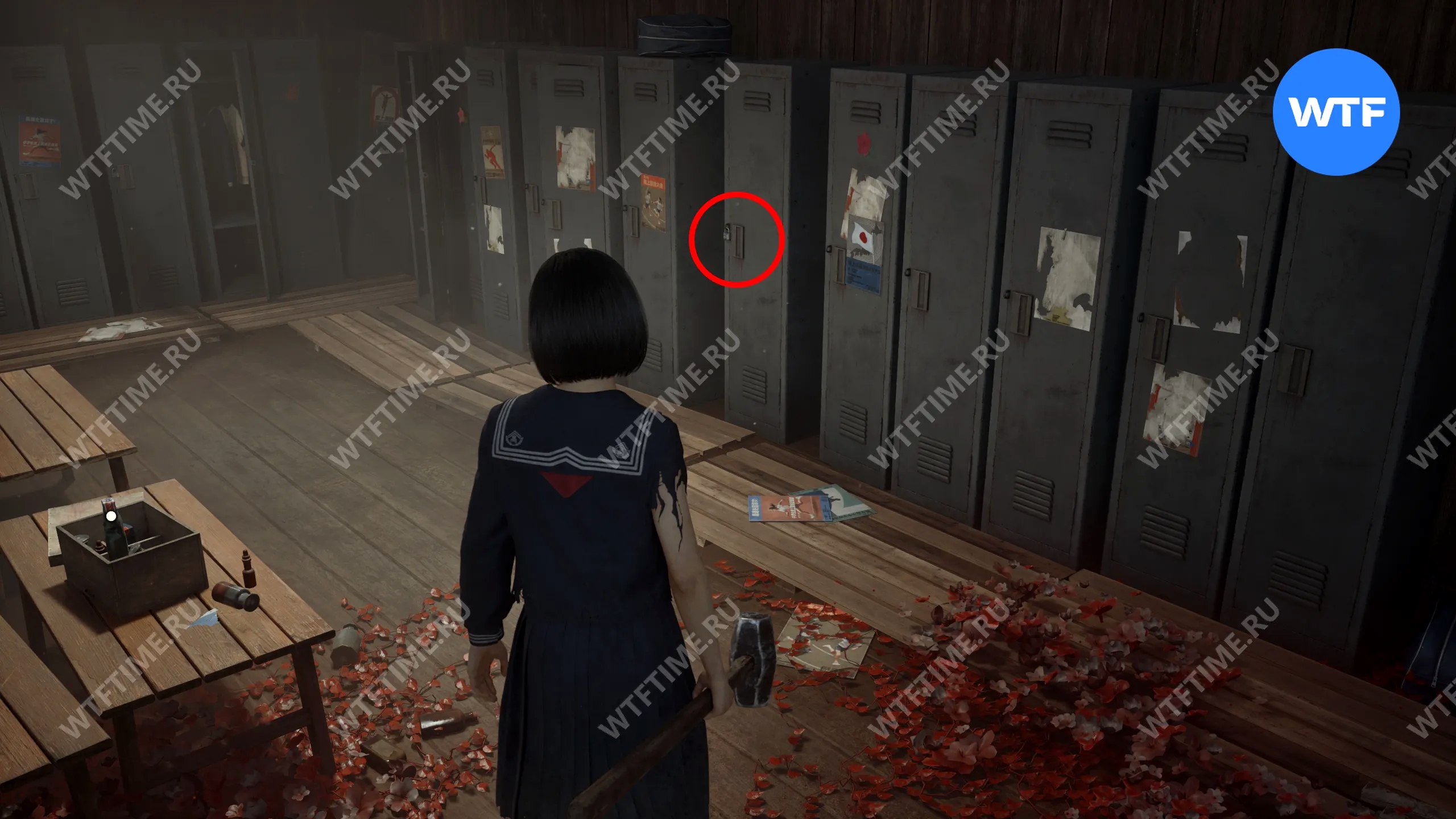 Еще один Дневник Сакуко можно найти на скамейке в раздевалке, где находится красно-зеленый переключатель.