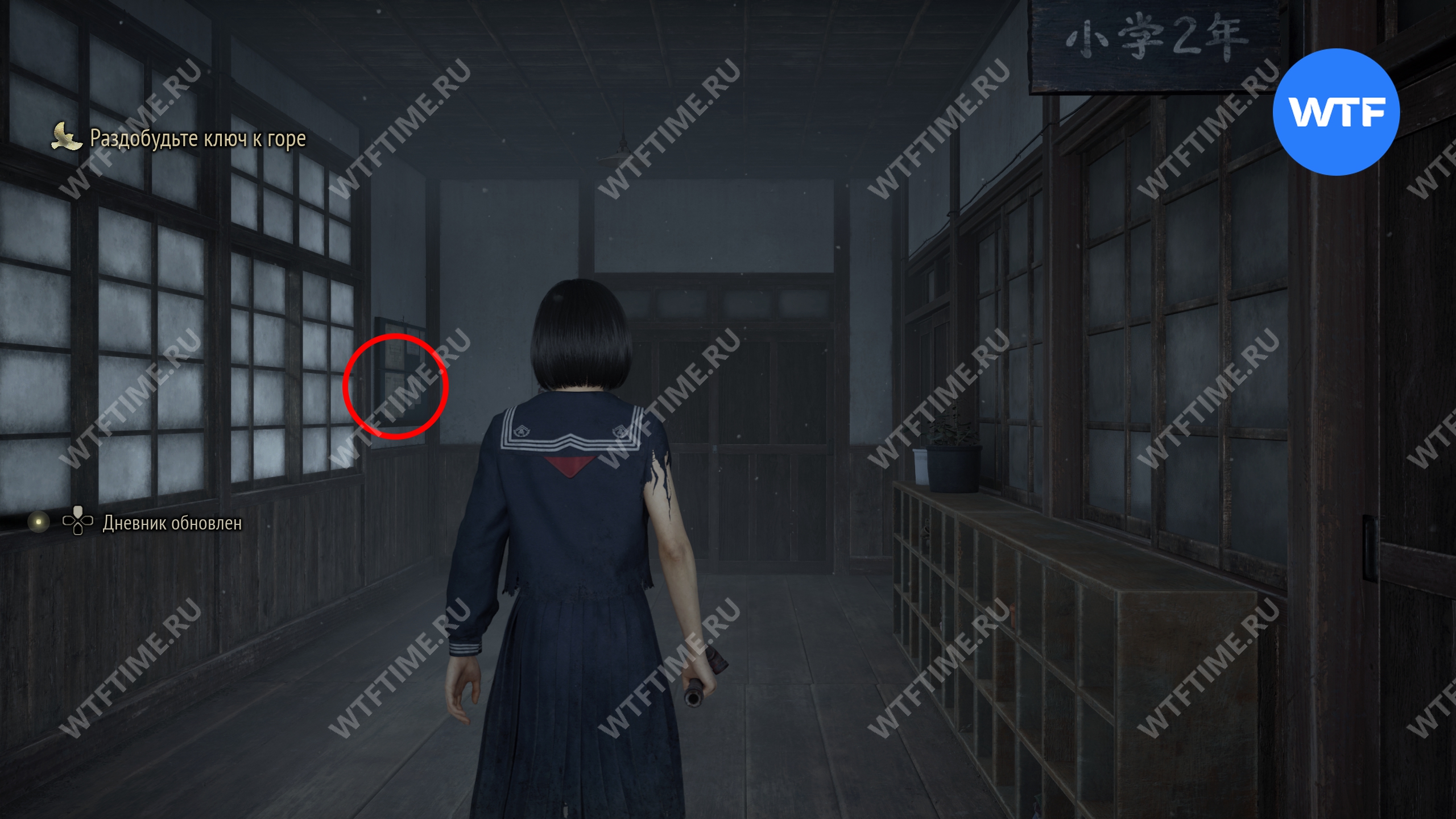 В углу комнаты с бело-синим переключателем и святилищем хокора в восточной части локации (точно там же, где и в Новой игре+) можно найти последний Дневник Сакуко. Это разблокирует достижение «Одержимость Мико».