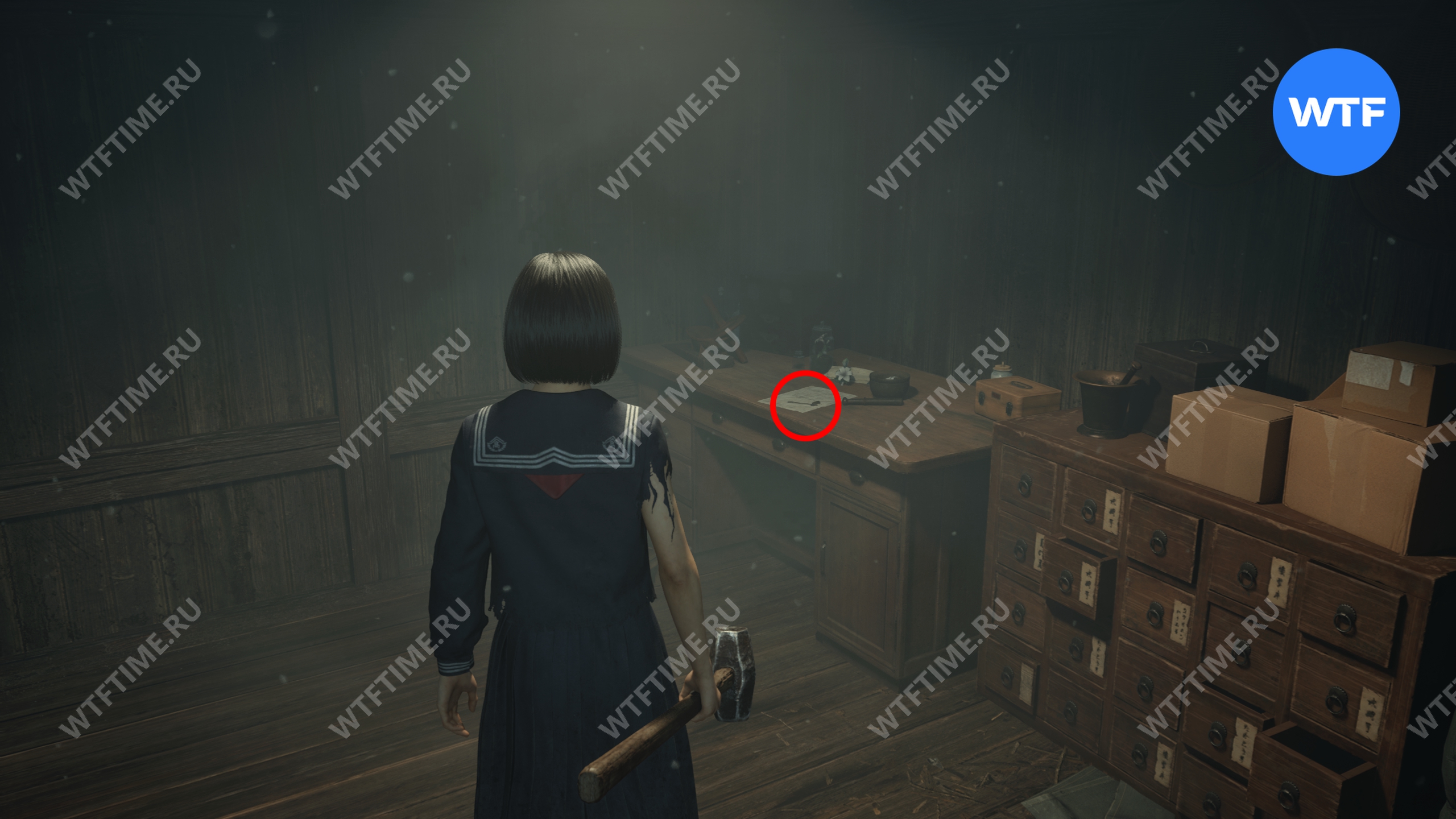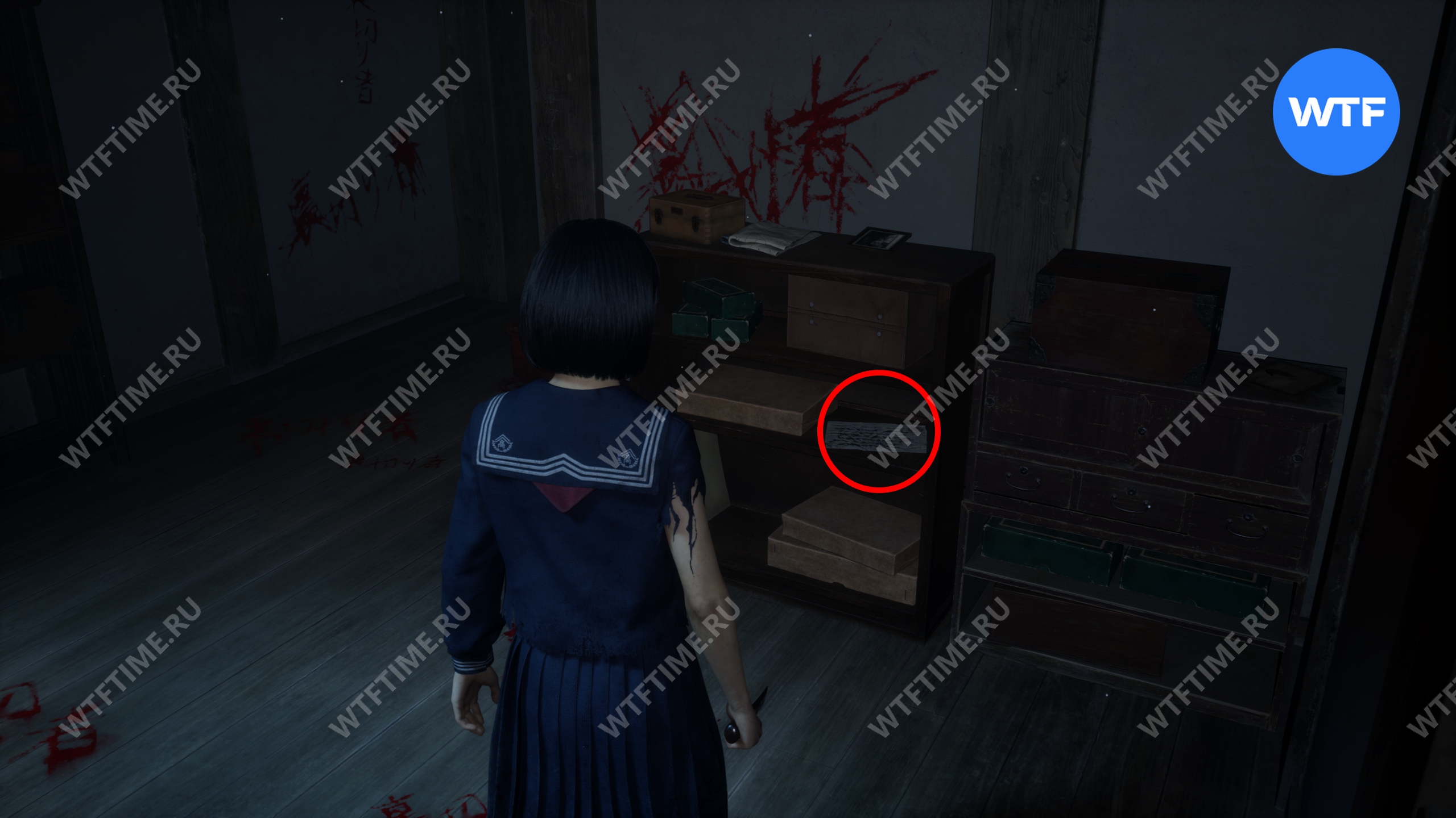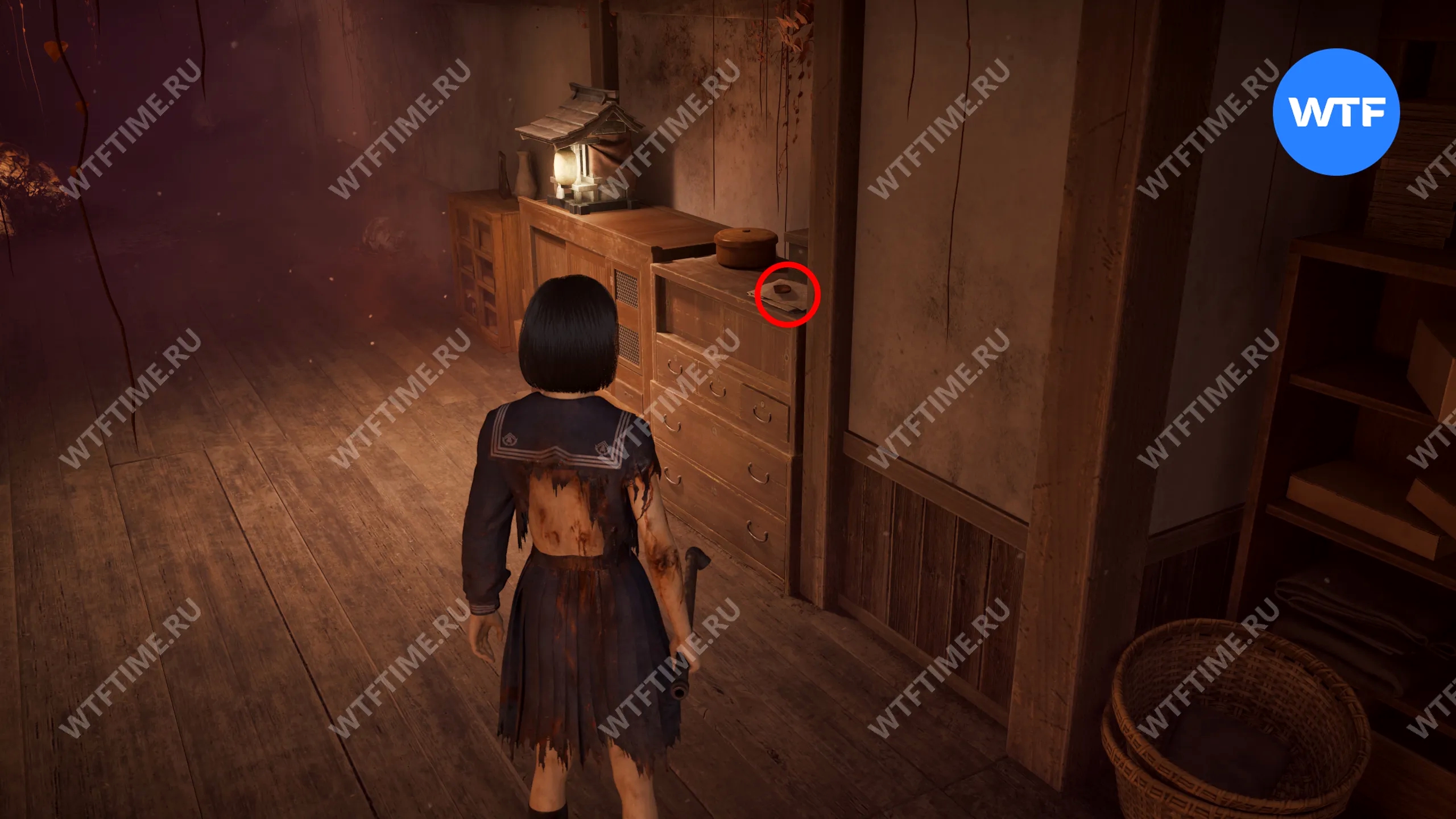Как только вы войдете в дом, идите в комнату между гостиной и комнатой с загадкой «Зловещего снимка». Там вы найдете коробку Инари-сама, внутри которой лежит Дневник мести и дощечка эма.
