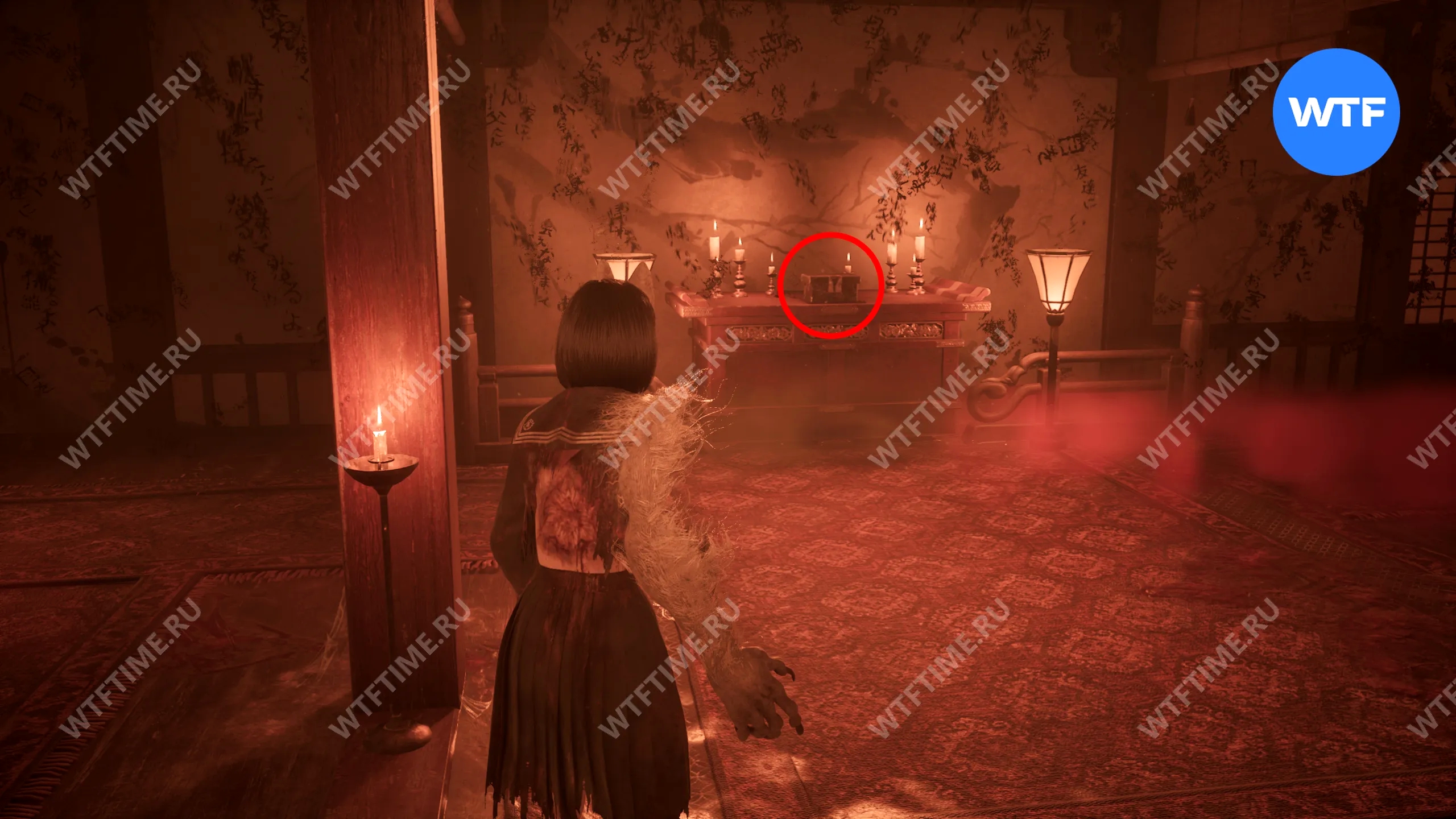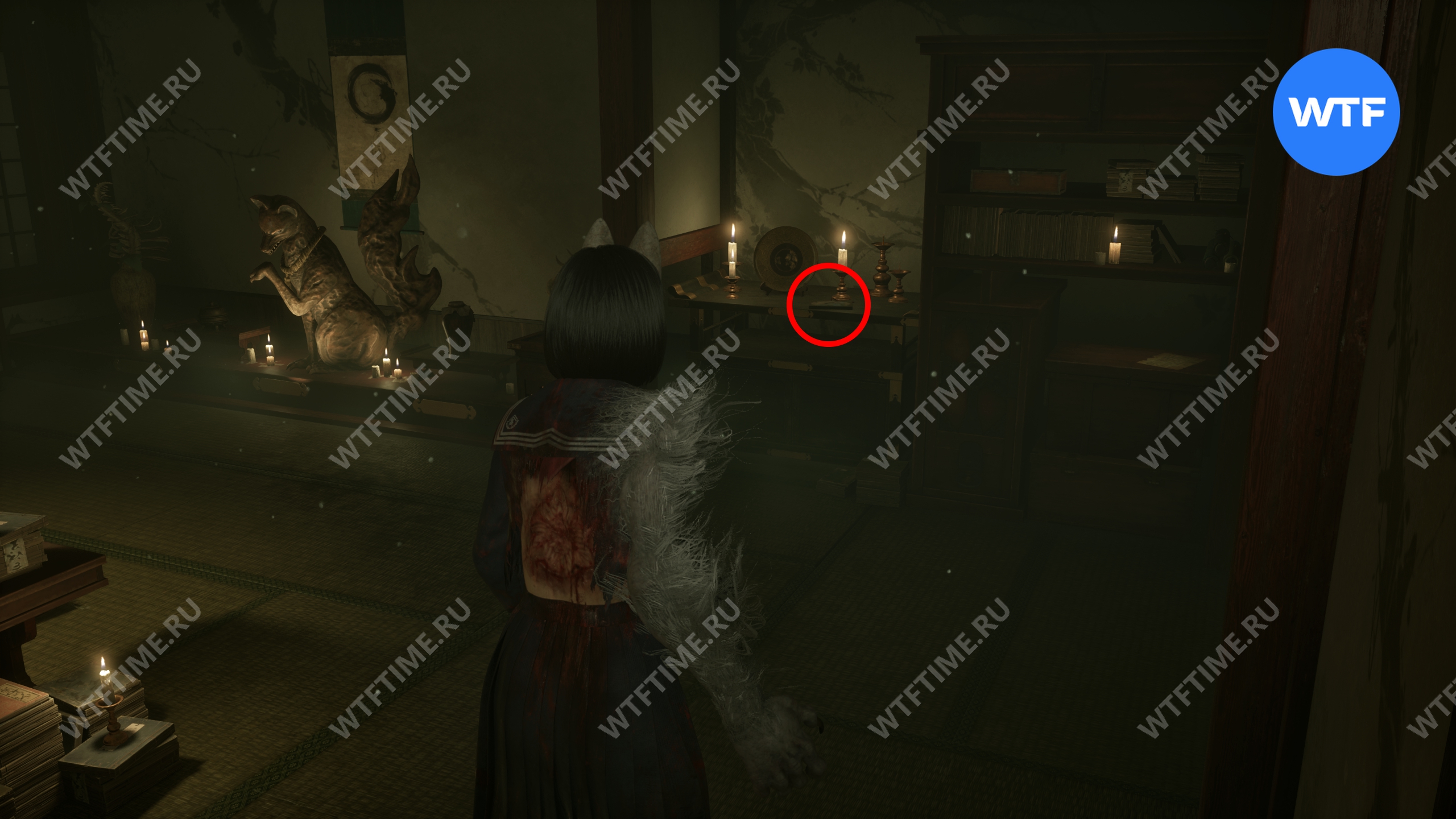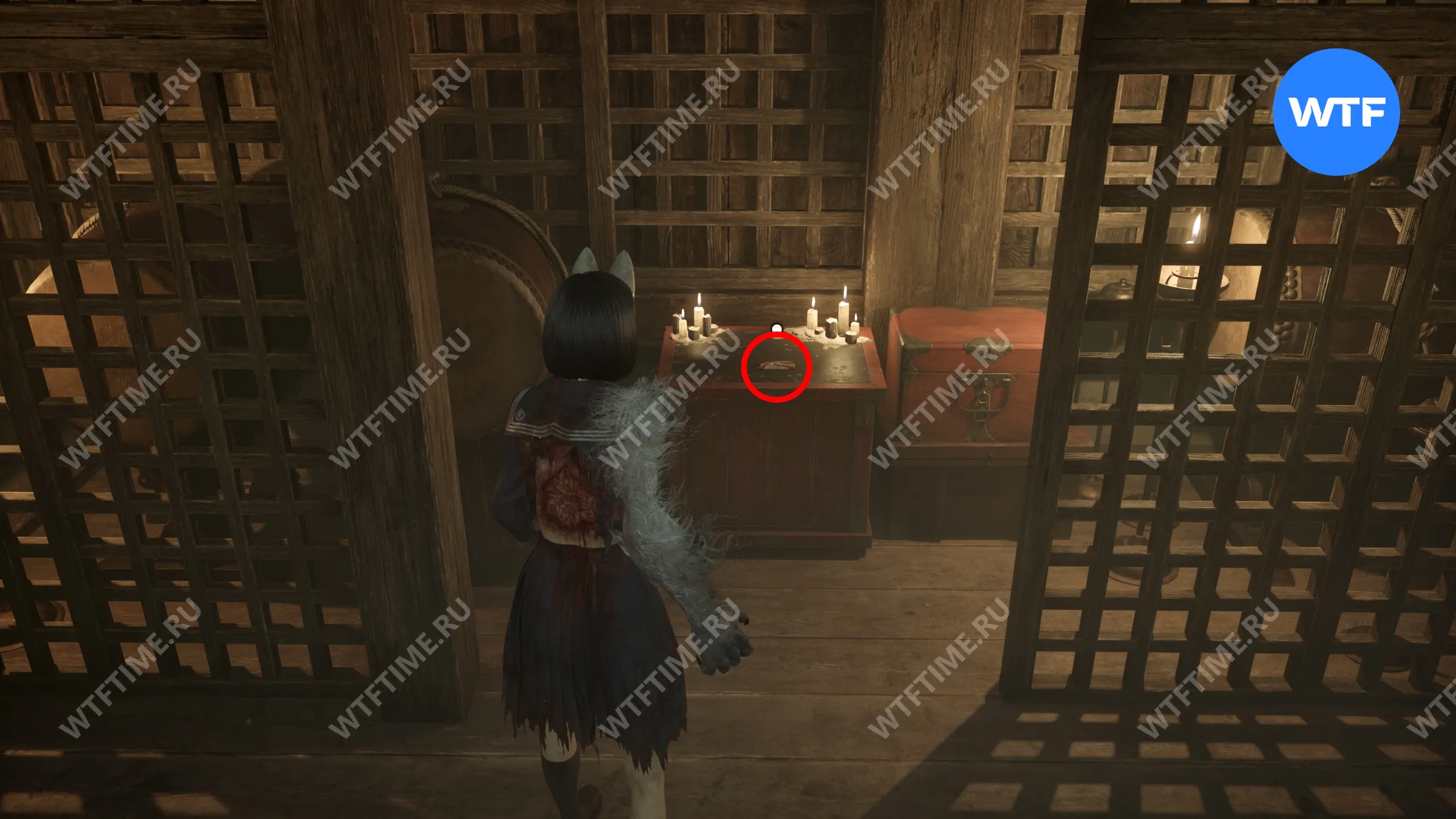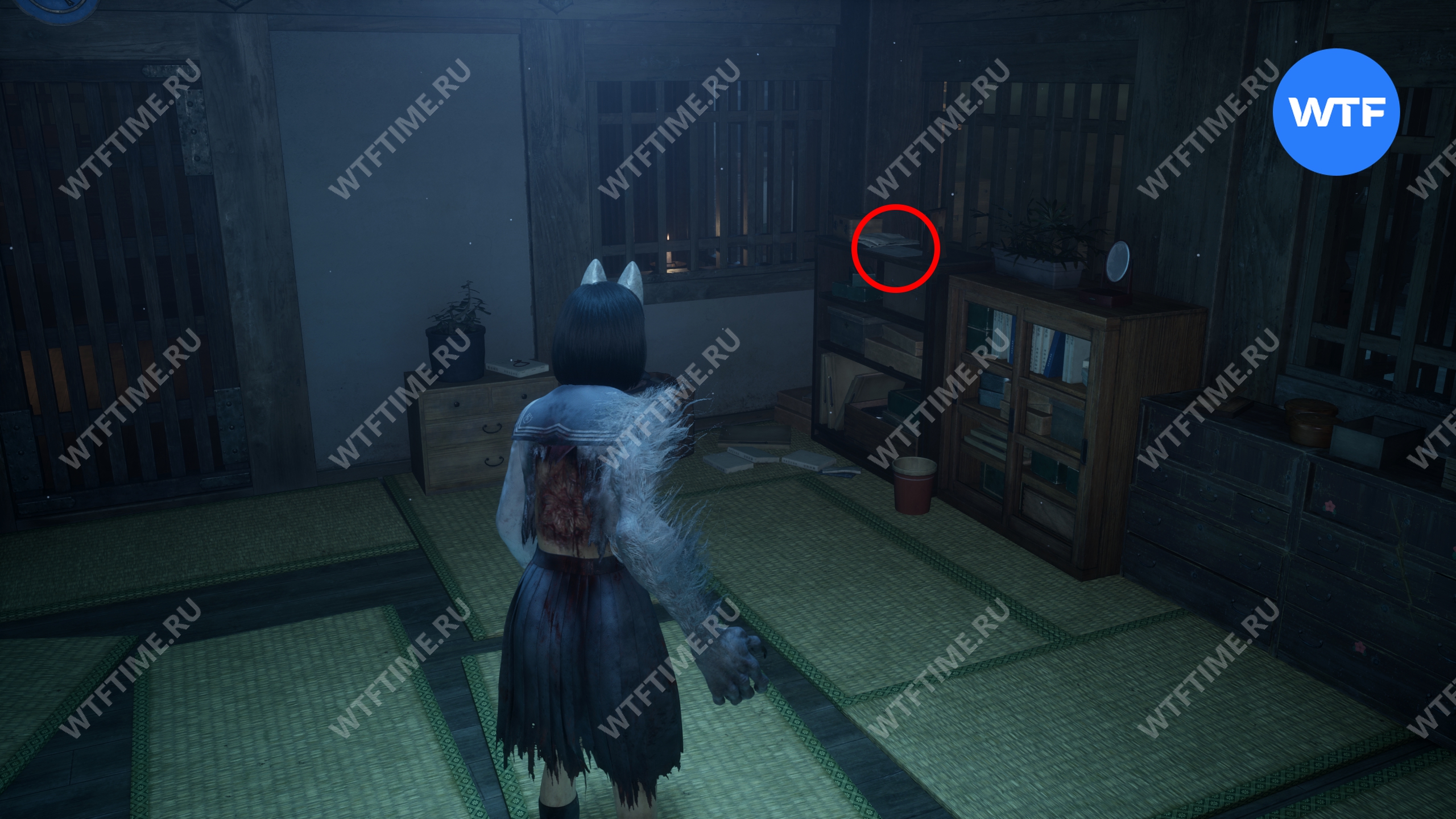 Как только вы войдете в дом, идите в комнату между гостиной и комнатой с загадкой «Зловещего снимка». Там вы найдете коробку Инари-сама, внутри которой лежит Дневник мести и дощечка эма.