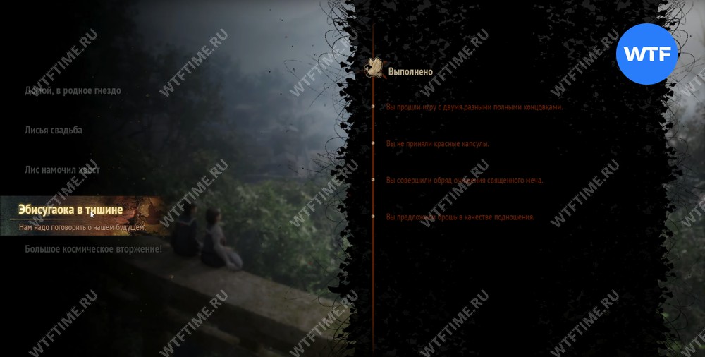 После победы над Ситиби вы разблокируете вторую концовку, а также достижение «Лис намочил хвост». Сделайте чистое сохранение, содержащее две полные концовки, чтобы позже запустить с него Новую игру++.