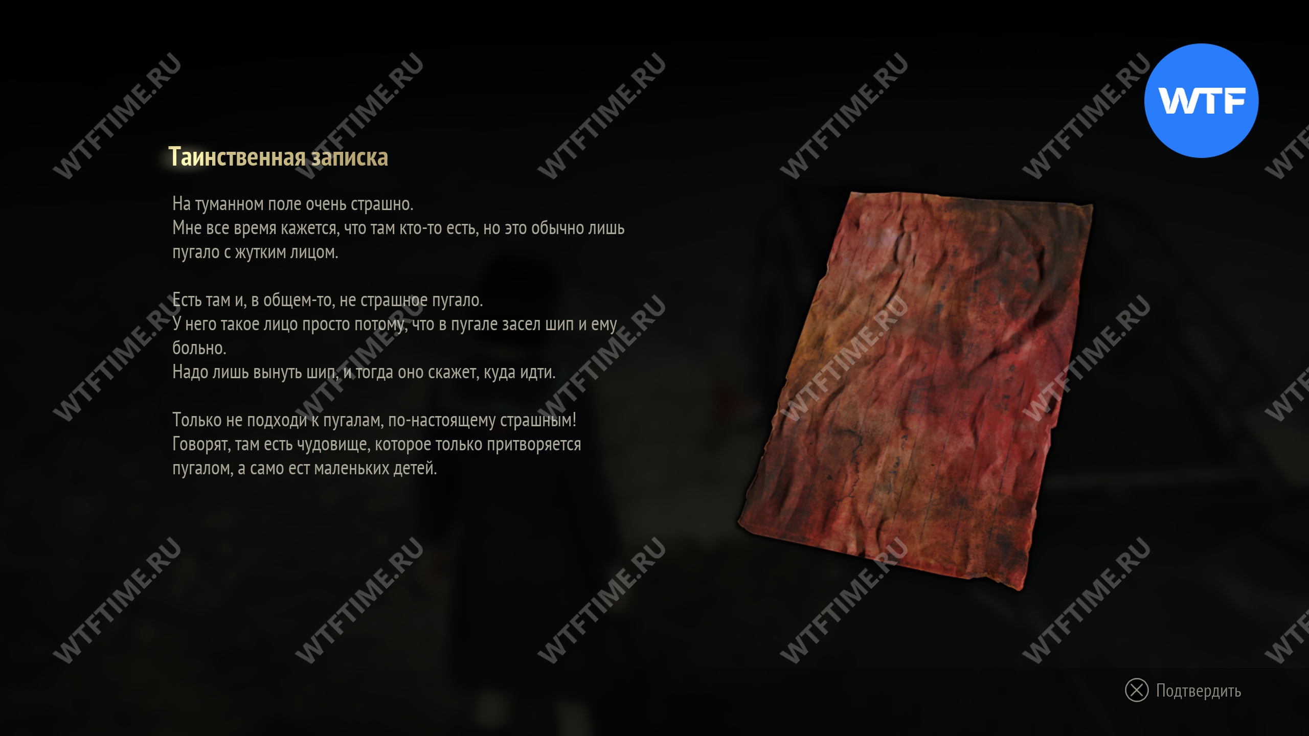 Войдя на поле, справа у телеги вы увидите уже знакомую куклу с таинственной запиской, которая подскажет вам что делать. Ваша задача здесь — расшифровать подсказку, чтобы вытащить шип из верного пугала.