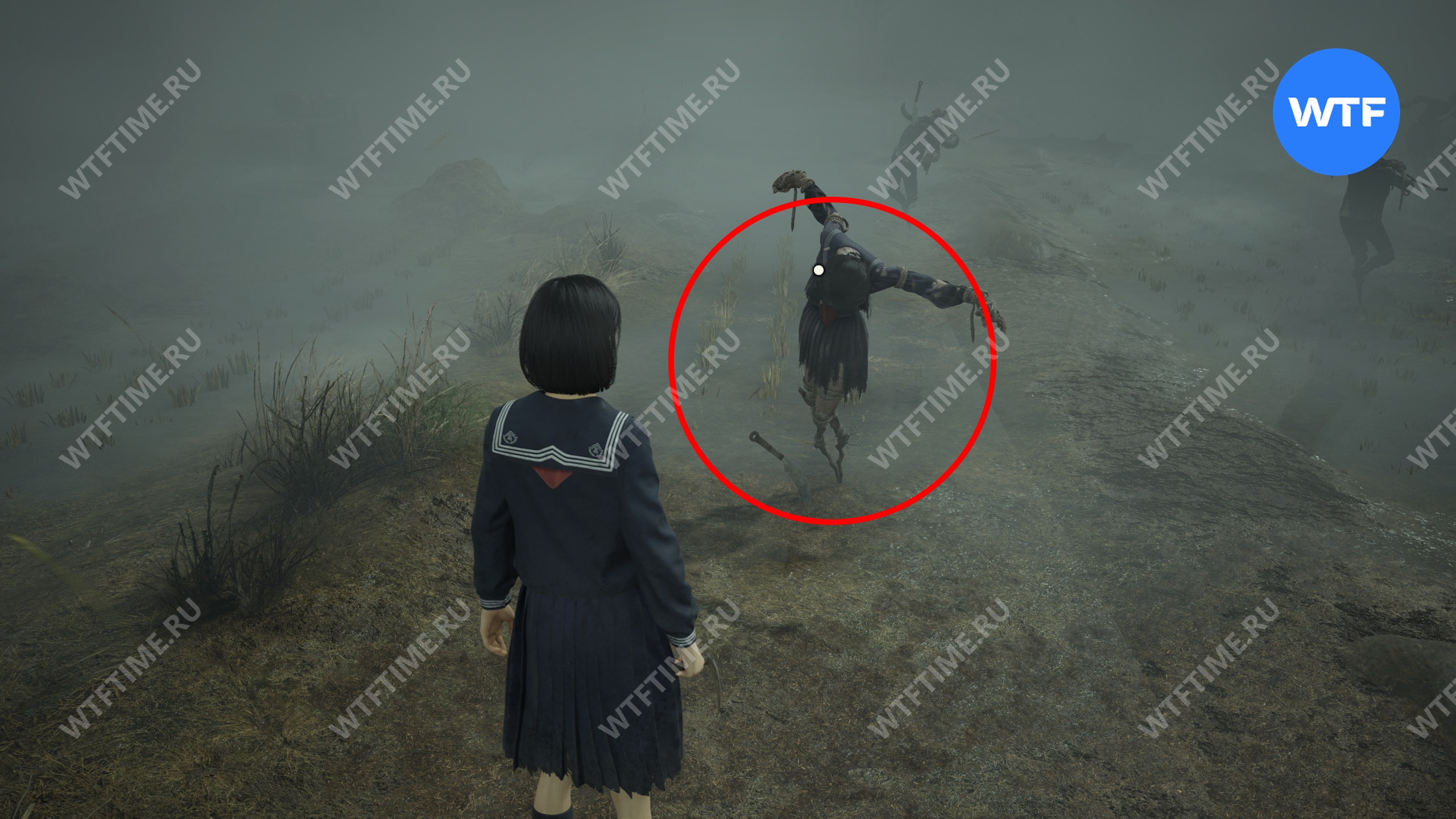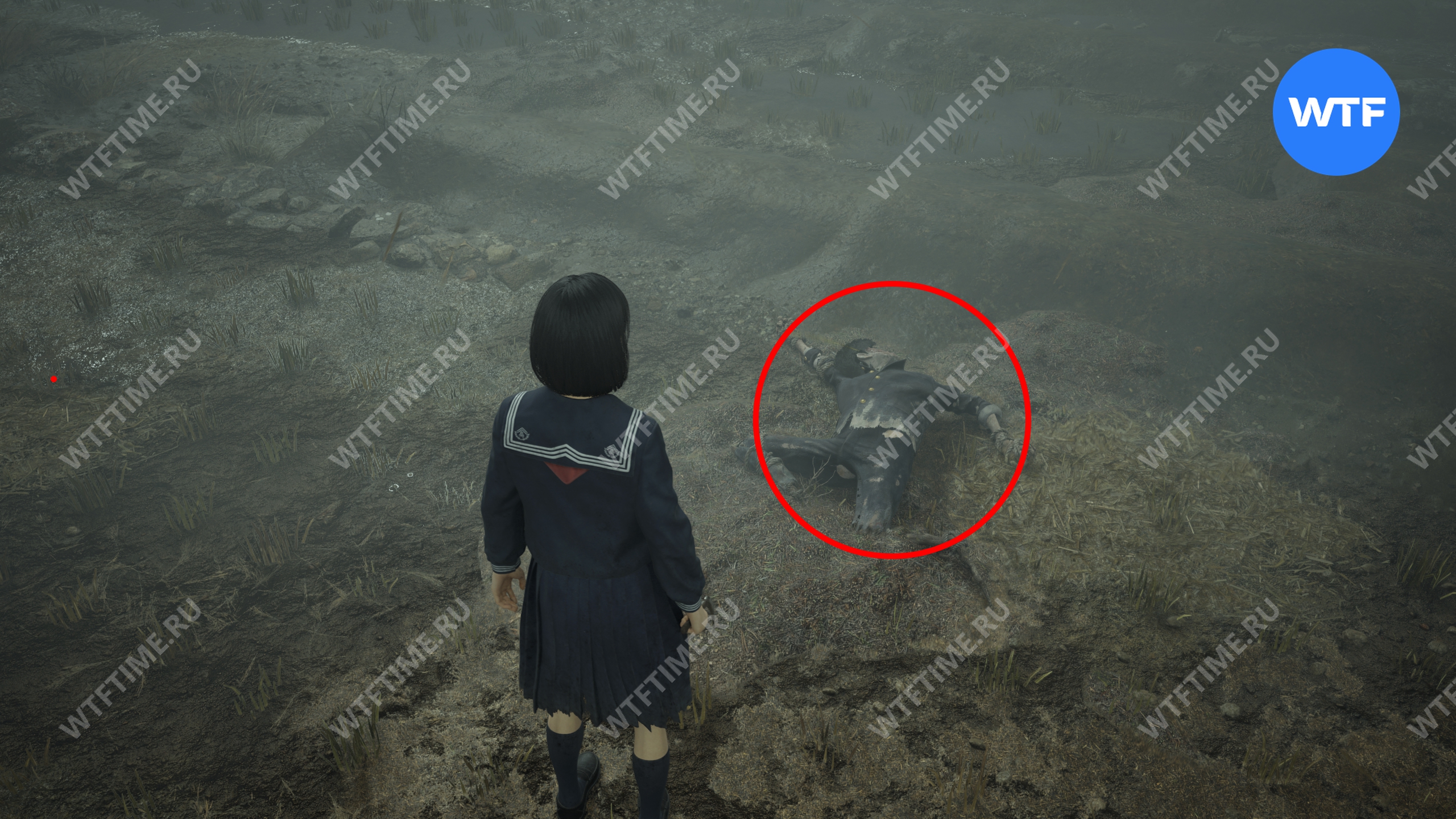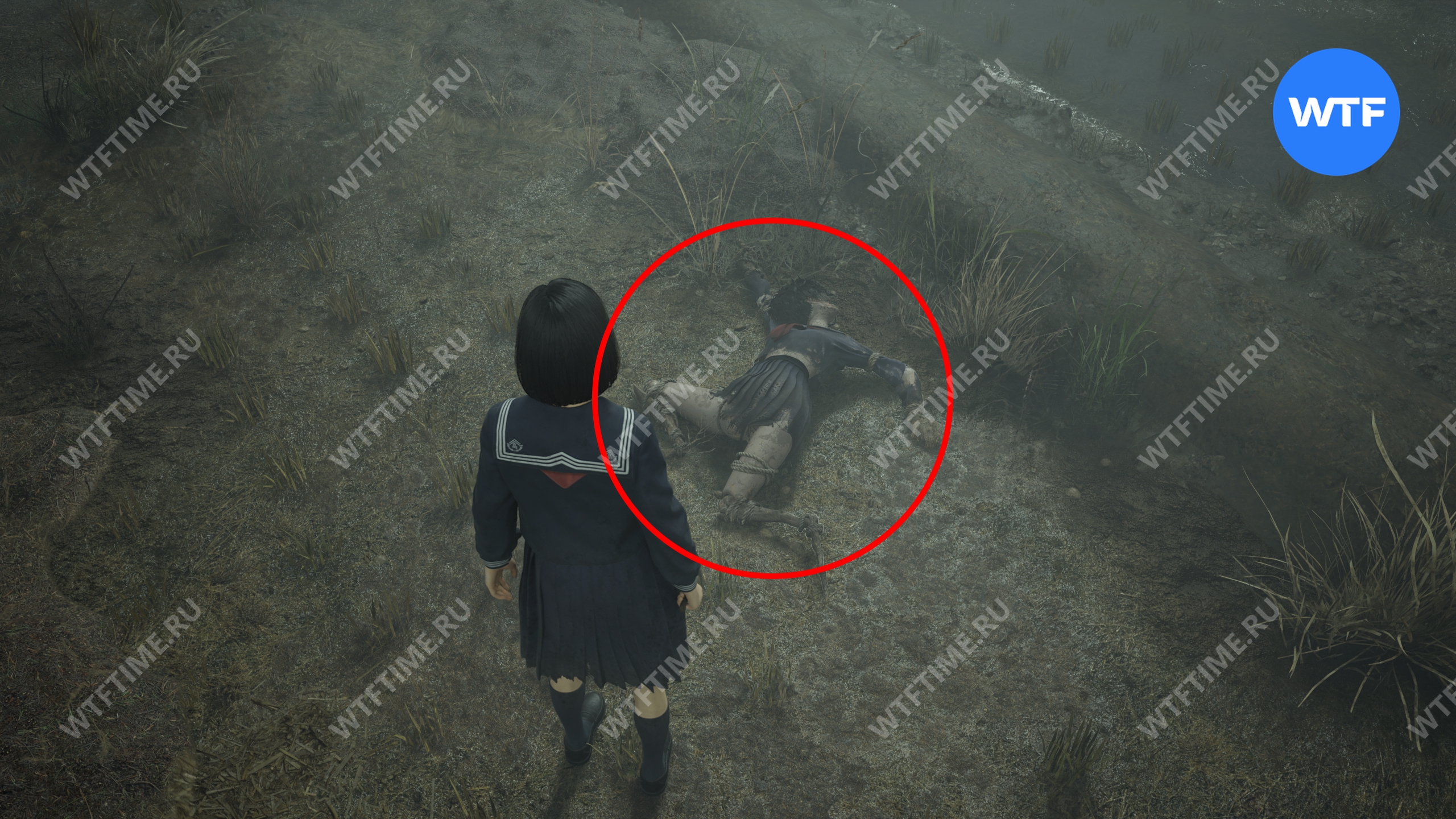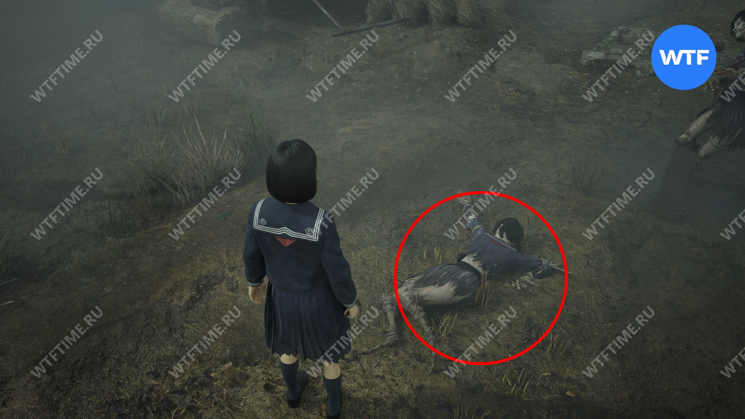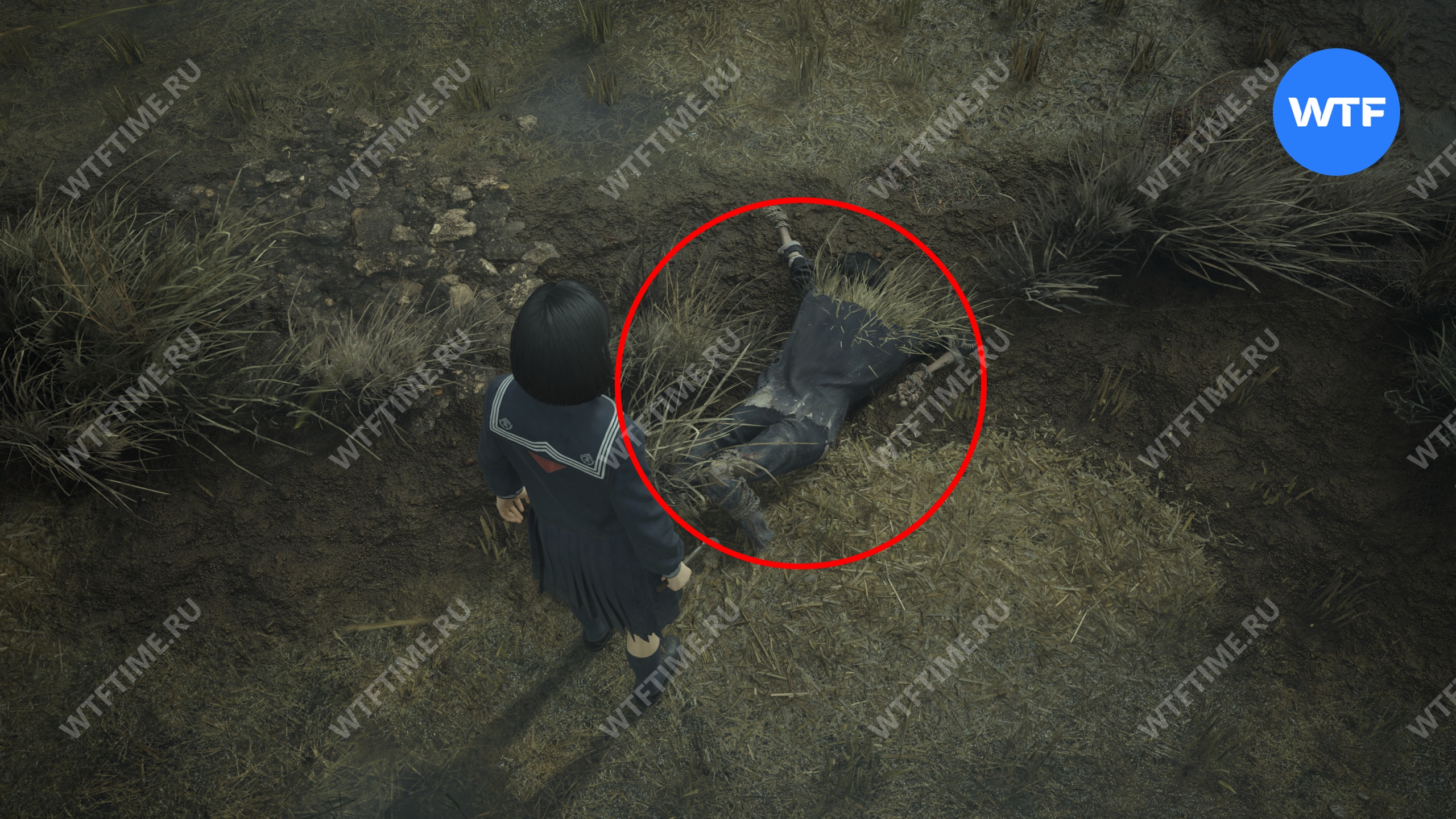 Всего таких трупов четыре. Последний укажет в направлении девушки, стоящей в отдалении от всех остальных и внешне похожей на Хинако. Шип нужно вытаскивать из неё.