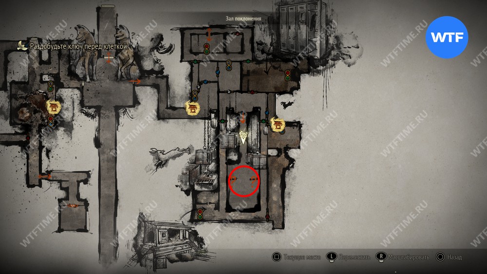 Полностью исследовав восточную часть Зала поклонения, вы в итоге доберетесь до комнаты с клетками для кроликов, где горит множество свечей. Чтобы раздобыть ключ перед клеткой, придется решить небольшую головоломку.