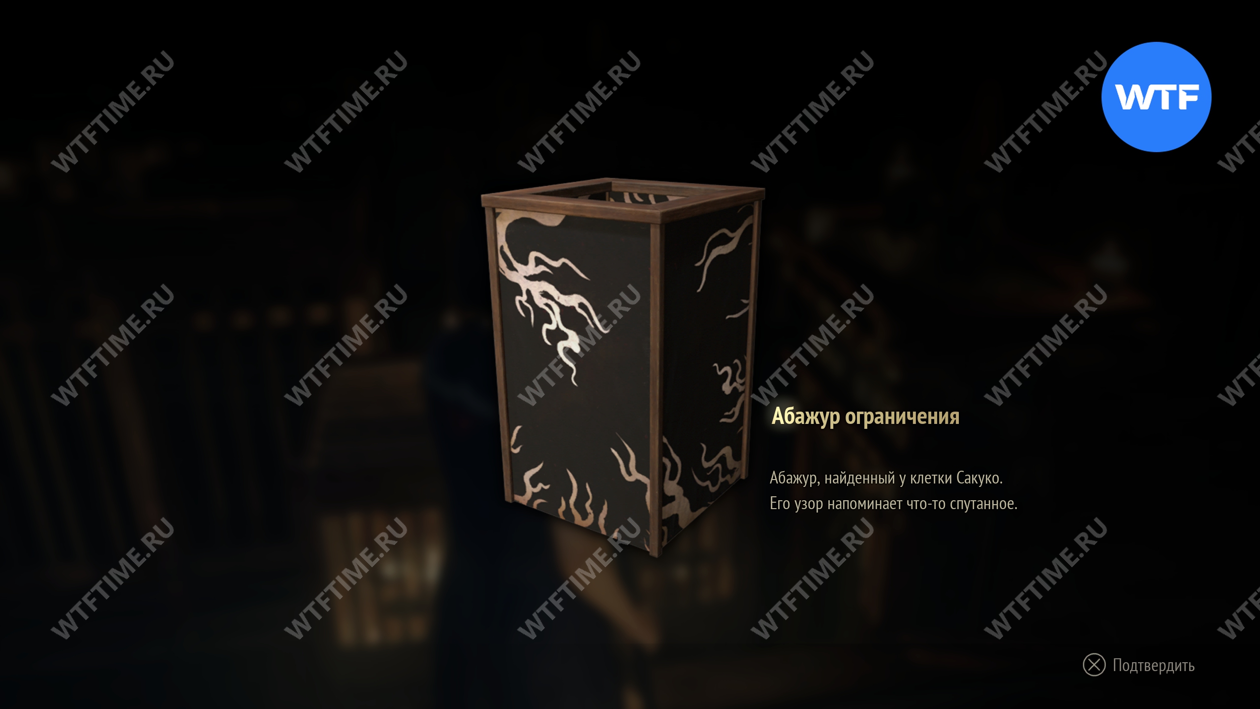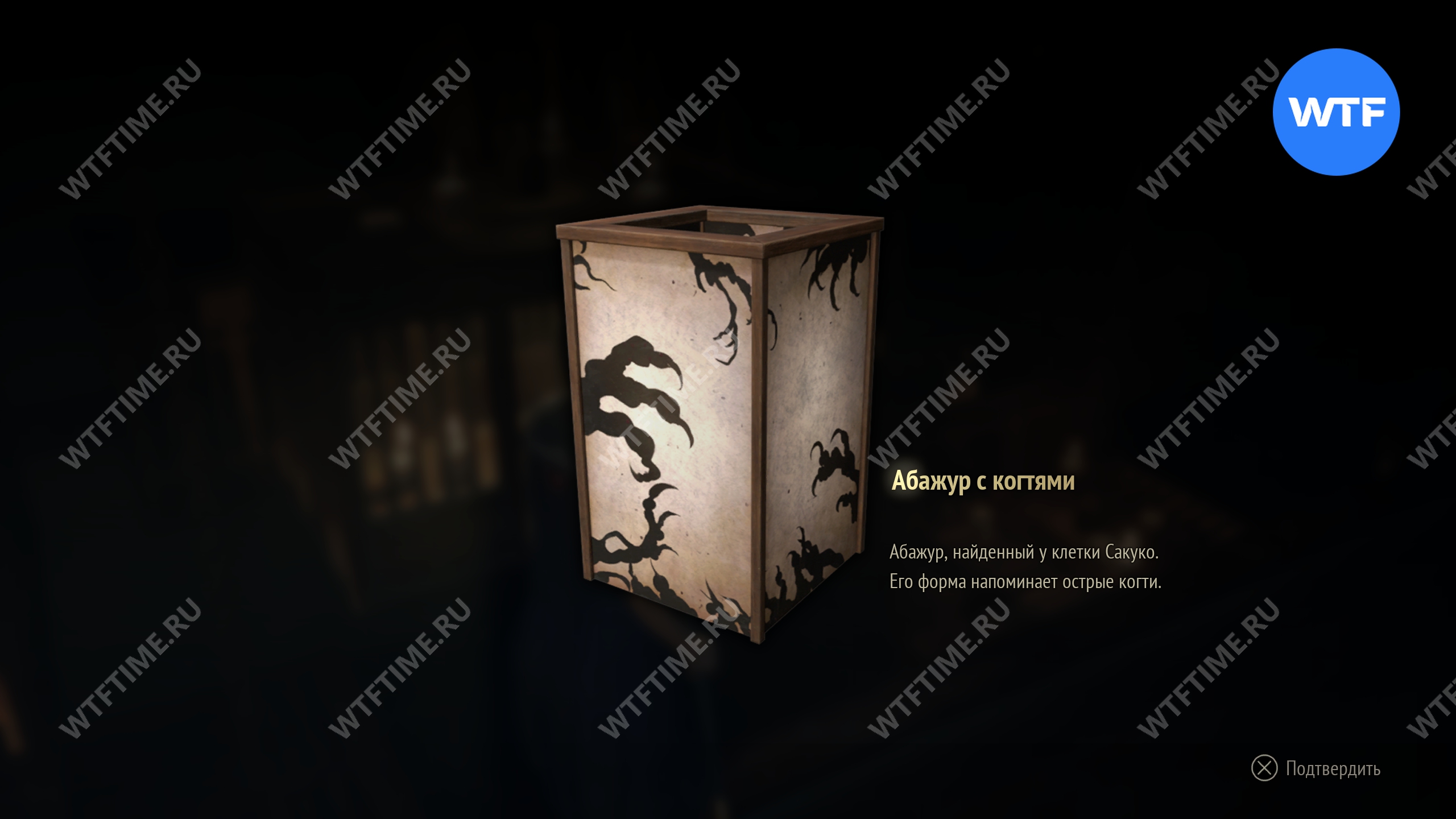 Эти абажуры нужно использовать на двух фонарях, горящих на столиках справа и слева от ключа. После этого замок откроется и вы получите ключ с эмблемой белого кролика.