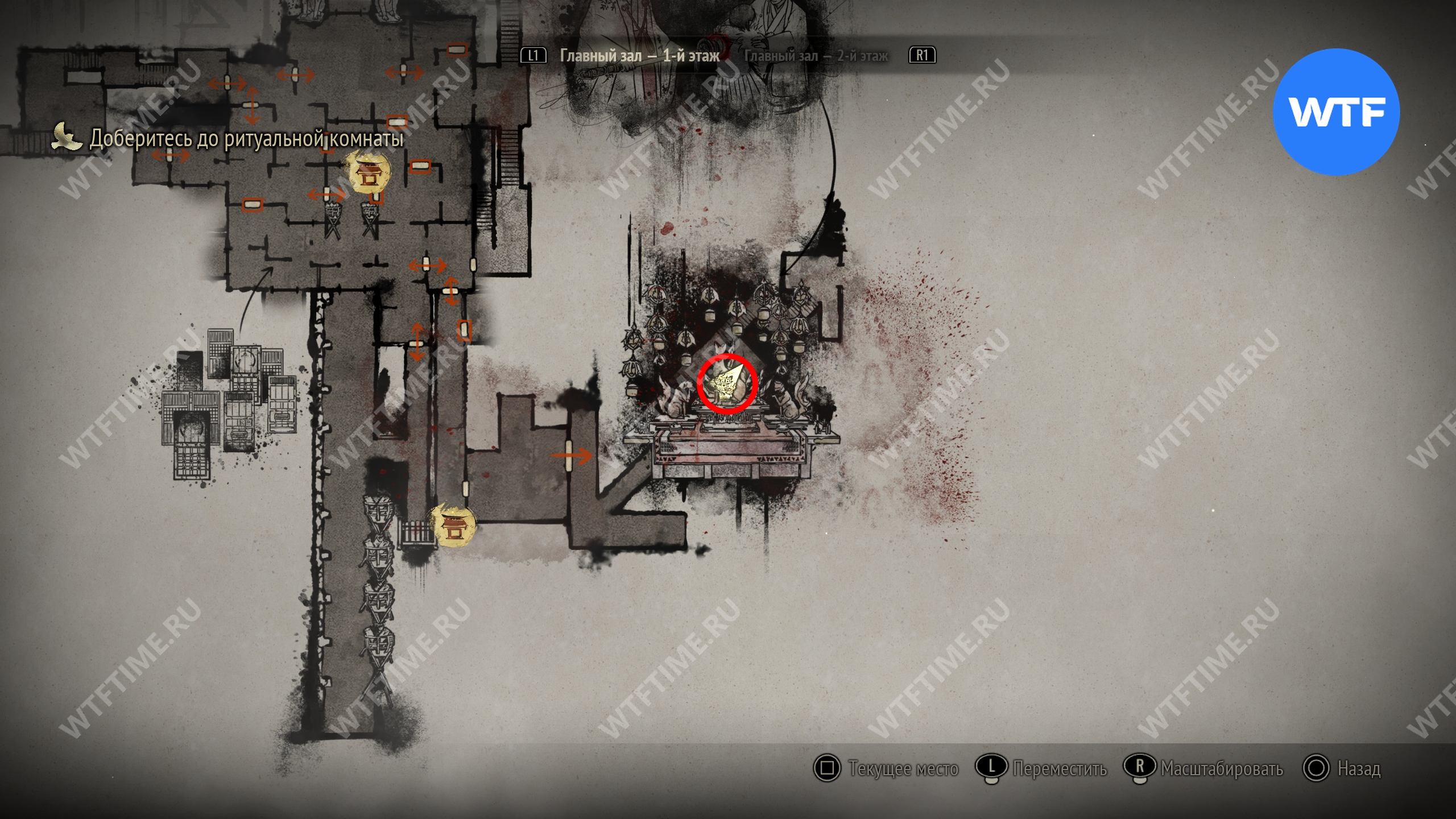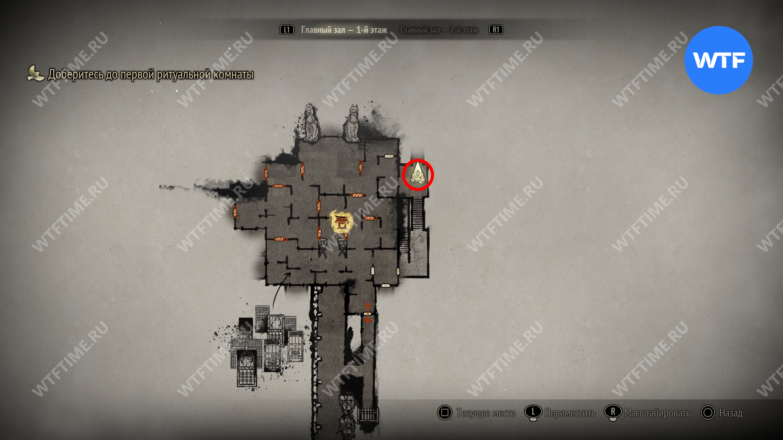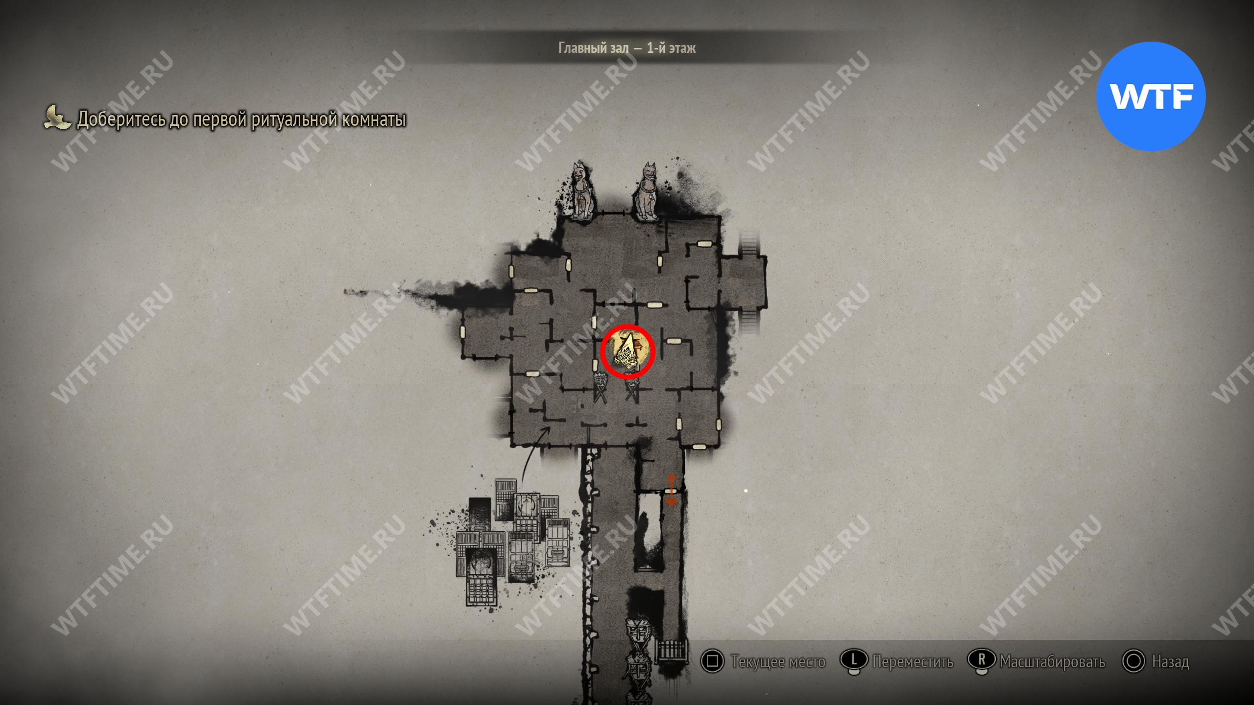 Теперь пришло время отправиться в последнюю ритуальную комнату. Чтобы её найти, вернитесь обратно на первый этаж и снова идите к восточной стене с горящими синими факелами.