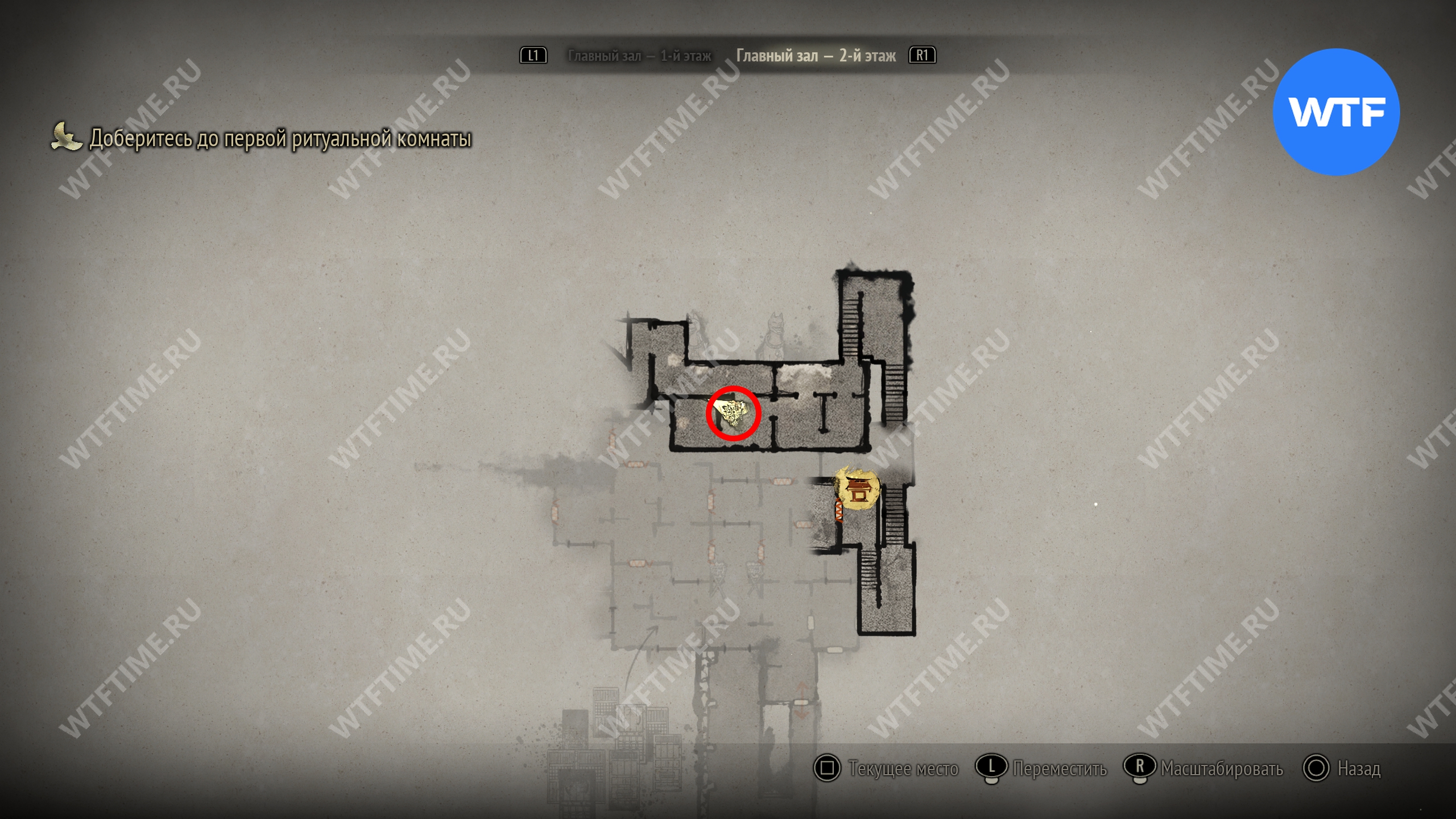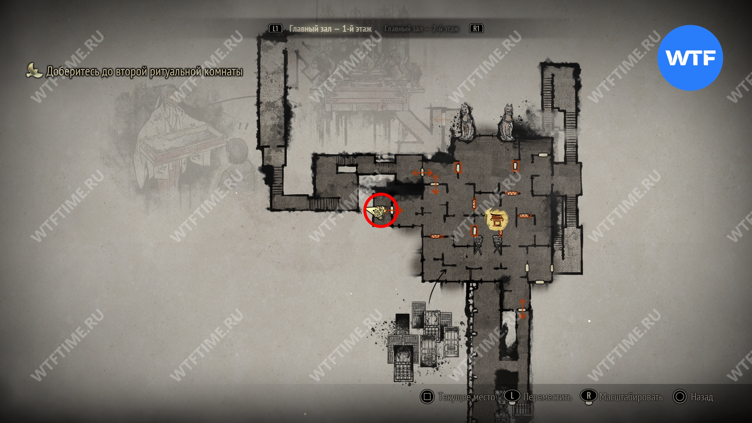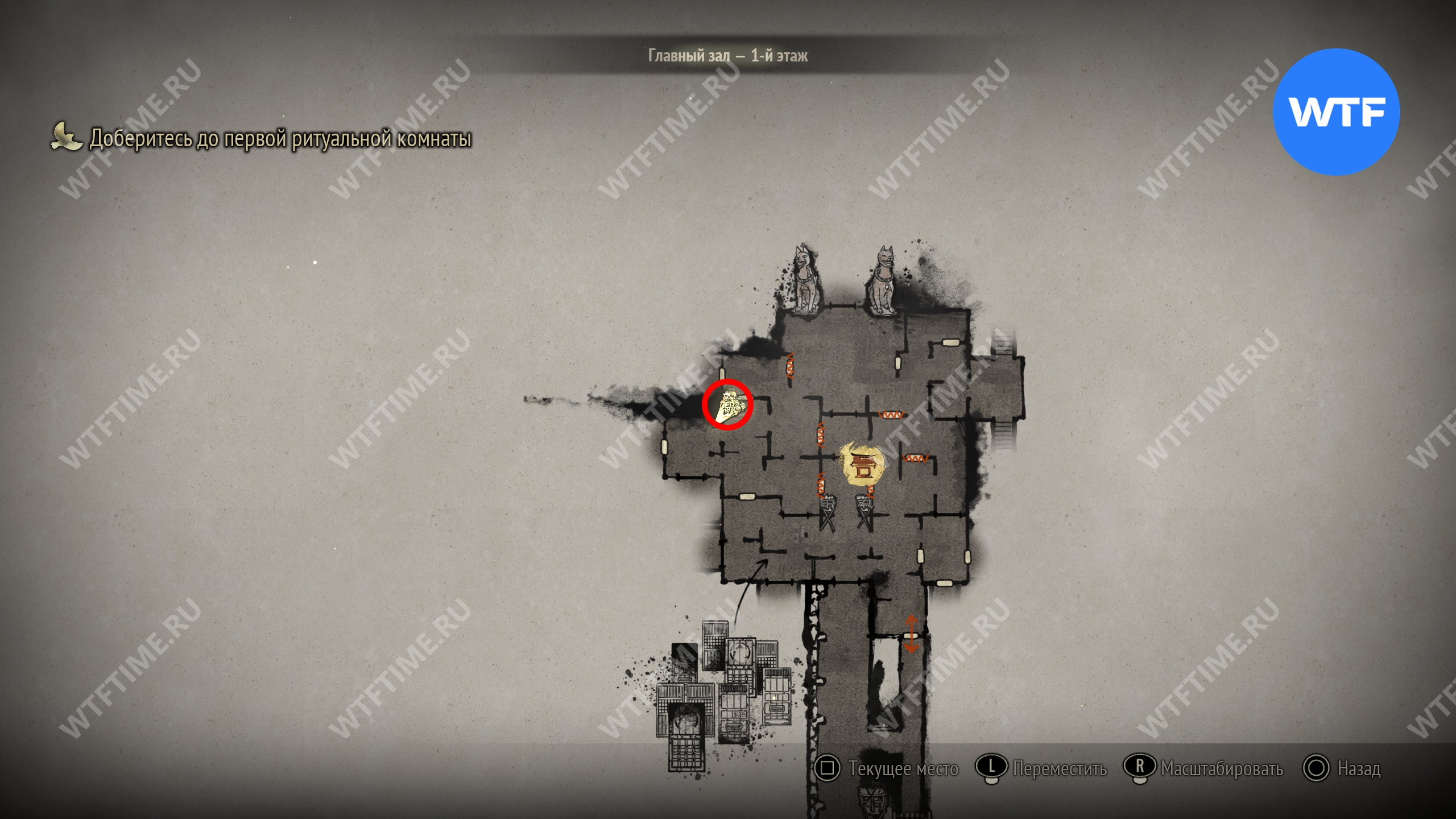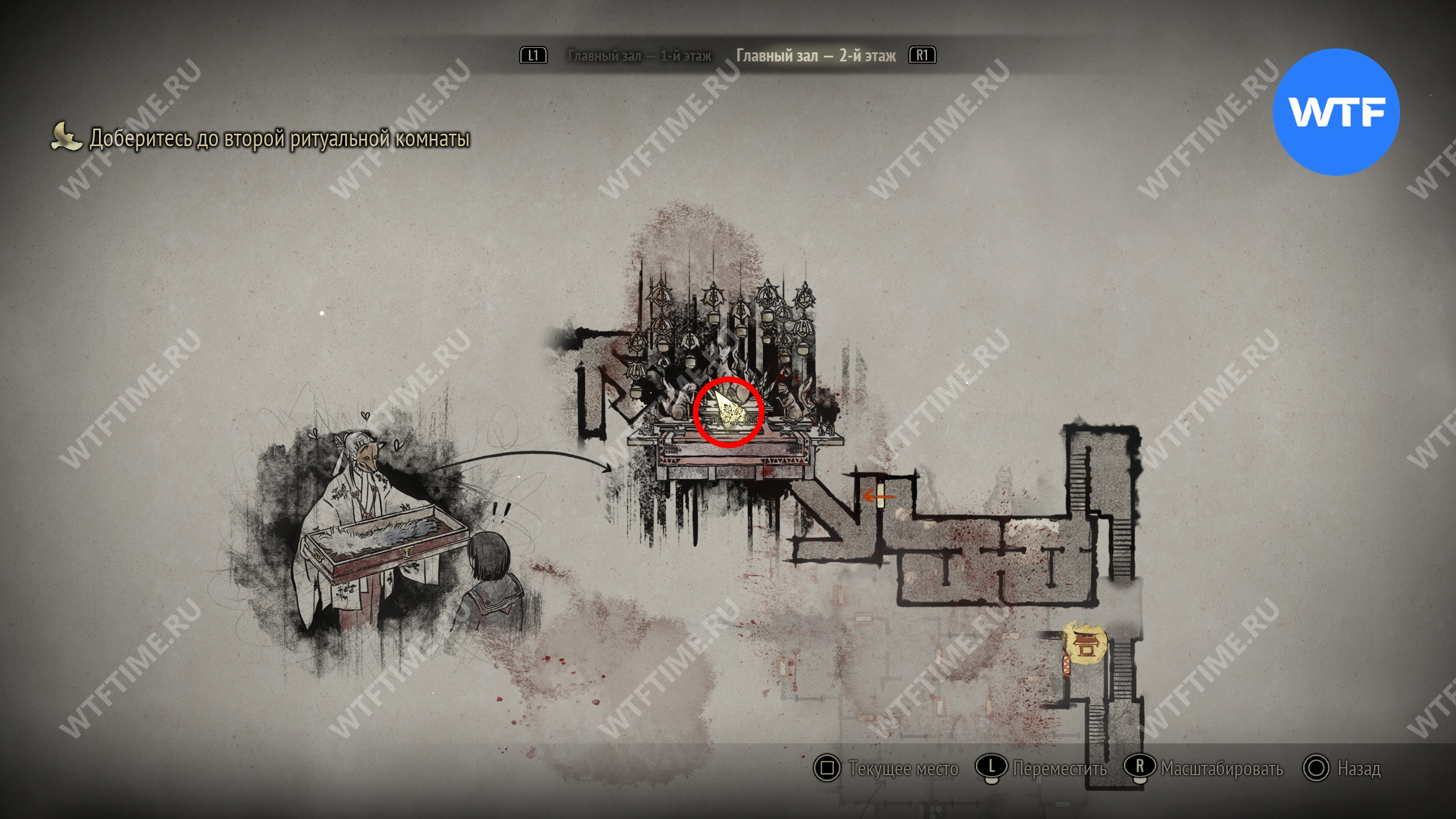 Теперь пришло время отправиться в последнюю ритуальную комнату. Чтобы её найти, вернитесь обратно на первый этаж и снова идите к восточной стене с горящими синими факелами.