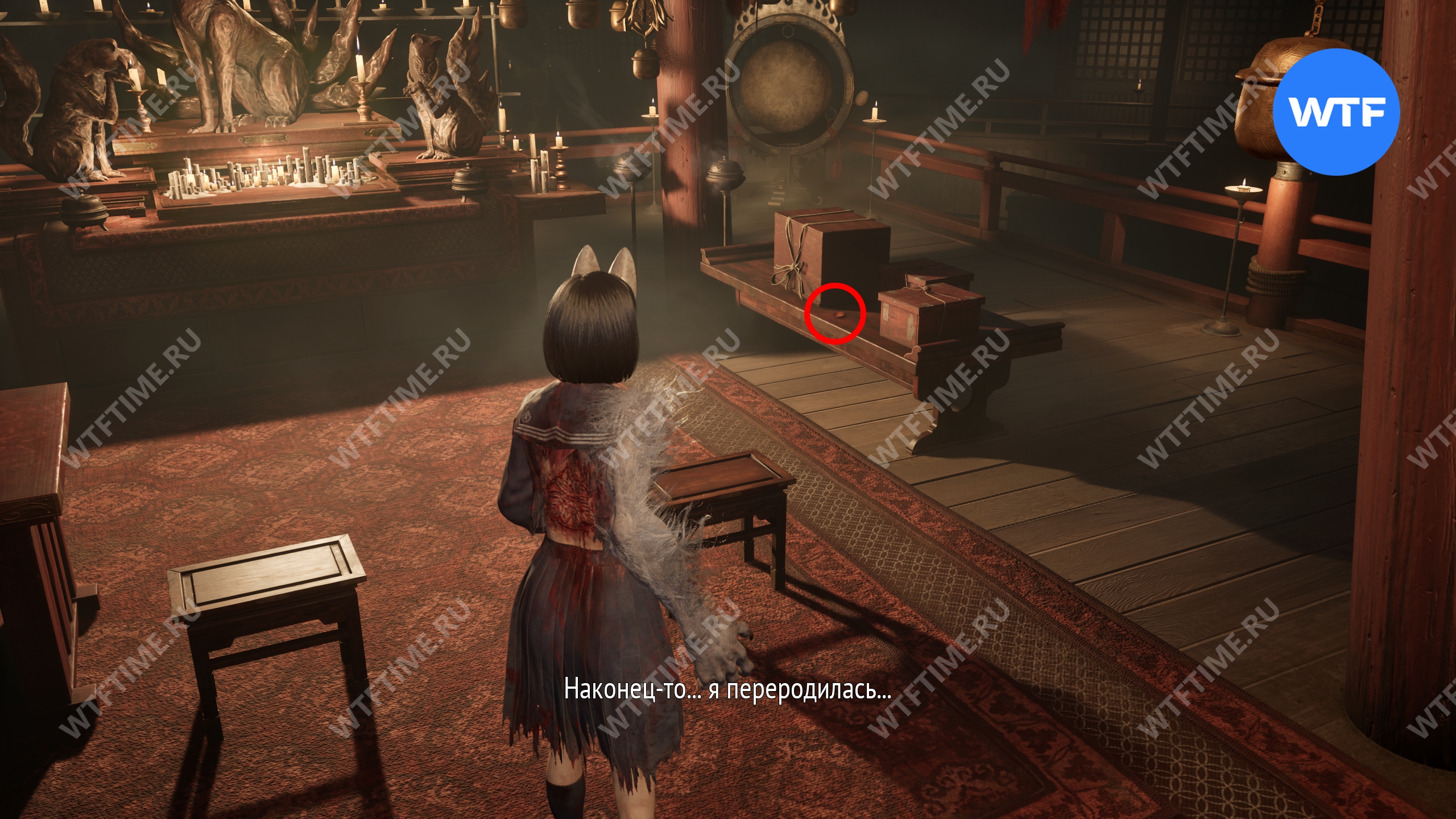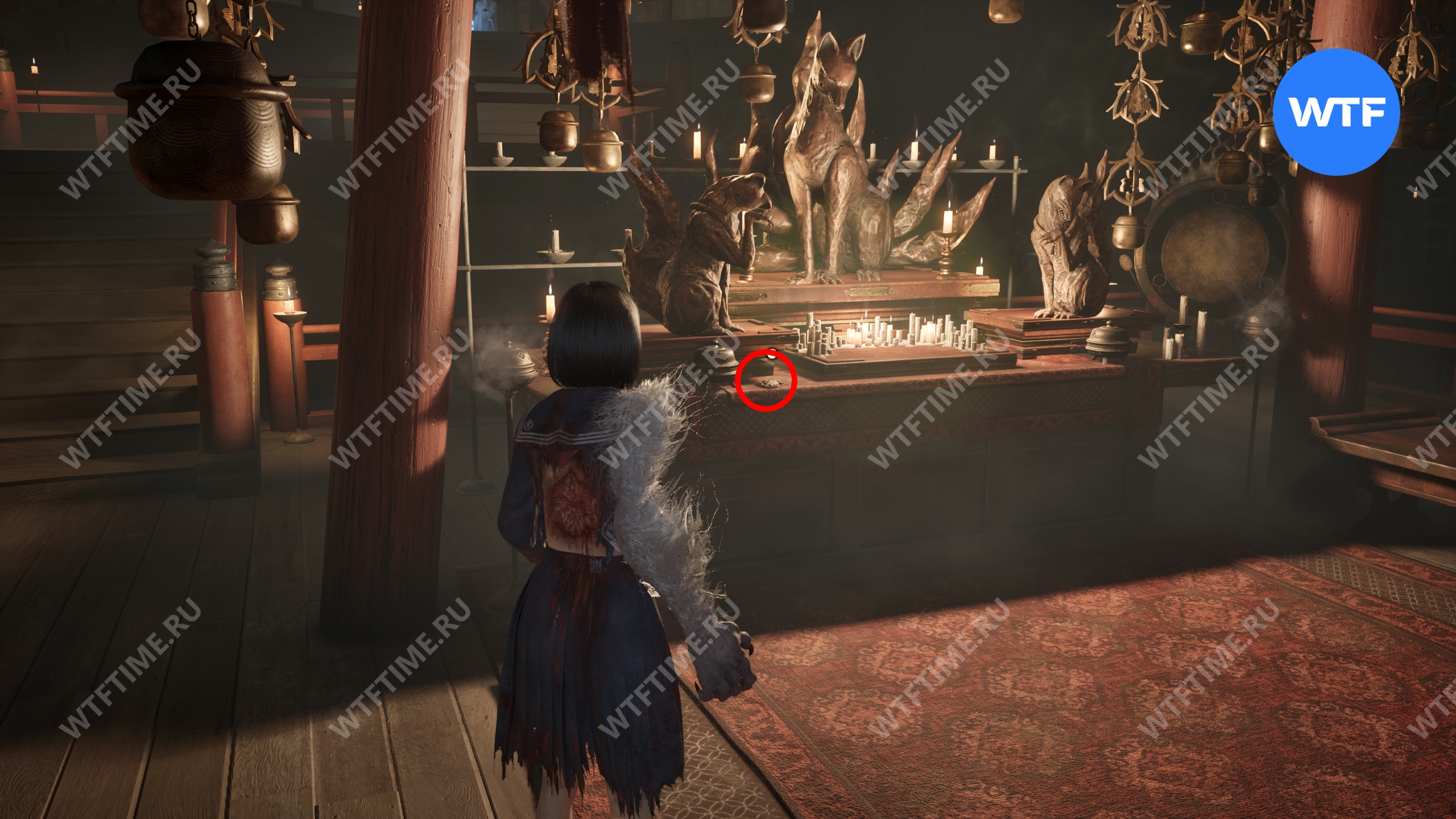 По пути придется разобраться еще с несколькими чудищами, чтобы добраться до места проведения ритуала. После кат сцены, во время которой Хинако получит новую способность, вы сможете подобрать еще одну высушенную тушу с алтаря.