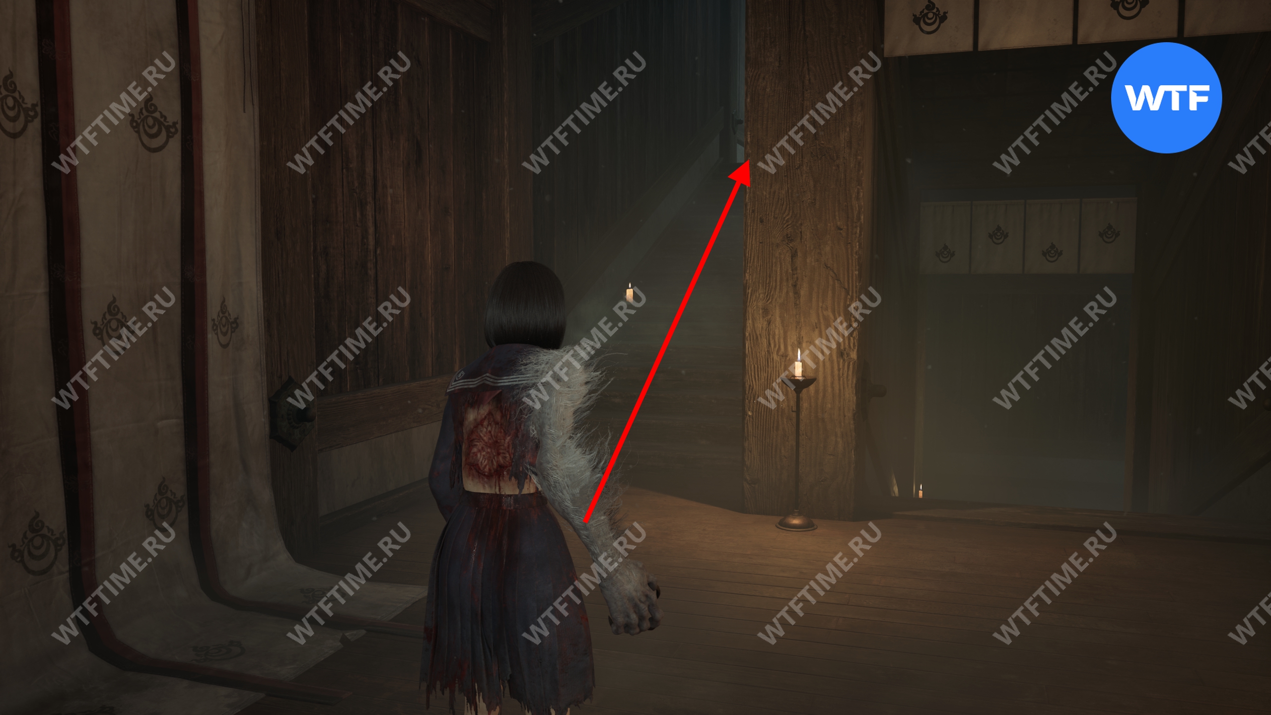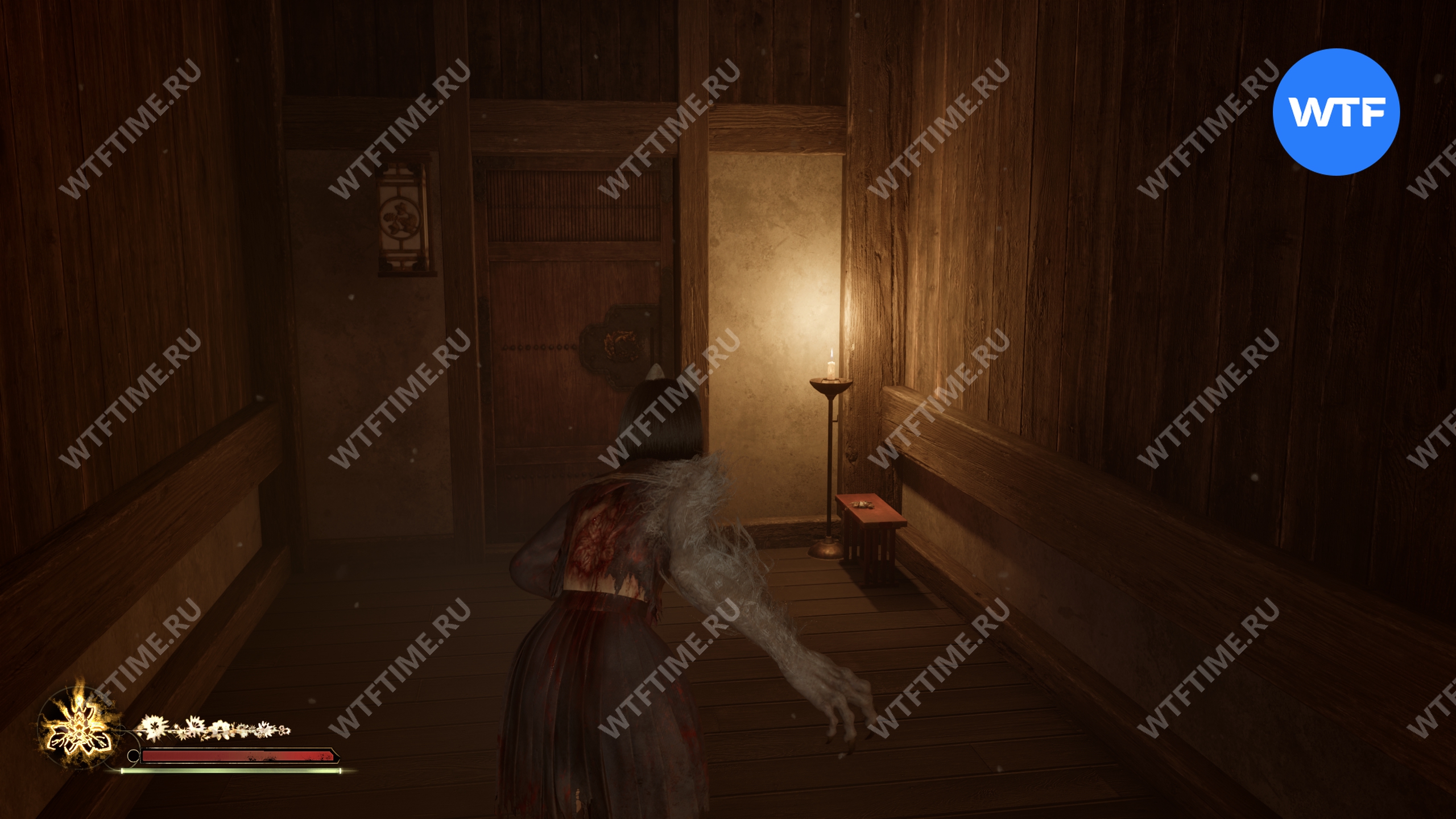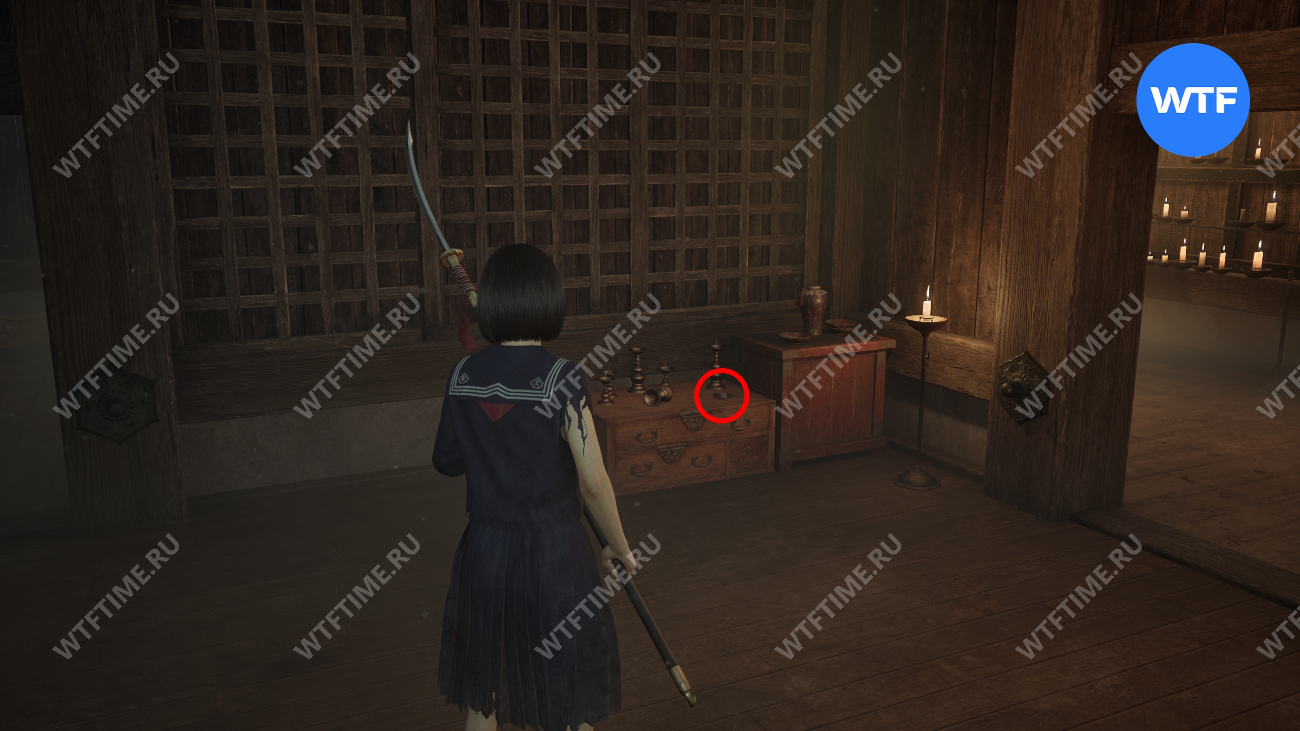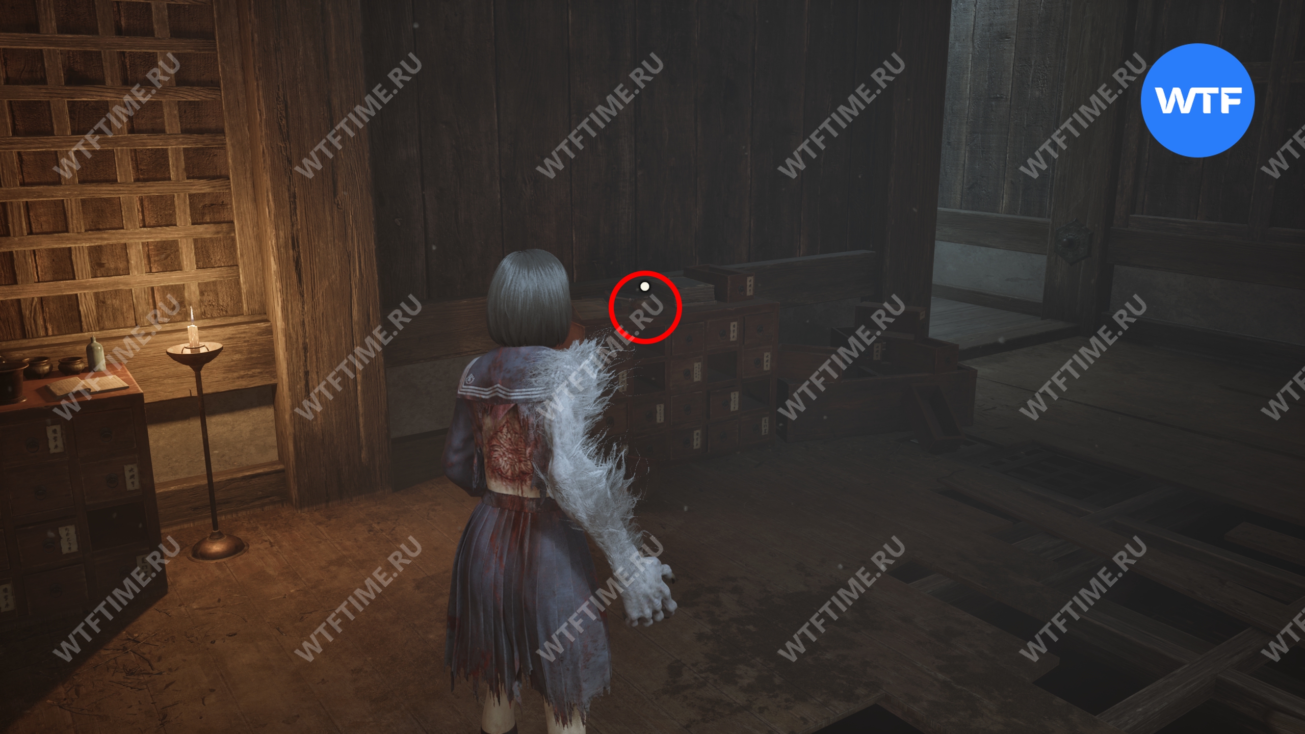 Пройдите по коридору до конца и в итоге окажетесь в первой ритуальной комнате. После длинной кат сцены, в которой Хинако обзаведется новой рукой, заберите сморщенный абура-агэ, лежащий на алтаре.
