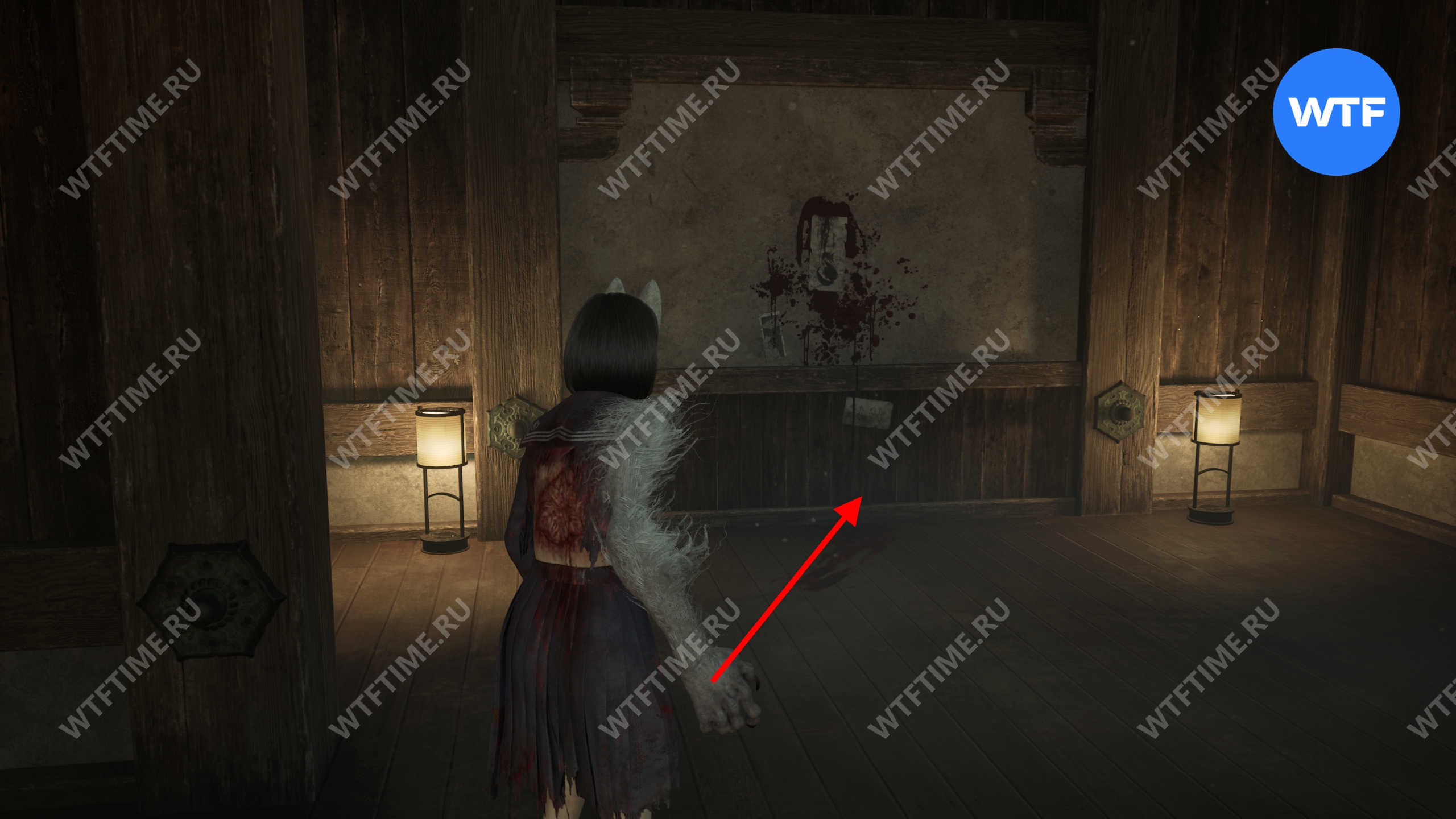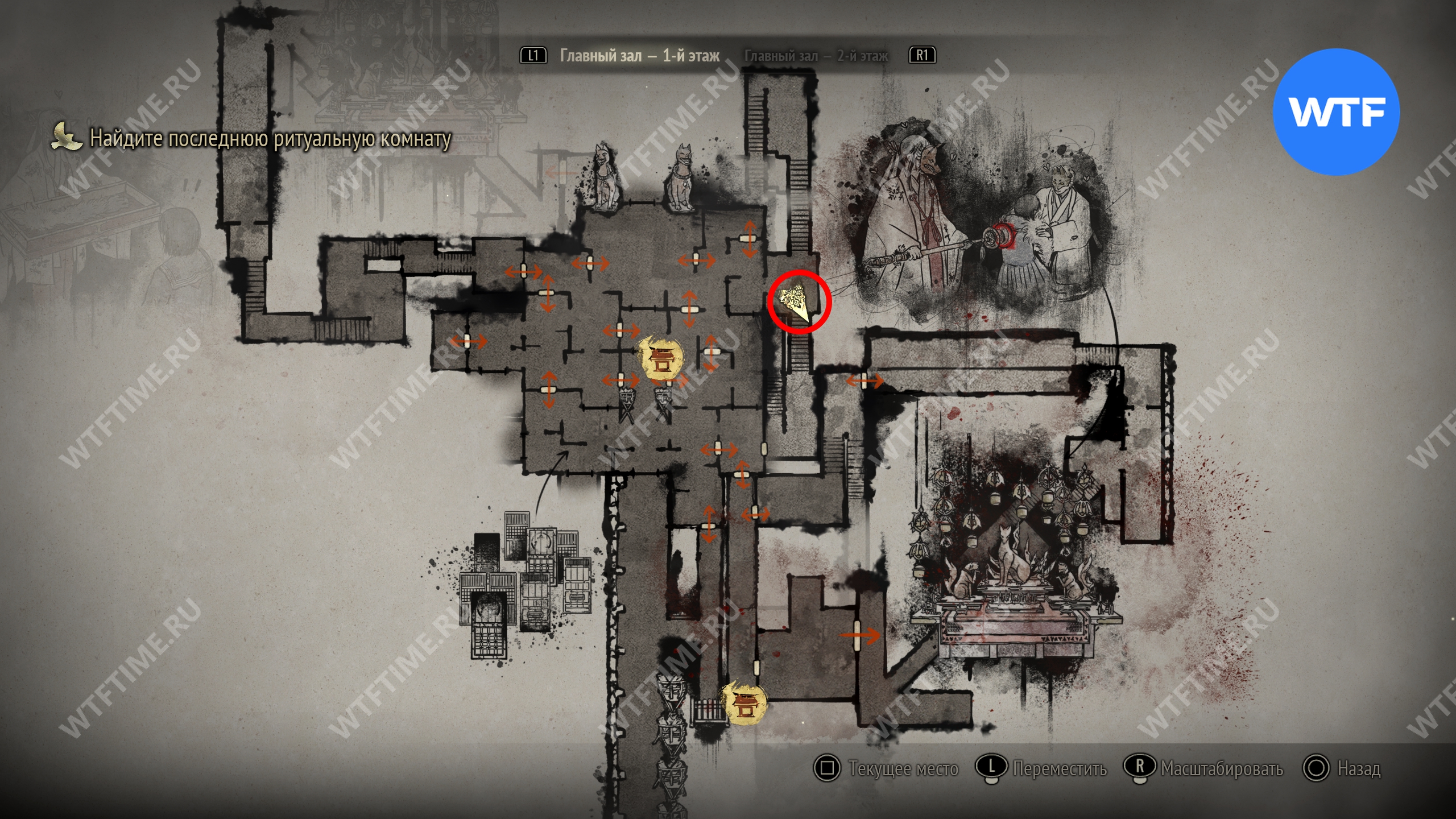 Теперь вы сможете убирать стены, отмеченные кровавыми символами. Это позволит вам попасть в комнату, отмеченную на карте ниже. Там вы найдете дощечку эма, журнал семейного врача и сморщенный абура-агэ.