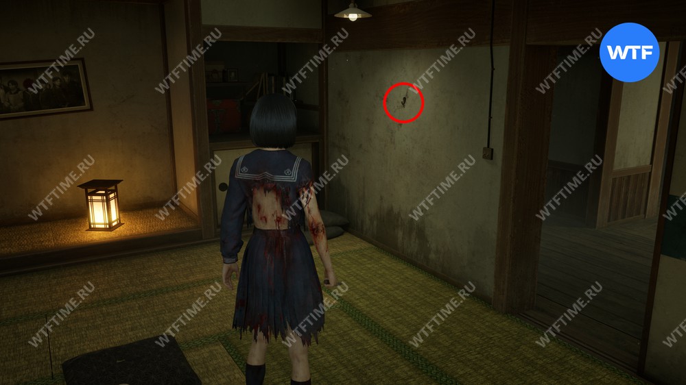 Чтобы найти пропавшую картину, вы должны перейти во вторую версию дома семьи Симидзу. Для этого идите к месту, указанному на карте ниже, и подберите календарь, стоящий справа от двери с головоломкой.