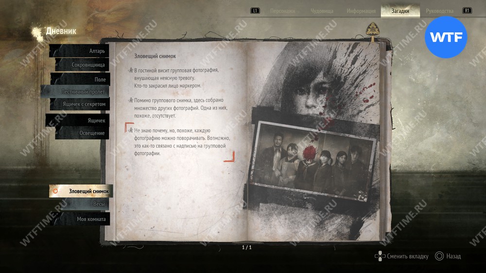 После того как вы пройдете через третью версию дома и снова вернетесь к первой, можно будет отправиться разгадывать саму головоломку со «Зловещим снимком». Как только вы повесите картину с Хинако на крючок, ваш журнал обновится.