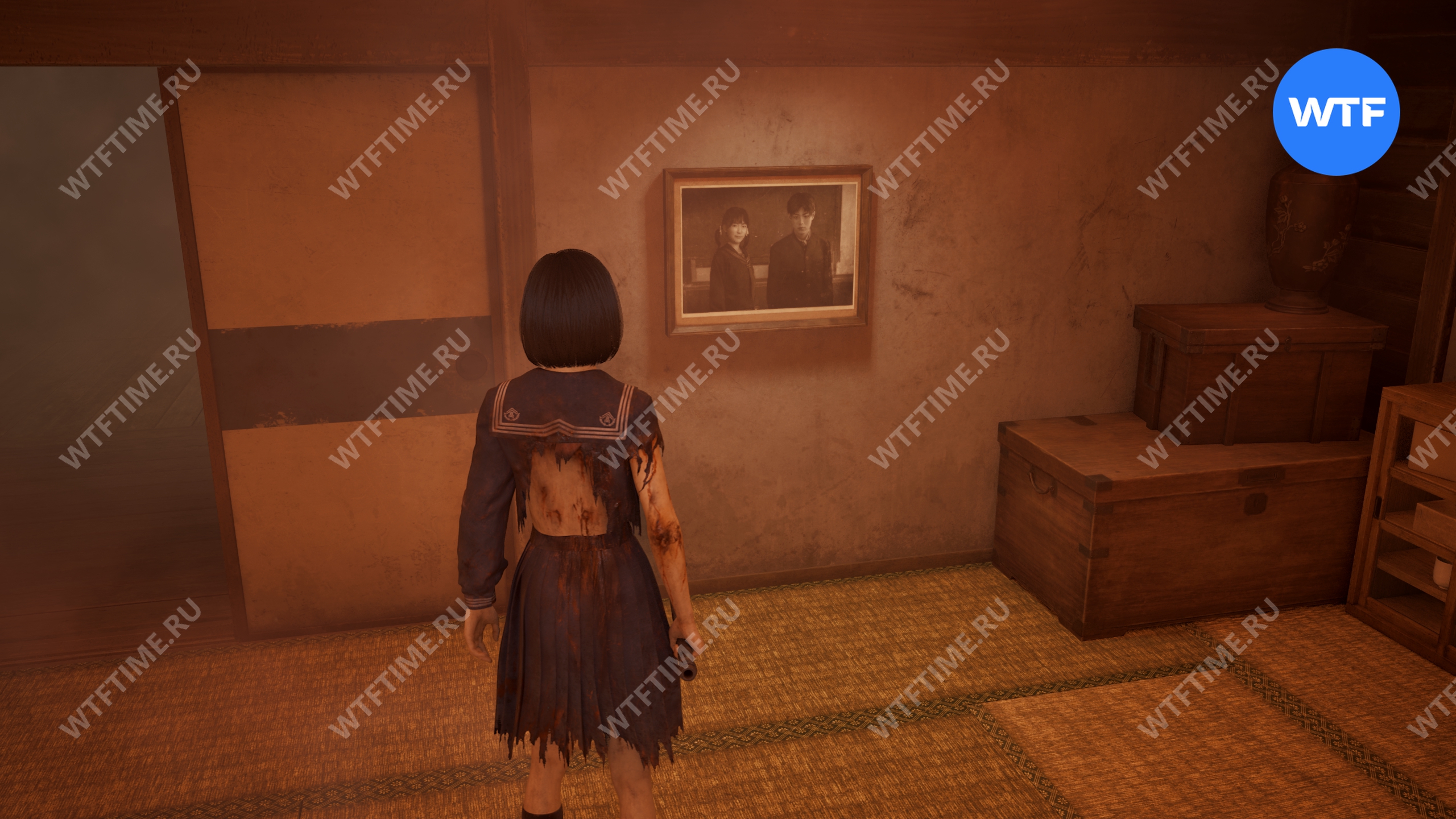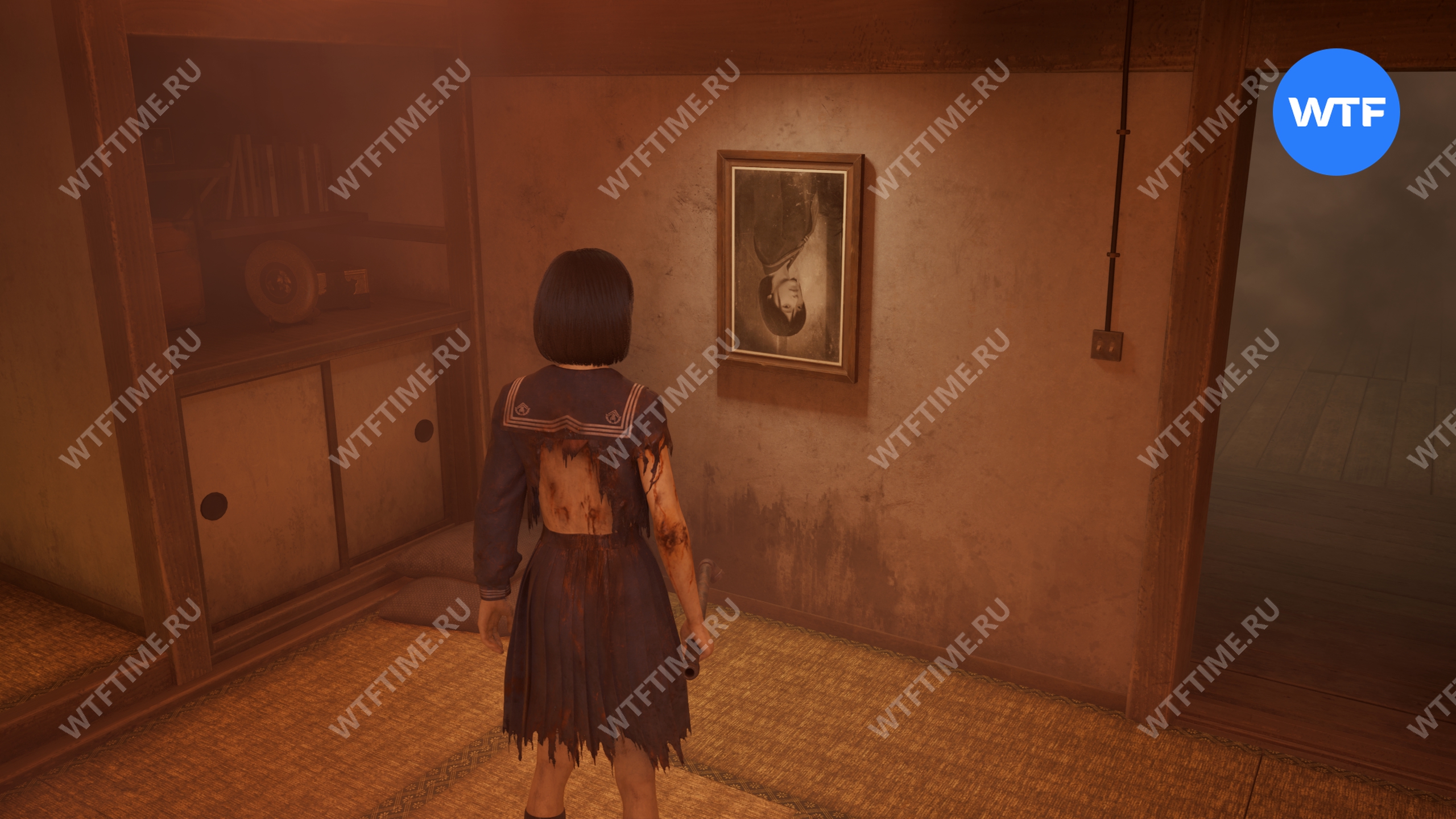 - Фотографии родителей Хинако и Ринко должны висеть вверх ногами.