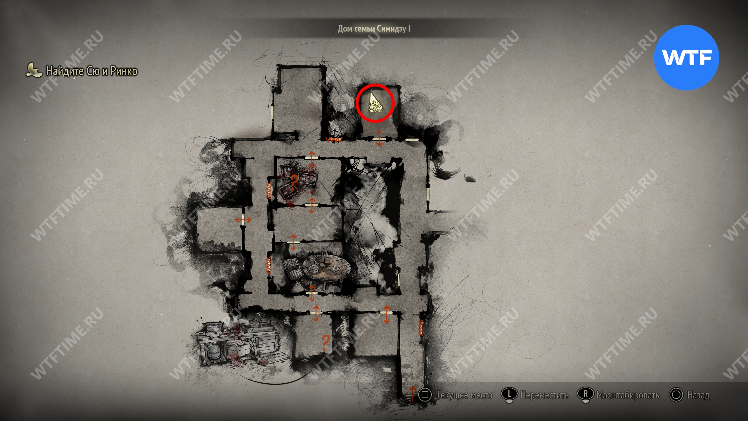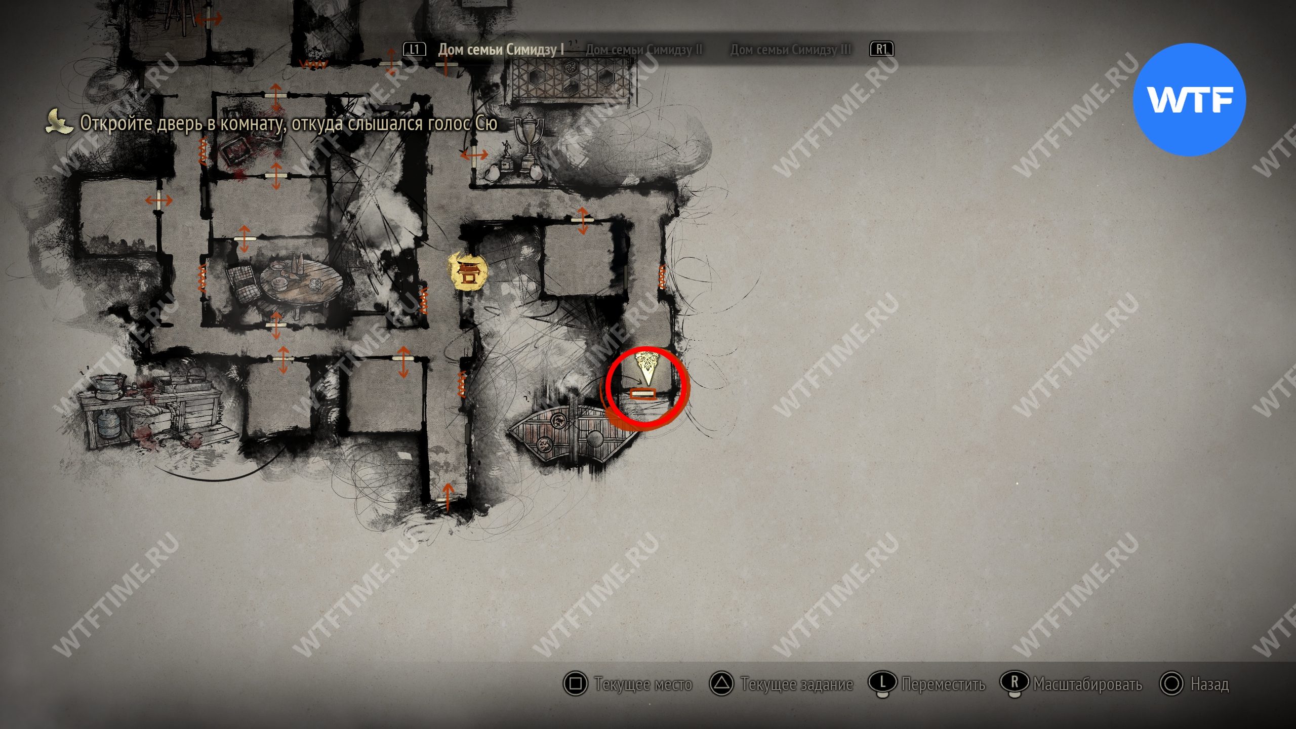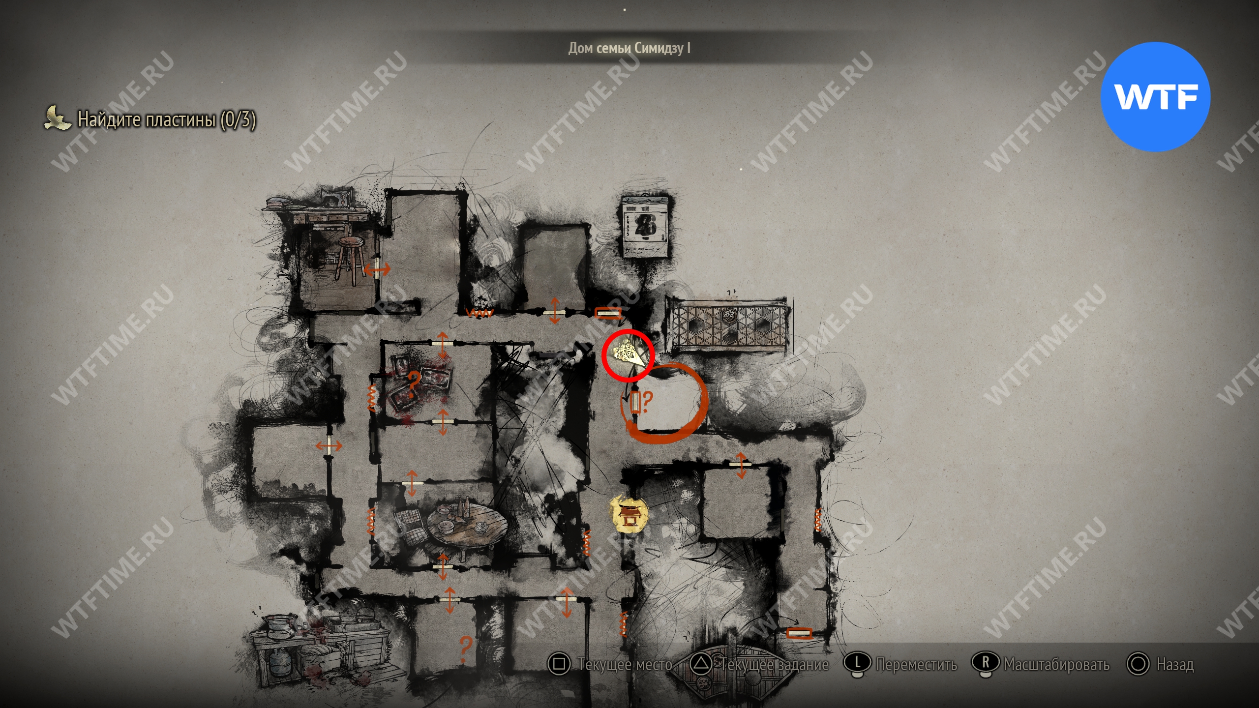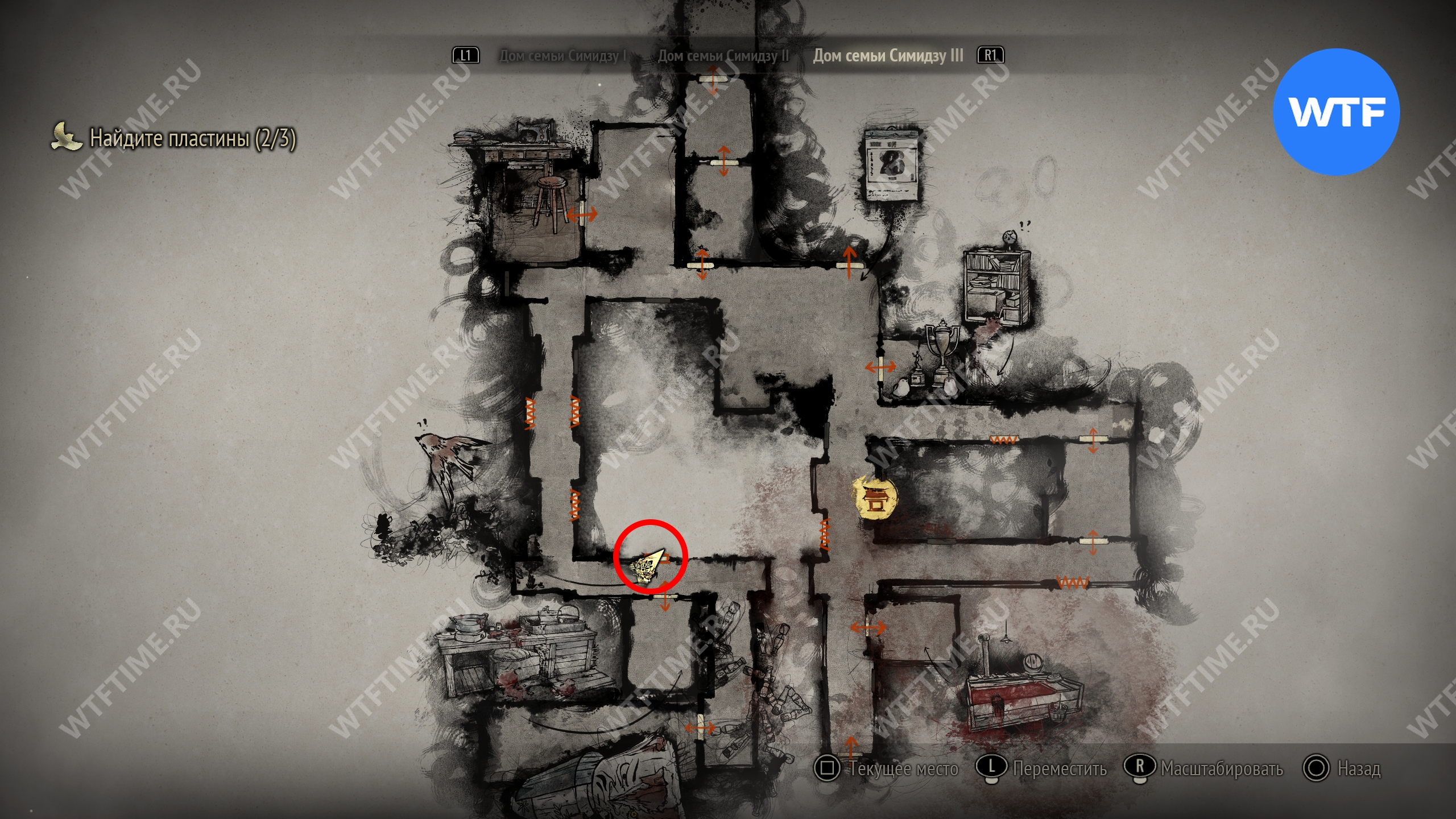Затем идите к месту, отмеченному на карте ниже, и разместите пожелтевший календарь на пустующем крючке. Это откроет дверь к северу и позволит вам перейти к третьей версии дома семьи Симидзу.