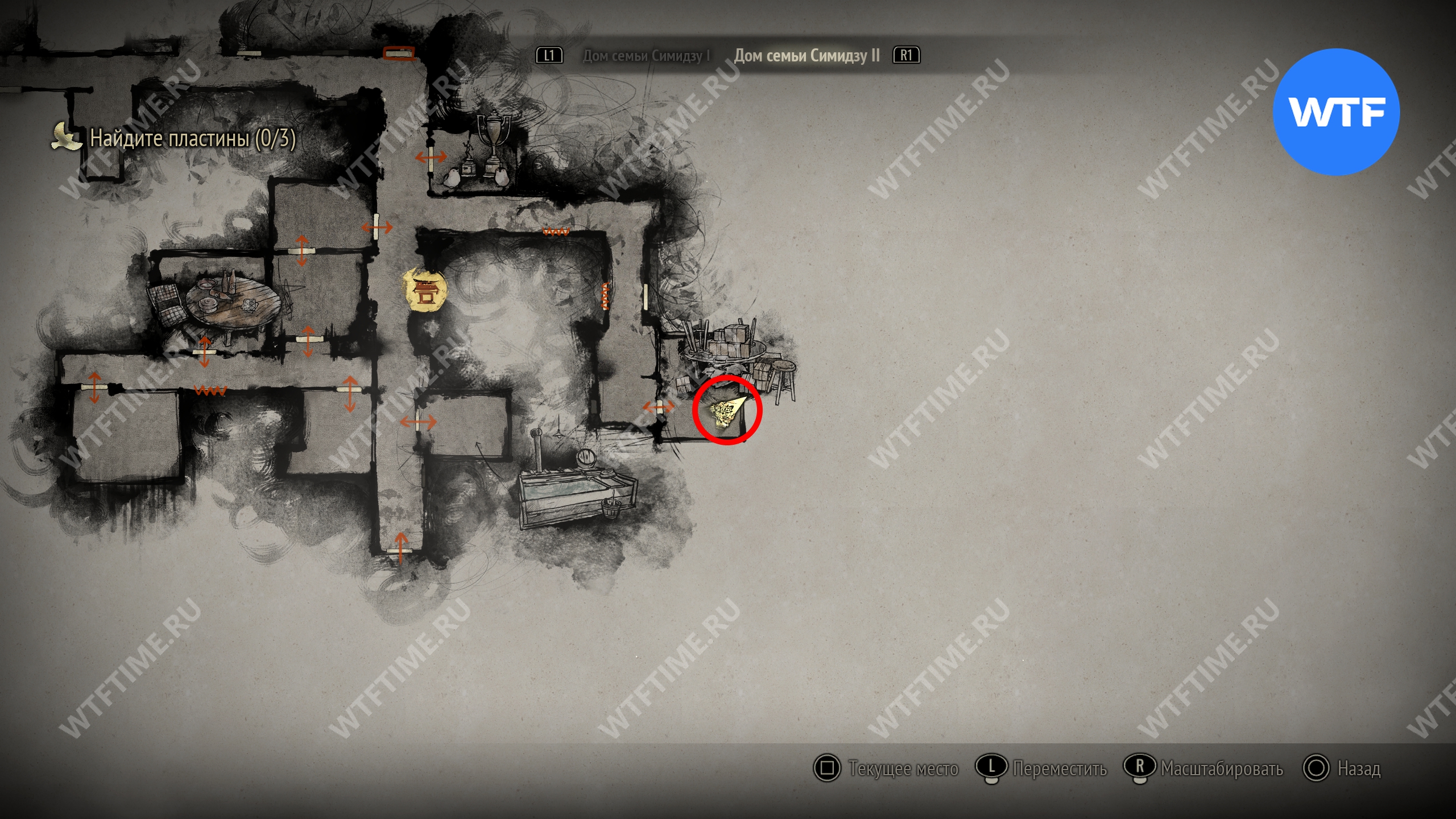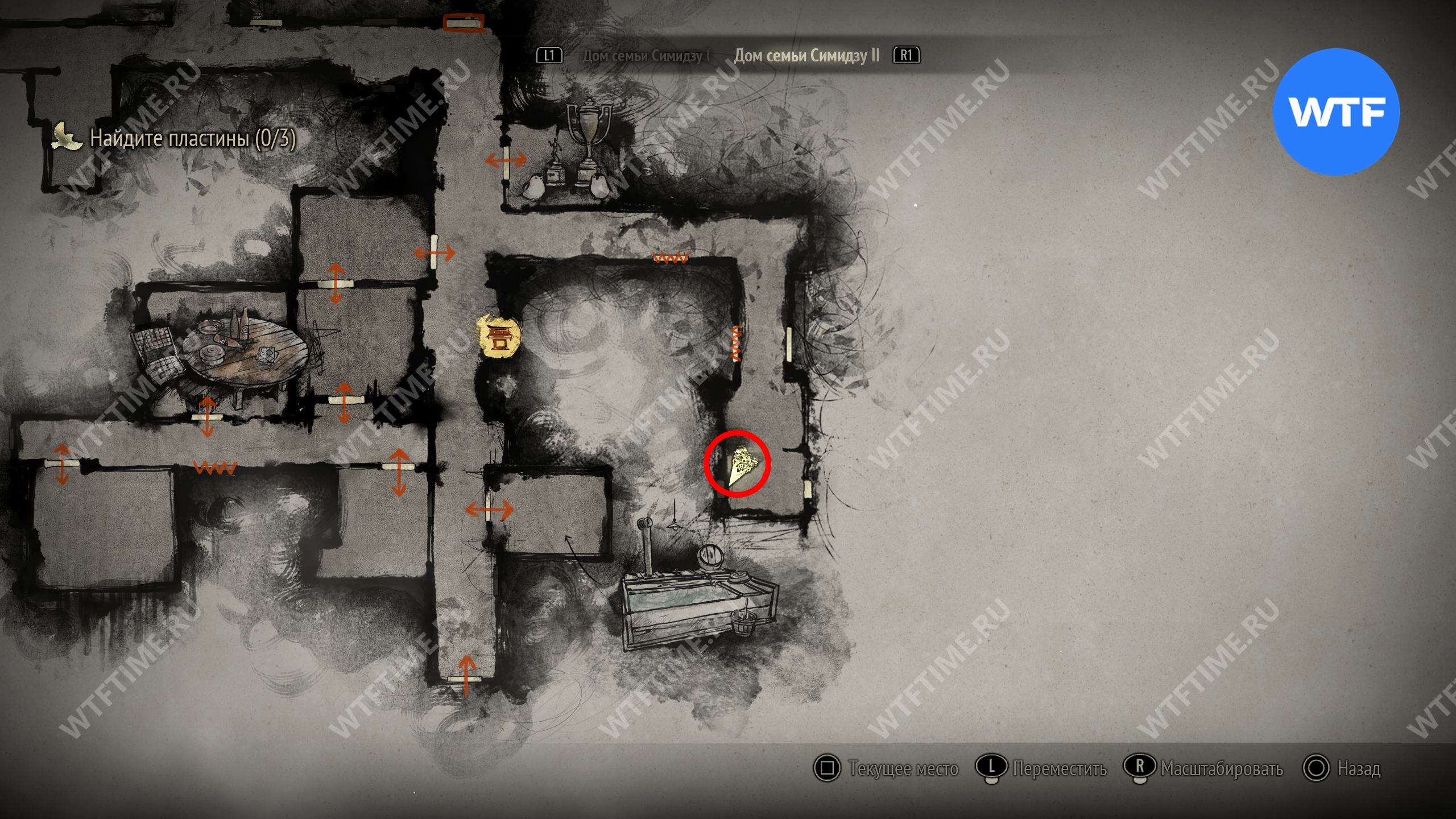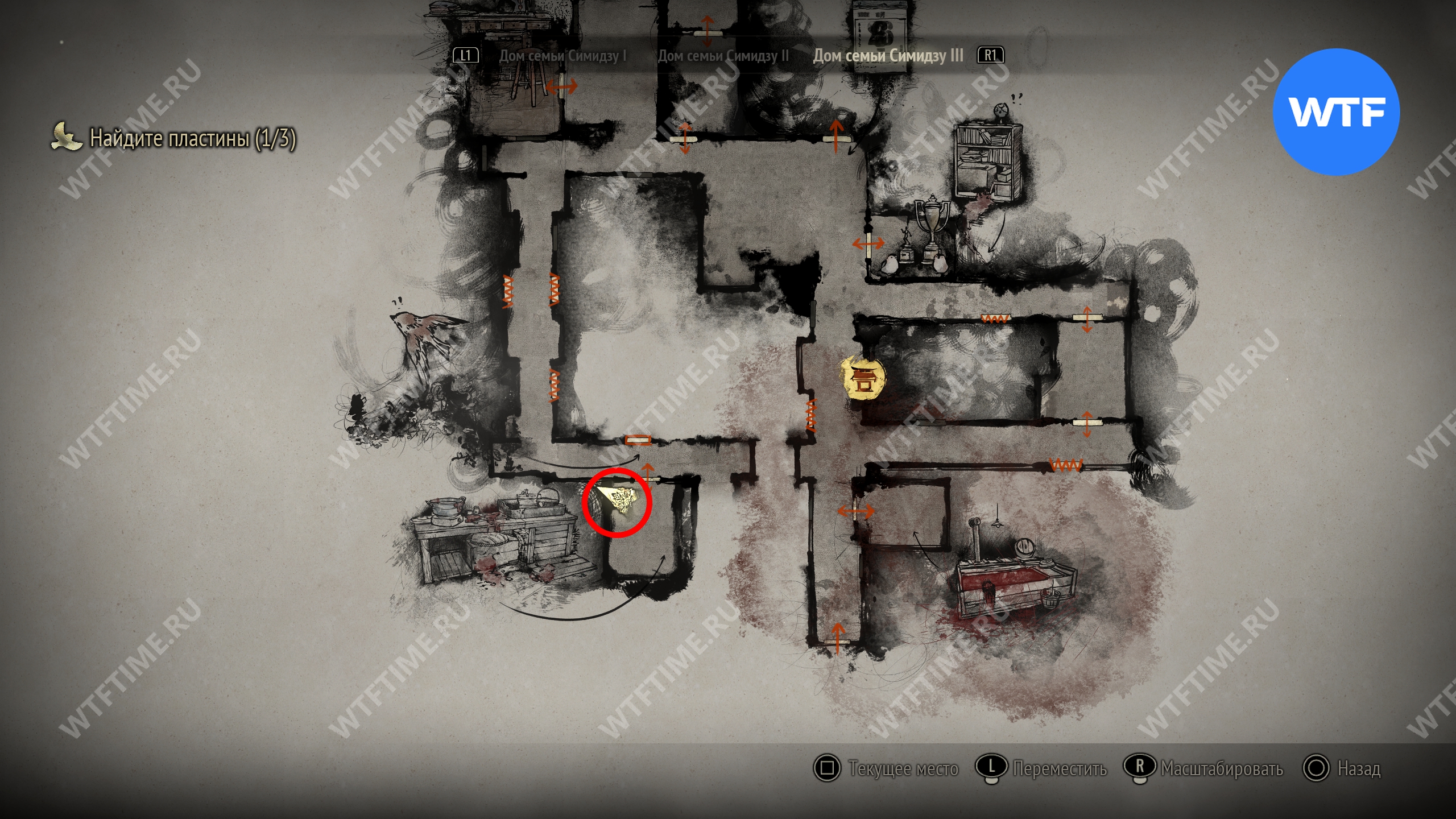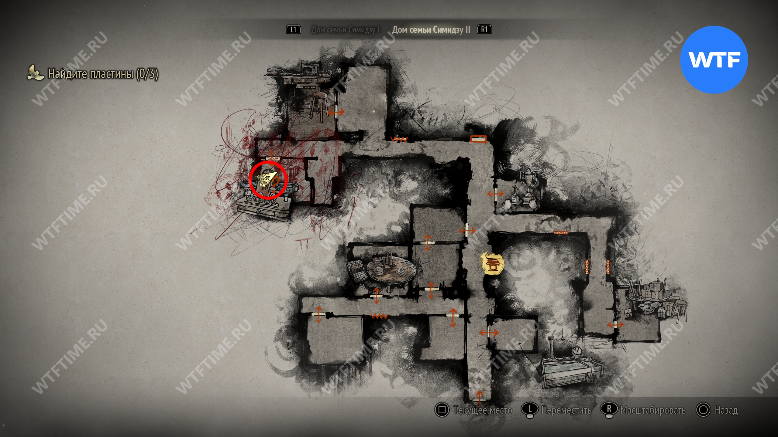 Затем идите к месту, отмеченному на карте ниже, и разместите пожелтевший календарь на пустующем крючке. Это откроет дверь к северу и позволит вам перейти к третьей версии дома семьи Симидзу.