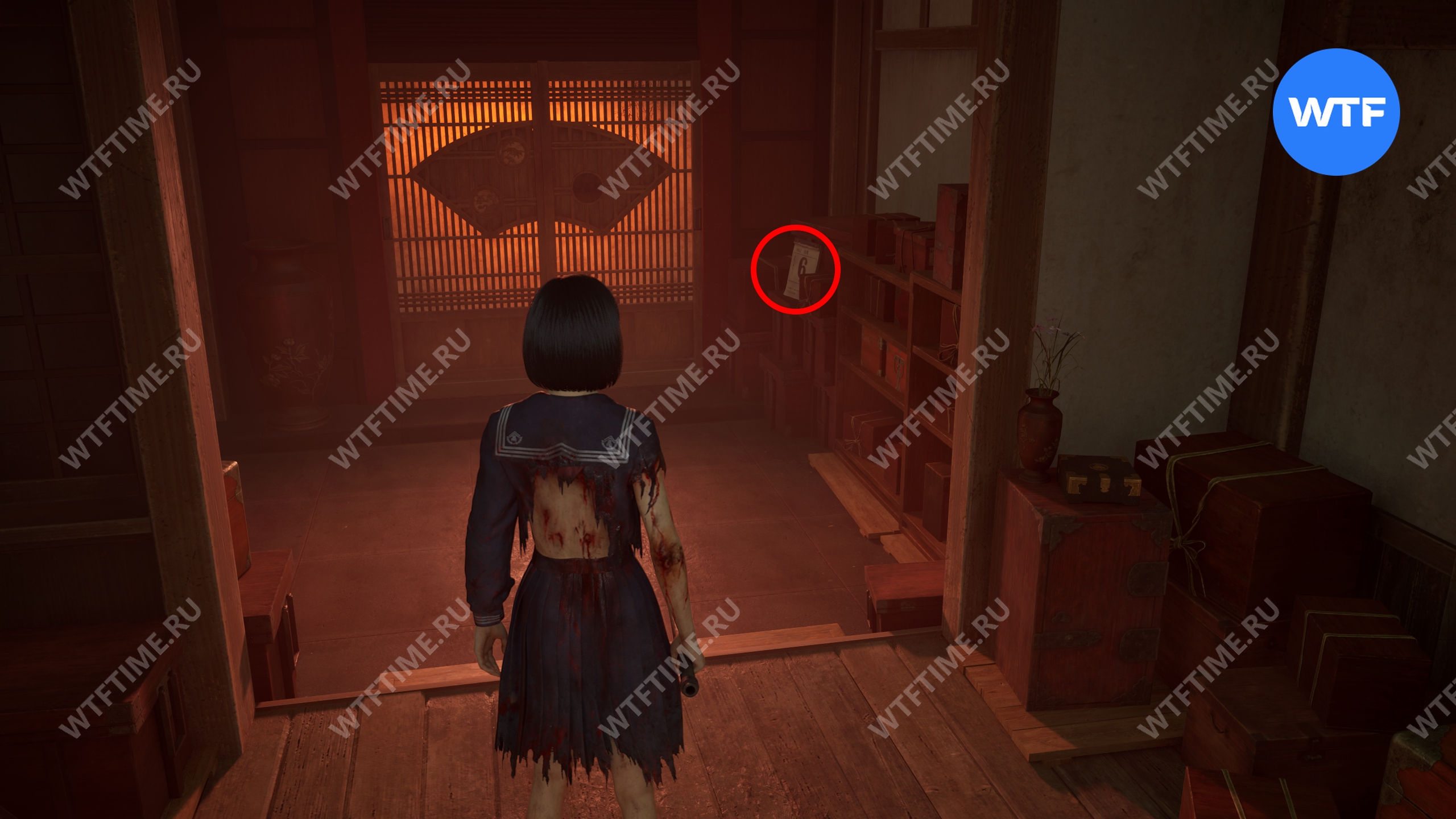 С этим календарем идите к месту, отмеченному на карте ниже, и повесьте календарь на пустующий крючок на стене. Это откроет дверь к северу от вас и позволит перейти во вторую версию дома семьи Симидзу.
