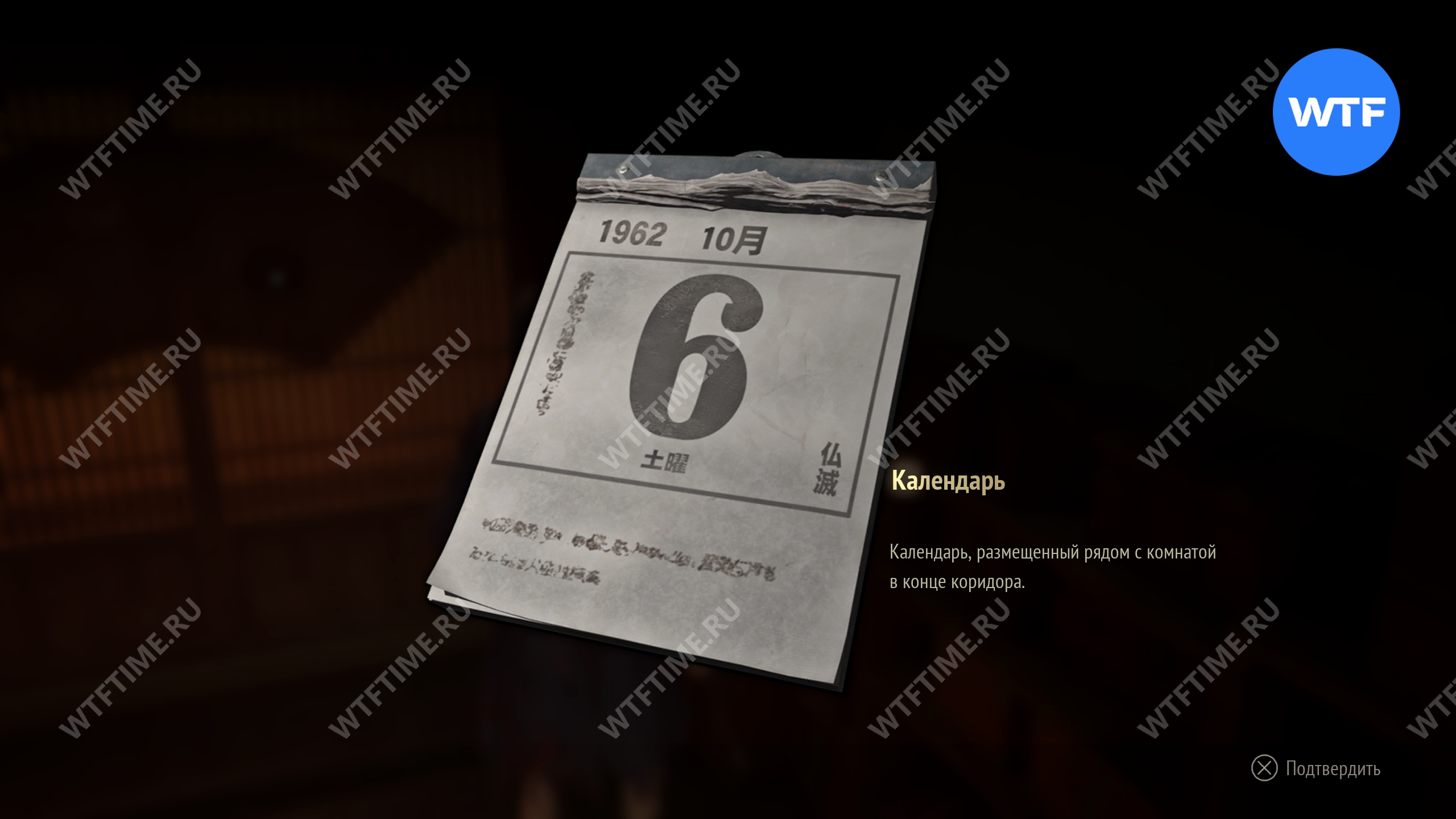 После этого идите к двери с эмблемой в юго-восточном углу. Справа от неё стоит календарь с большой цифрой 6, который вам нужно забрать с собой.