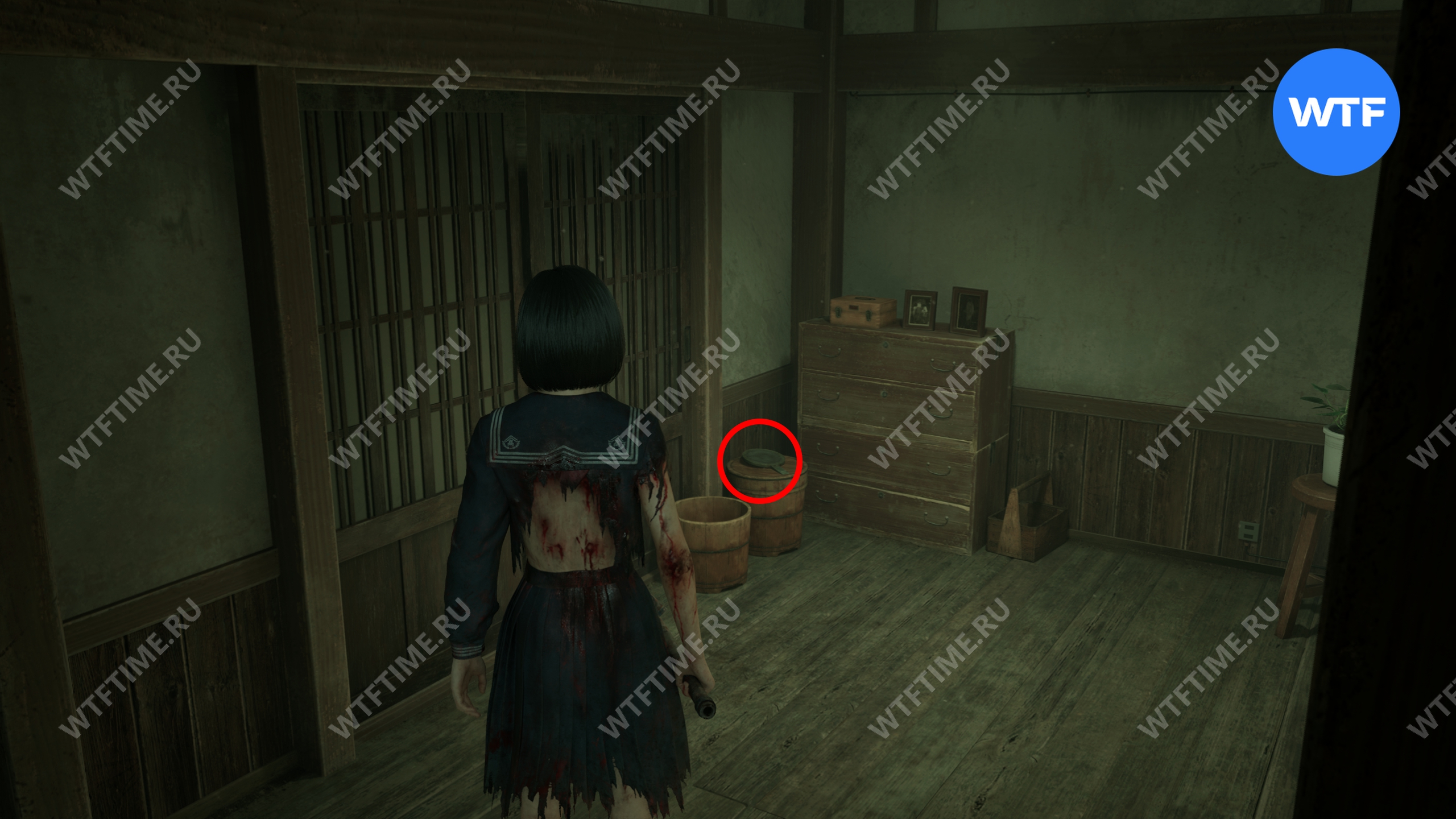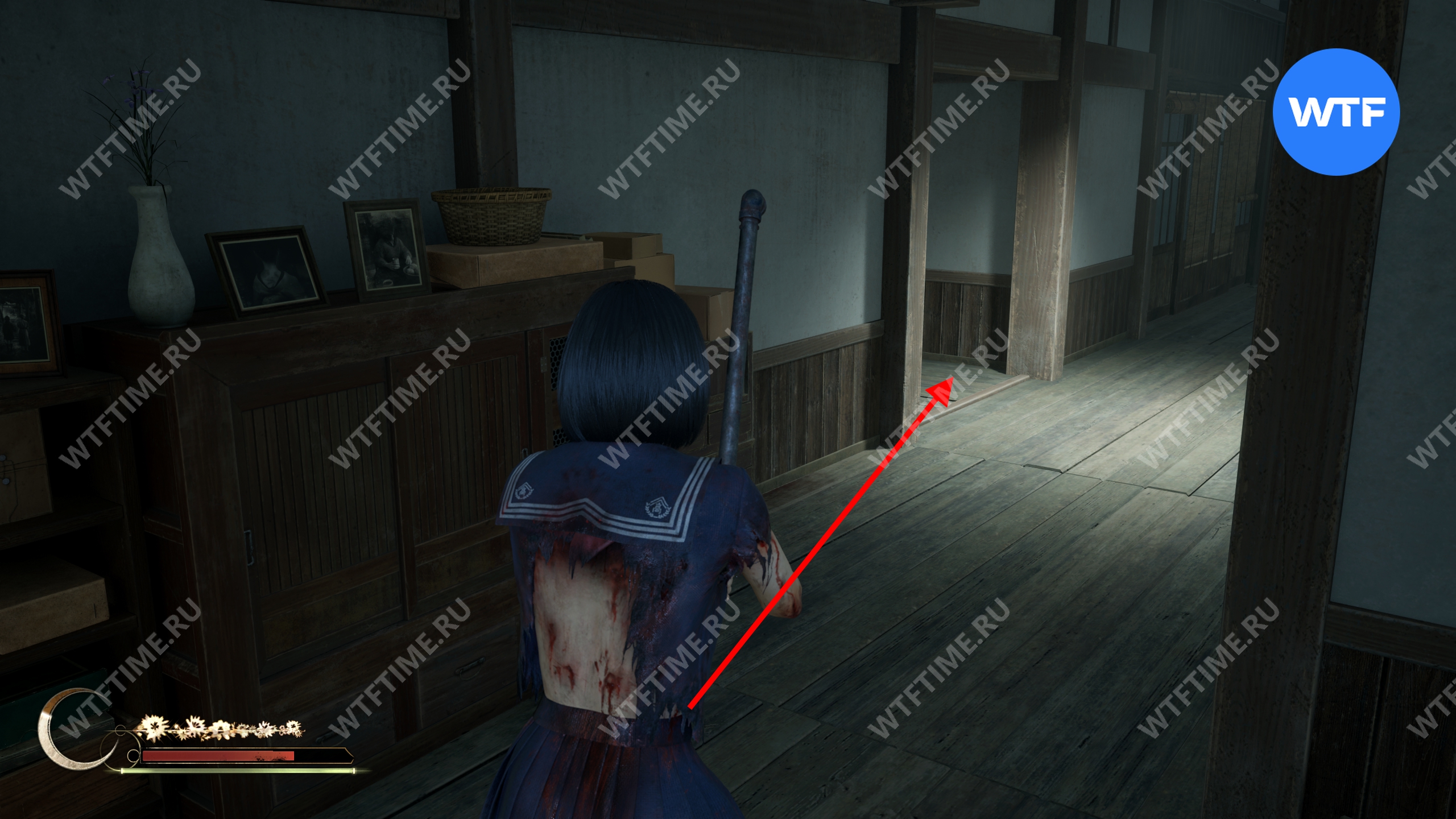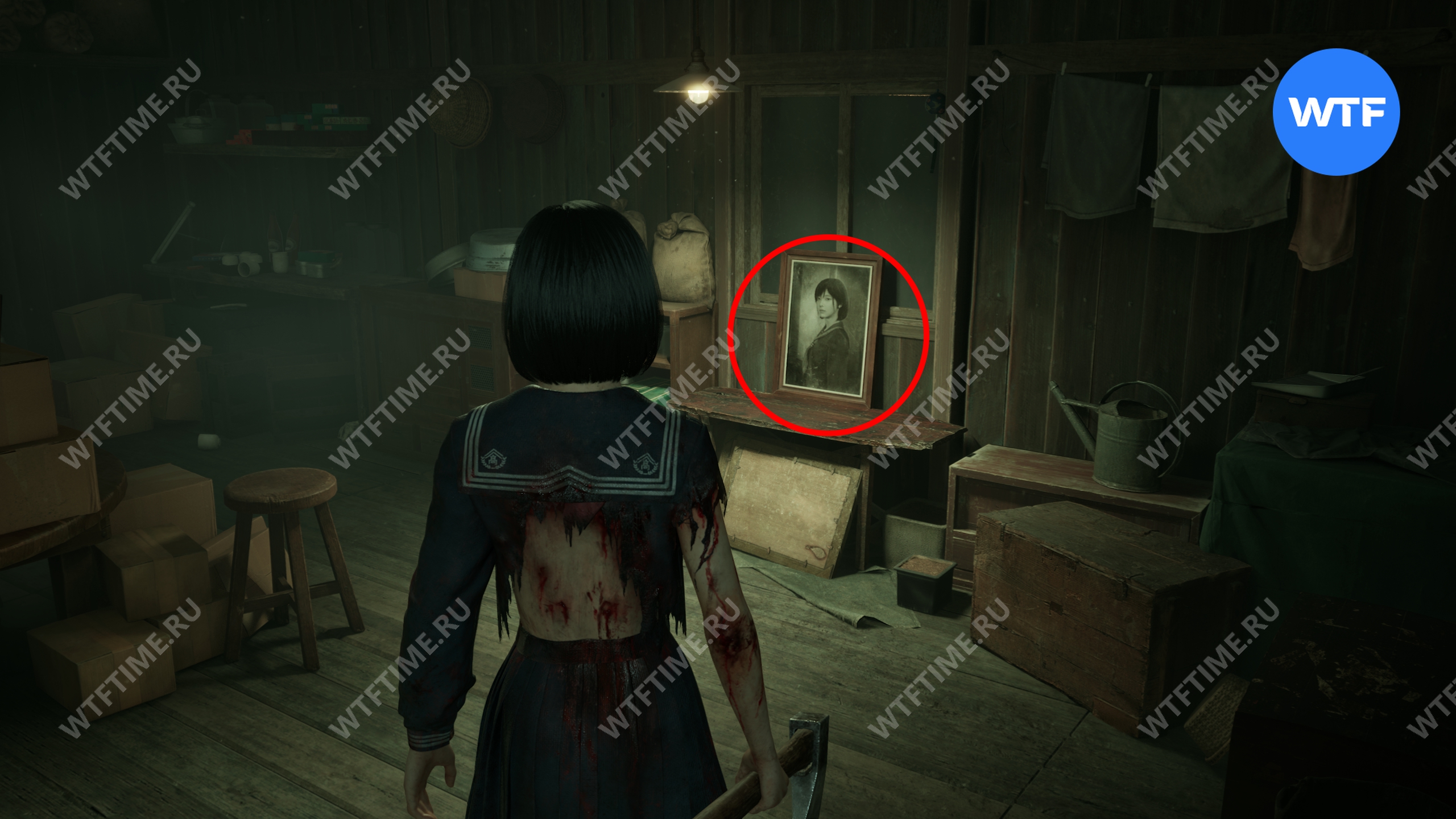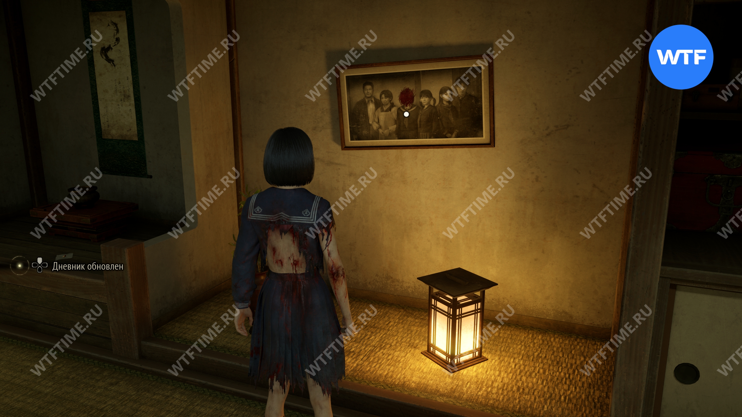 В комнате справа от предыдущего подношения можно забрать фотографию в рамке — это ключевой предмет, который понадобится вам для решения загадки «Зловещий снимок».