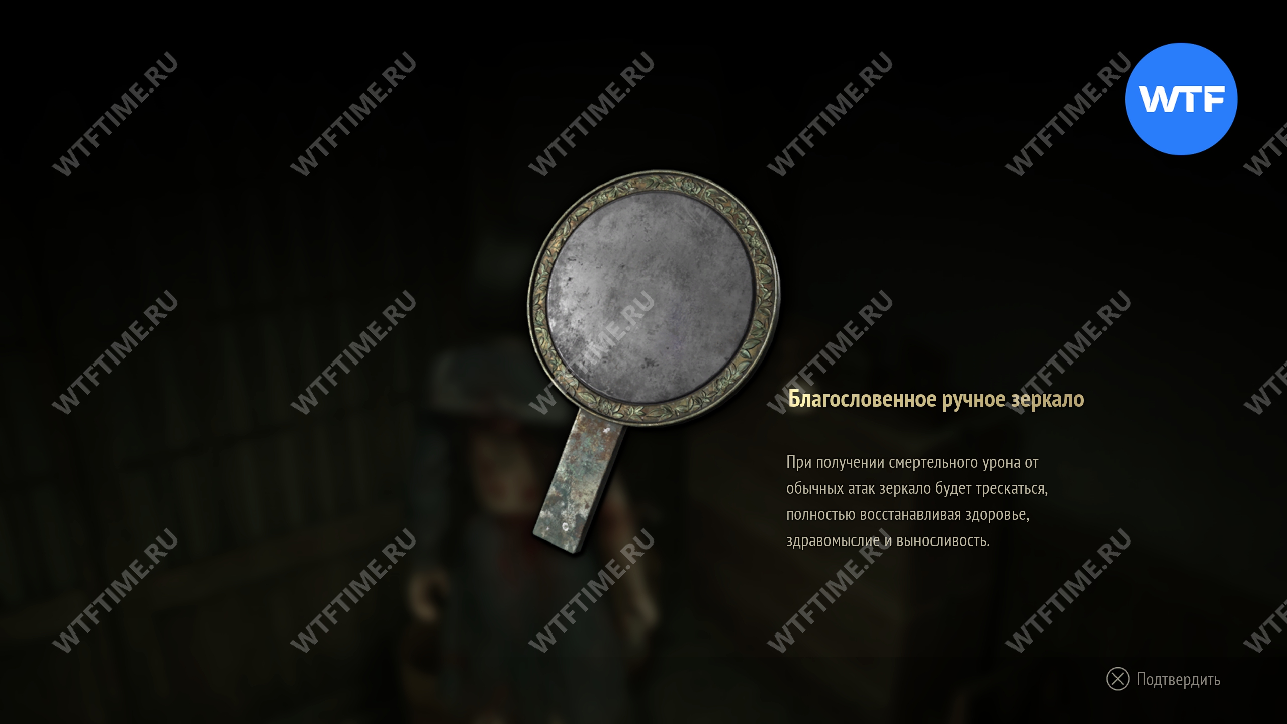 Затем идите в северо-западный коридор и заберите благословенное ручное зеркало, лежащее на корзине. Это расходуемый предмет, который ставится в слот омамори и спасает вас от смерти.
