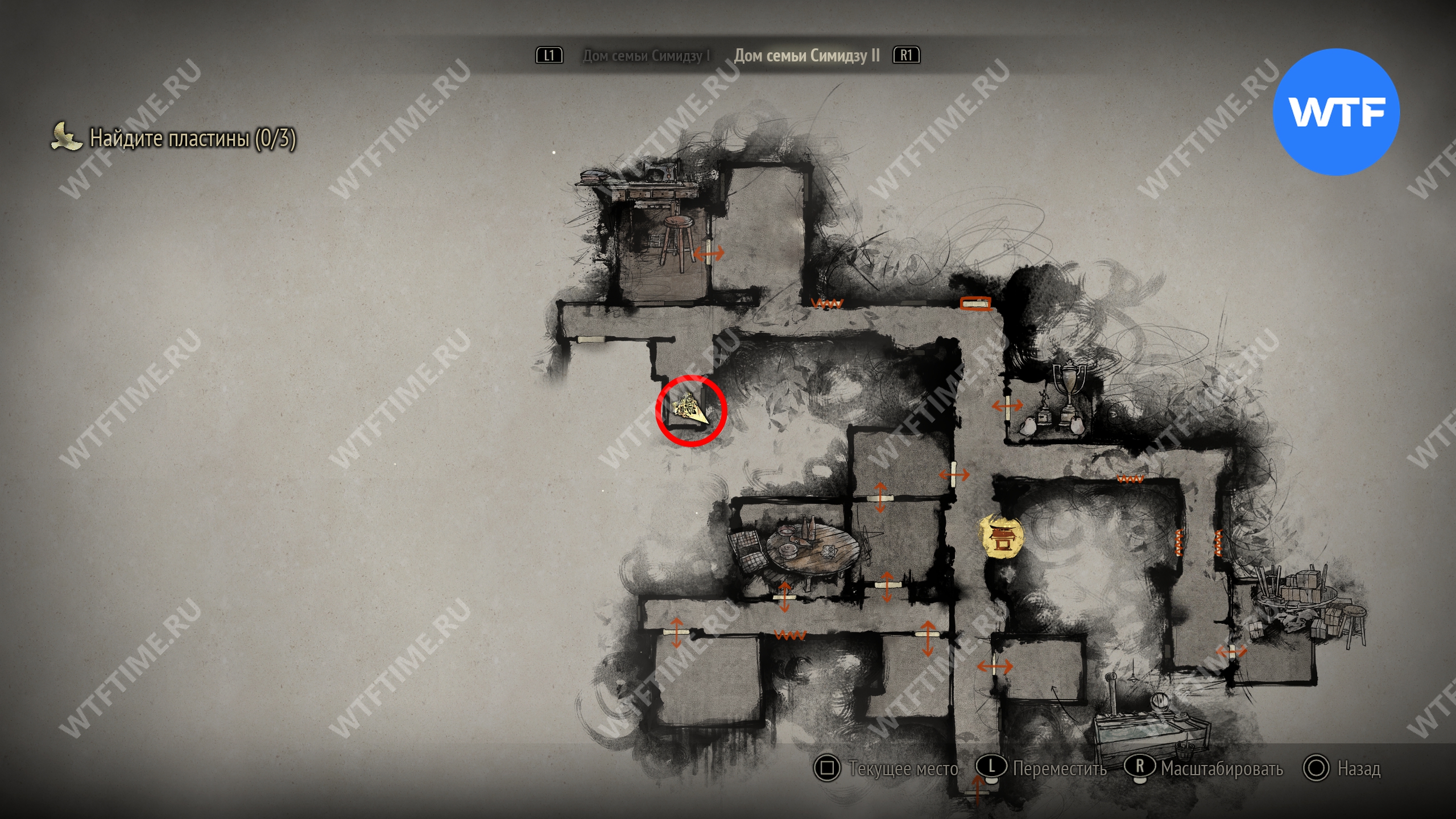 Снова вернитесь в первую версию дома семьи Симидзу и идите к двери с загадкой «Моя комната». Вставьте в неё три пластины, а затем переходите к решению самой головоломки.