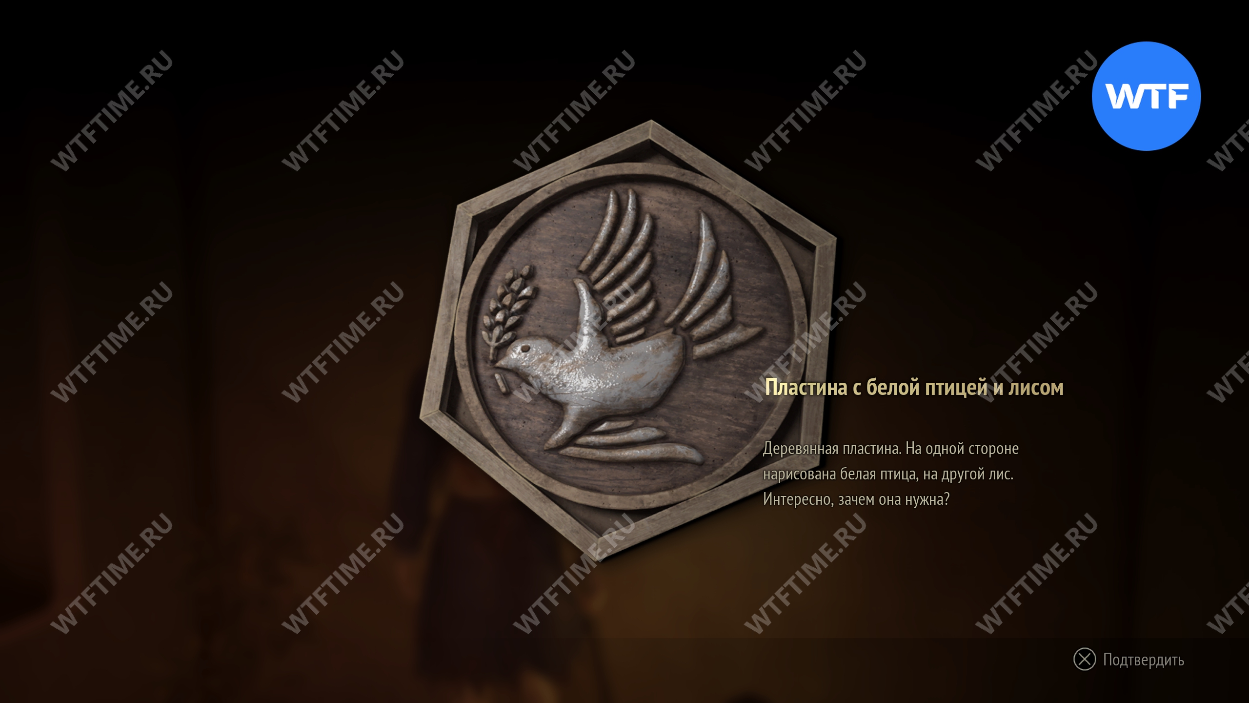 Как только загадка будет решена, вы сможете войти в комнату и после длинной кат сцены забрать эмблему с сосной со стола.