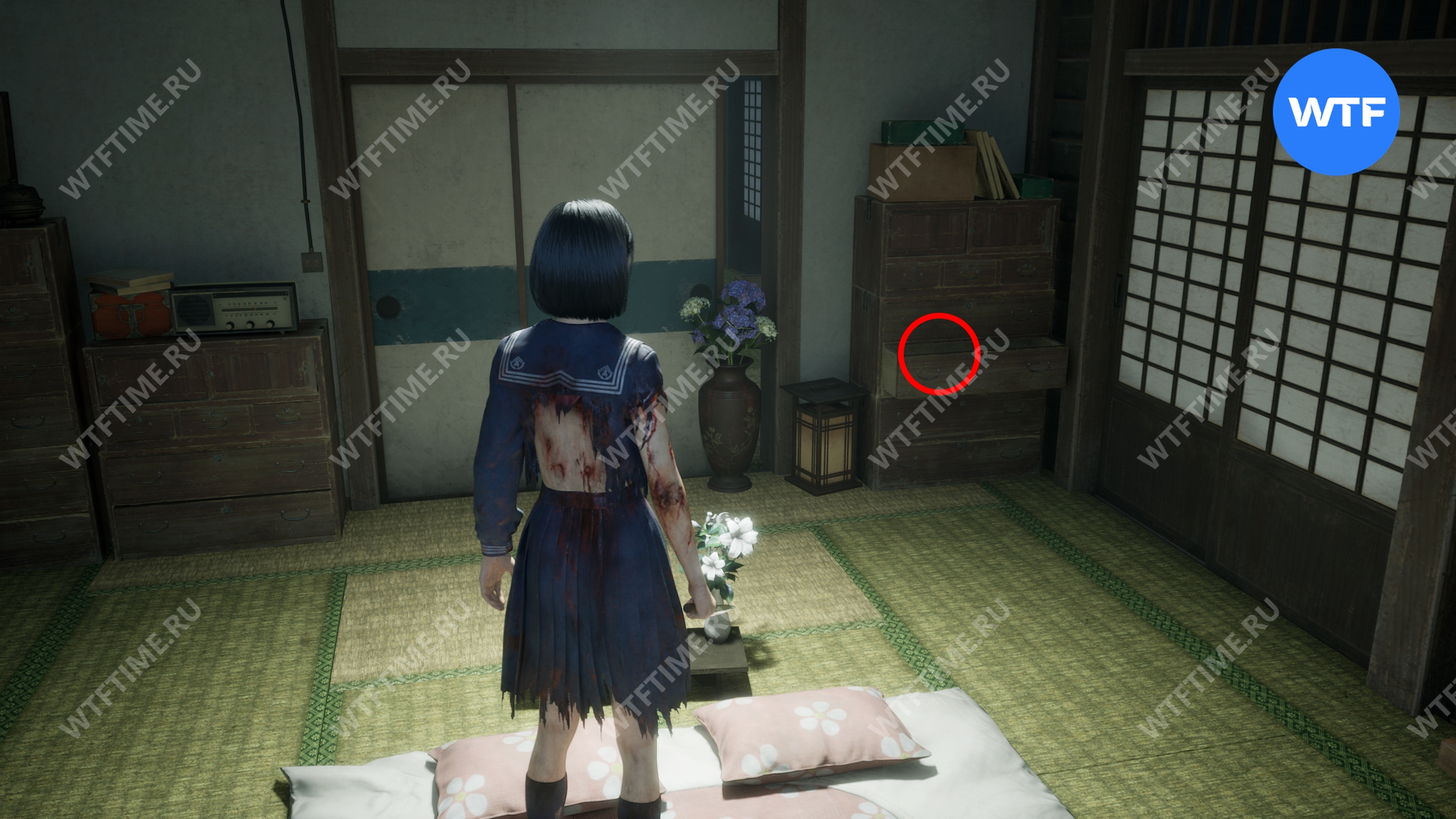 По сути эта локация состоит из трех различных уровней, каждый из которых является отдельной версией дома семьи Симидзу со своим наполнением. Исследуя эти уровни, вы должны найти 3 пластины для решения загадки «Моя комната», в которой лежит эмблема для доступа в область с боссом.