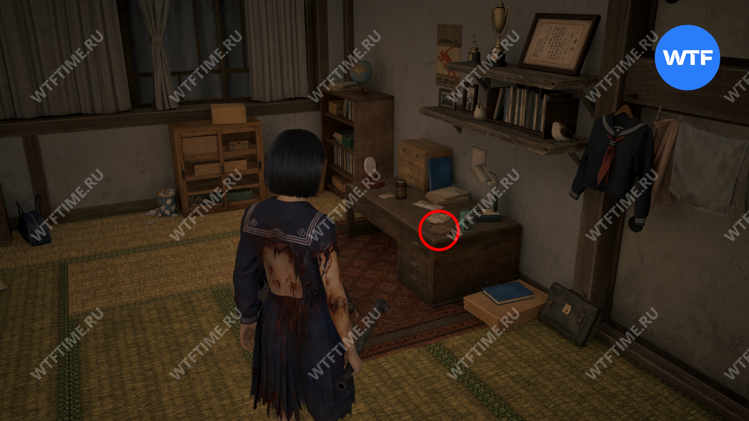 Затем идите в комнату Хинако к северу от точки сохранения. Вам нужно осмотреть шкаф в углу и открыть её дневник, лежащий на нижней полке. Внутри спрятан кусочек воска, который мы пристроим к делу позже.