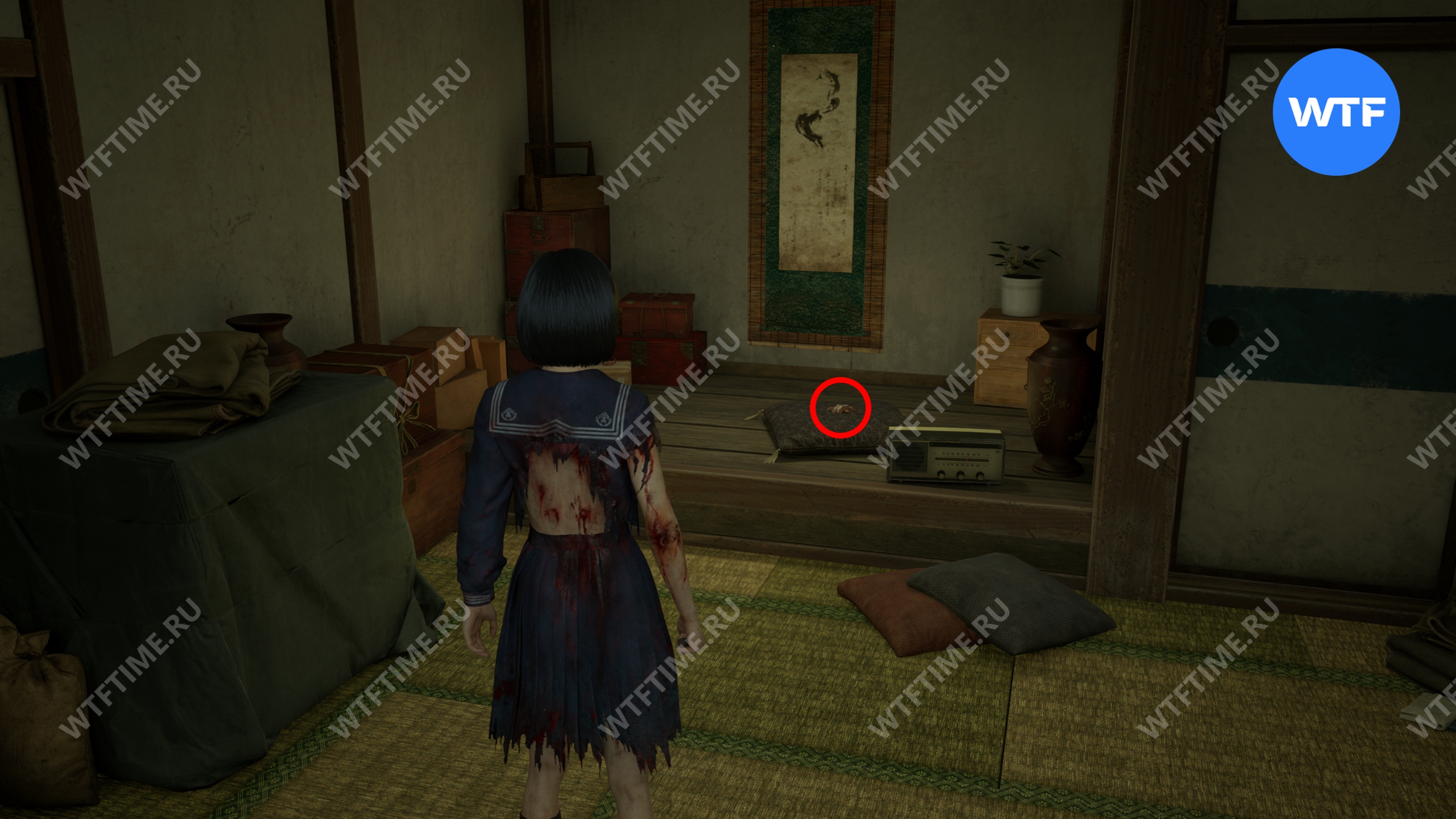 Еще одно подношение можно найти в северной части дома. В комнате, отмеченной на скриншоте ниже, на подушке в углу лежит «Сушеная туша».