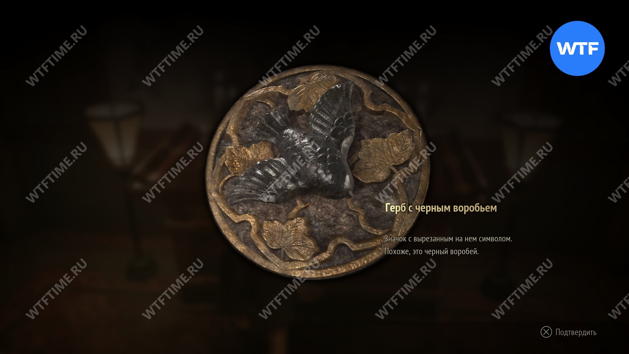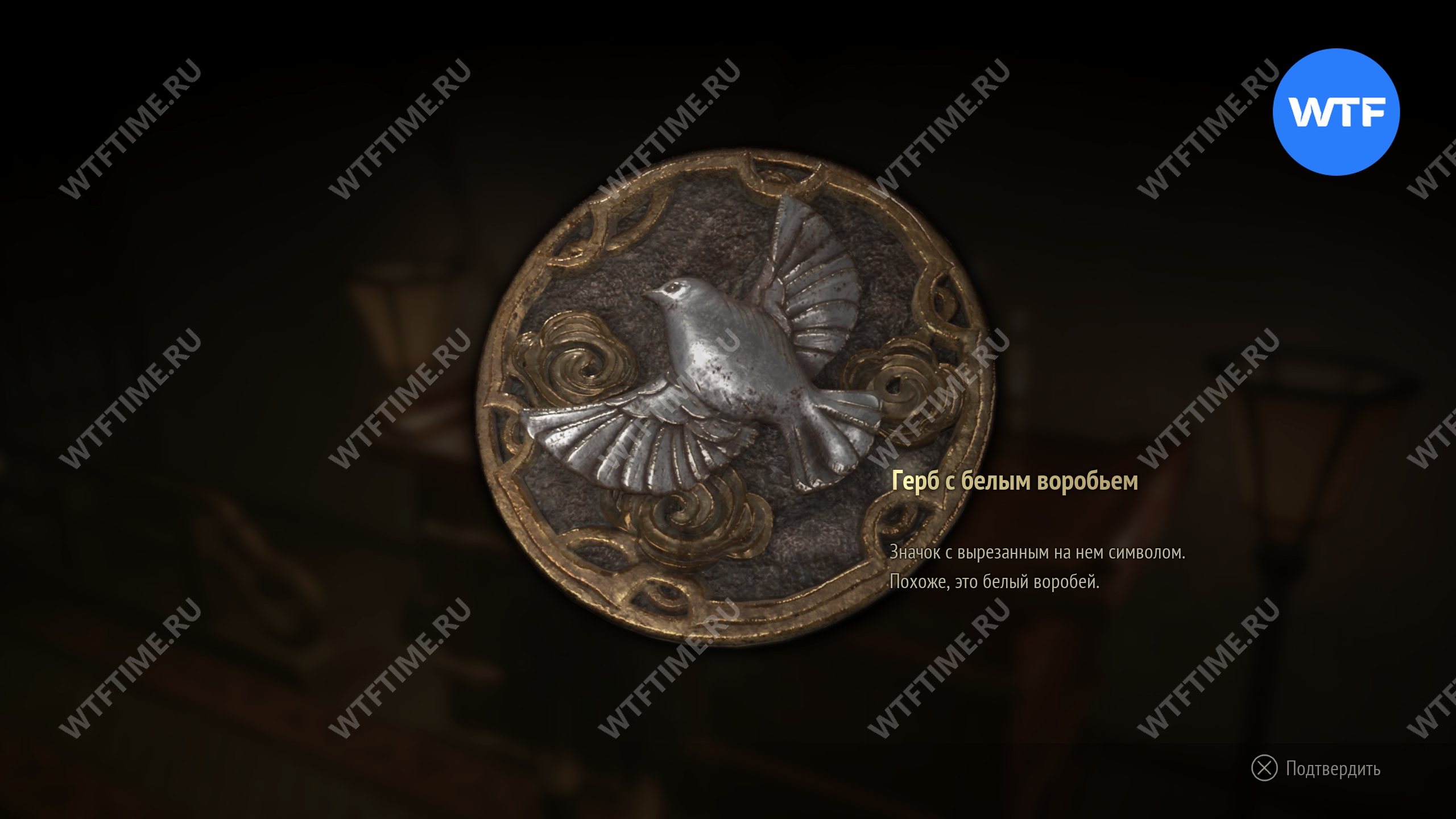 Затем разберитесь с чудовищем и идите к алтарю со шкатулкой в конце коридора. Внутри неё вы найдете герб с белым воробьем.