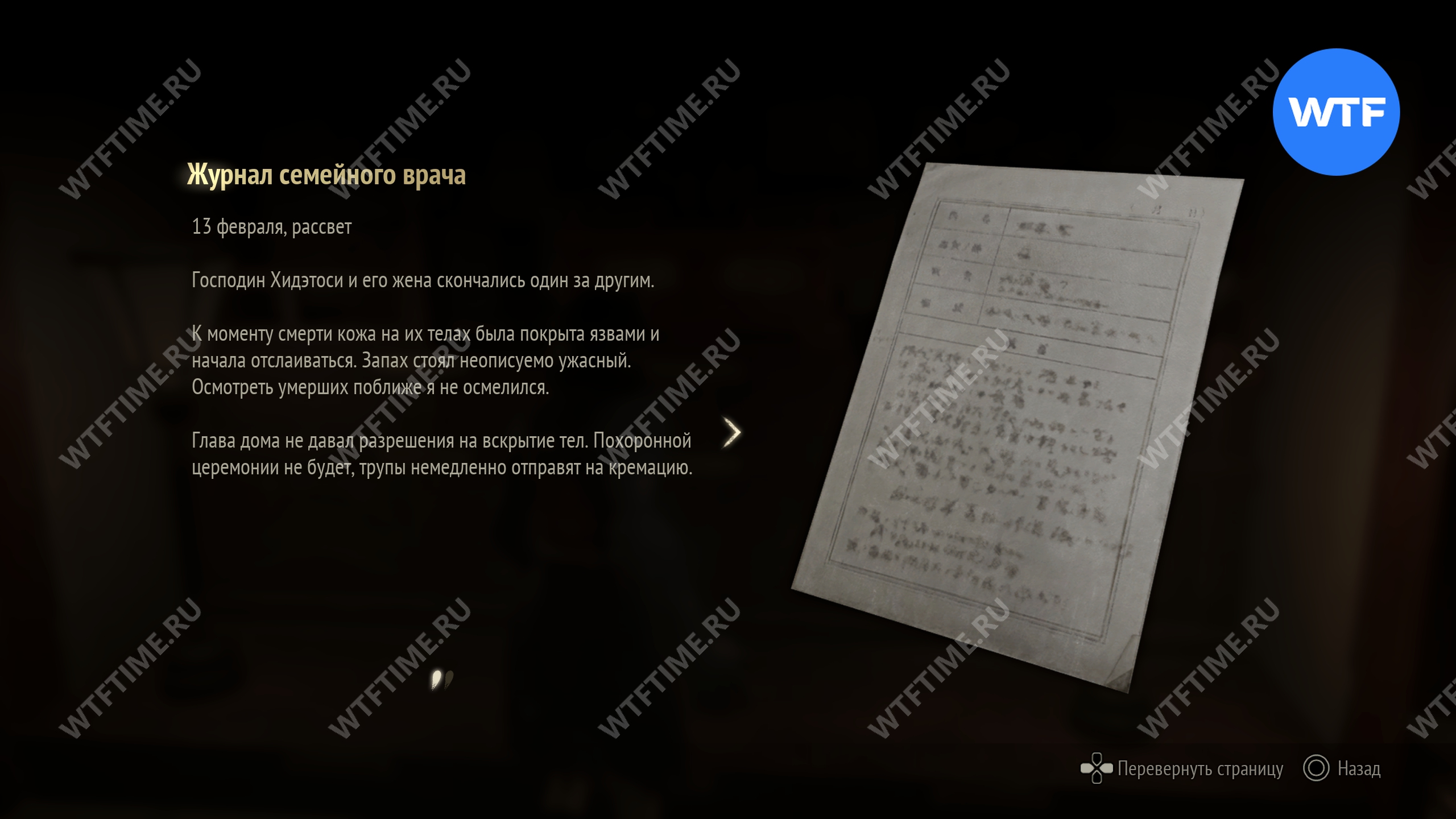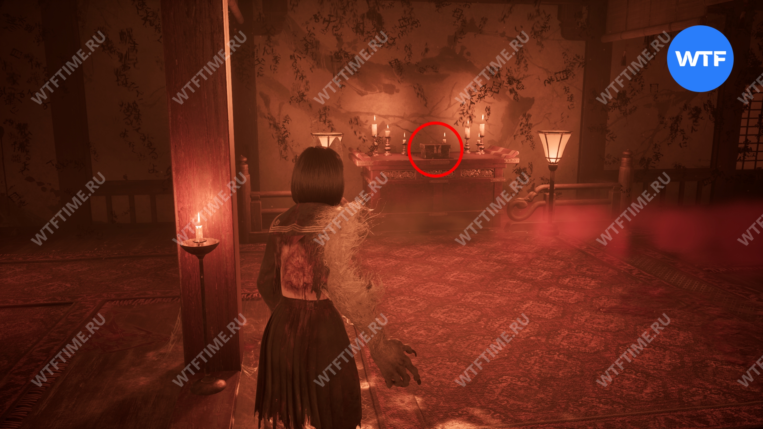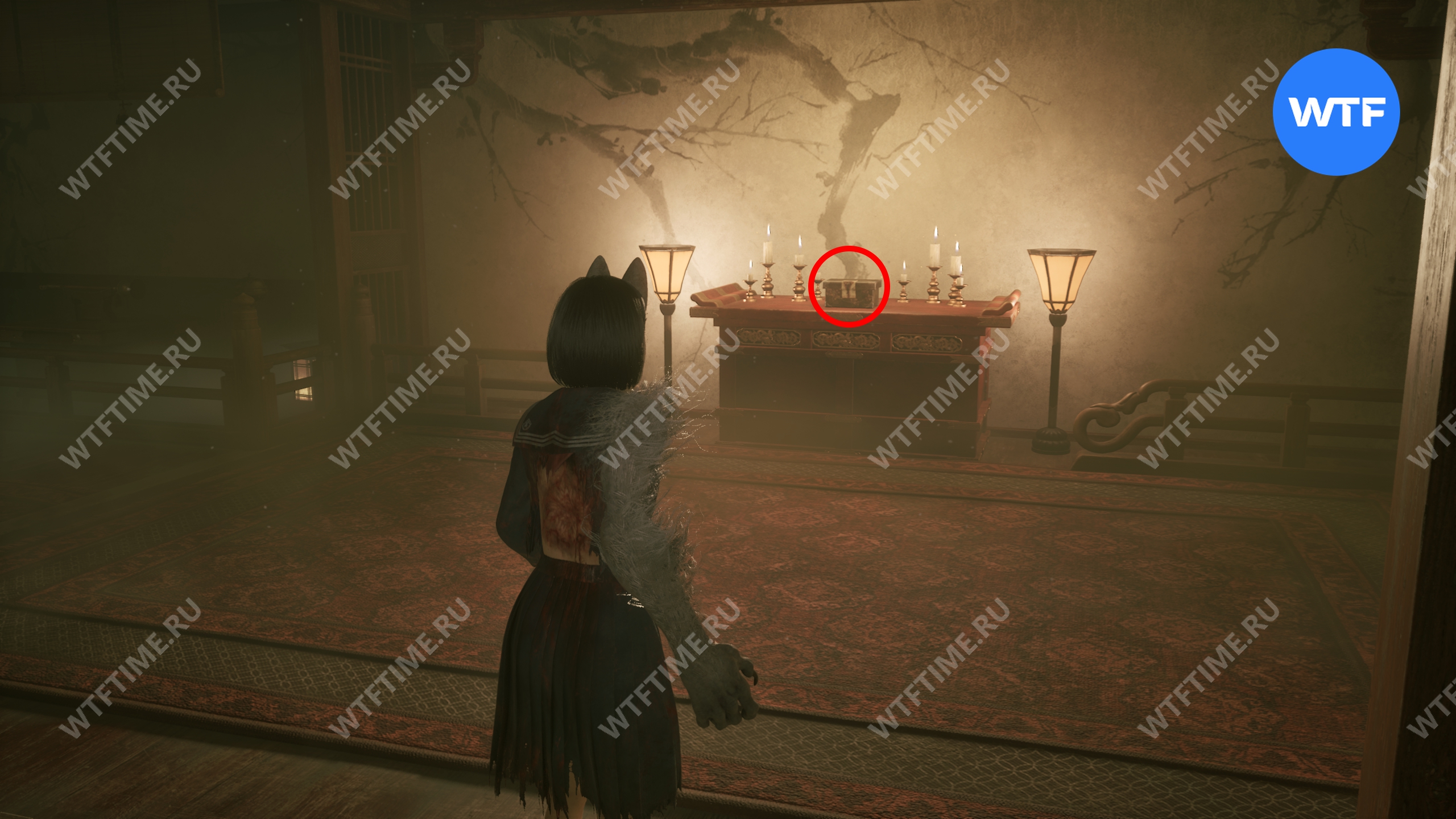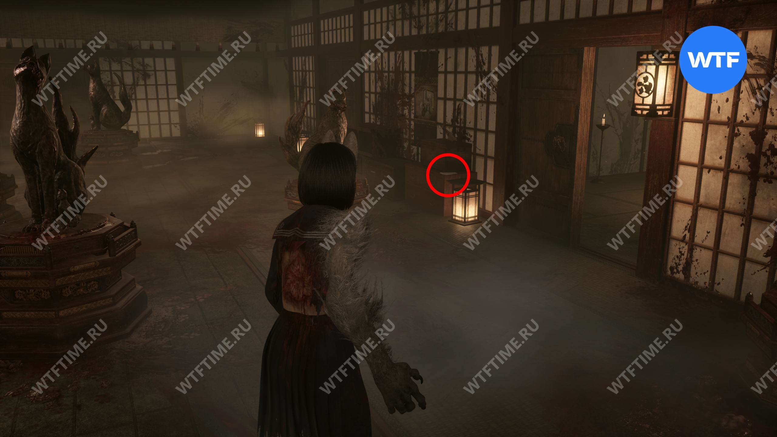 Чтобы начать исследование, пройдите через двери слева от фрески. Вы окажетесь в комнате с несколькими статуями лисиц. В дальней части у алтаря нужно подобрать Журнал семейного врача.