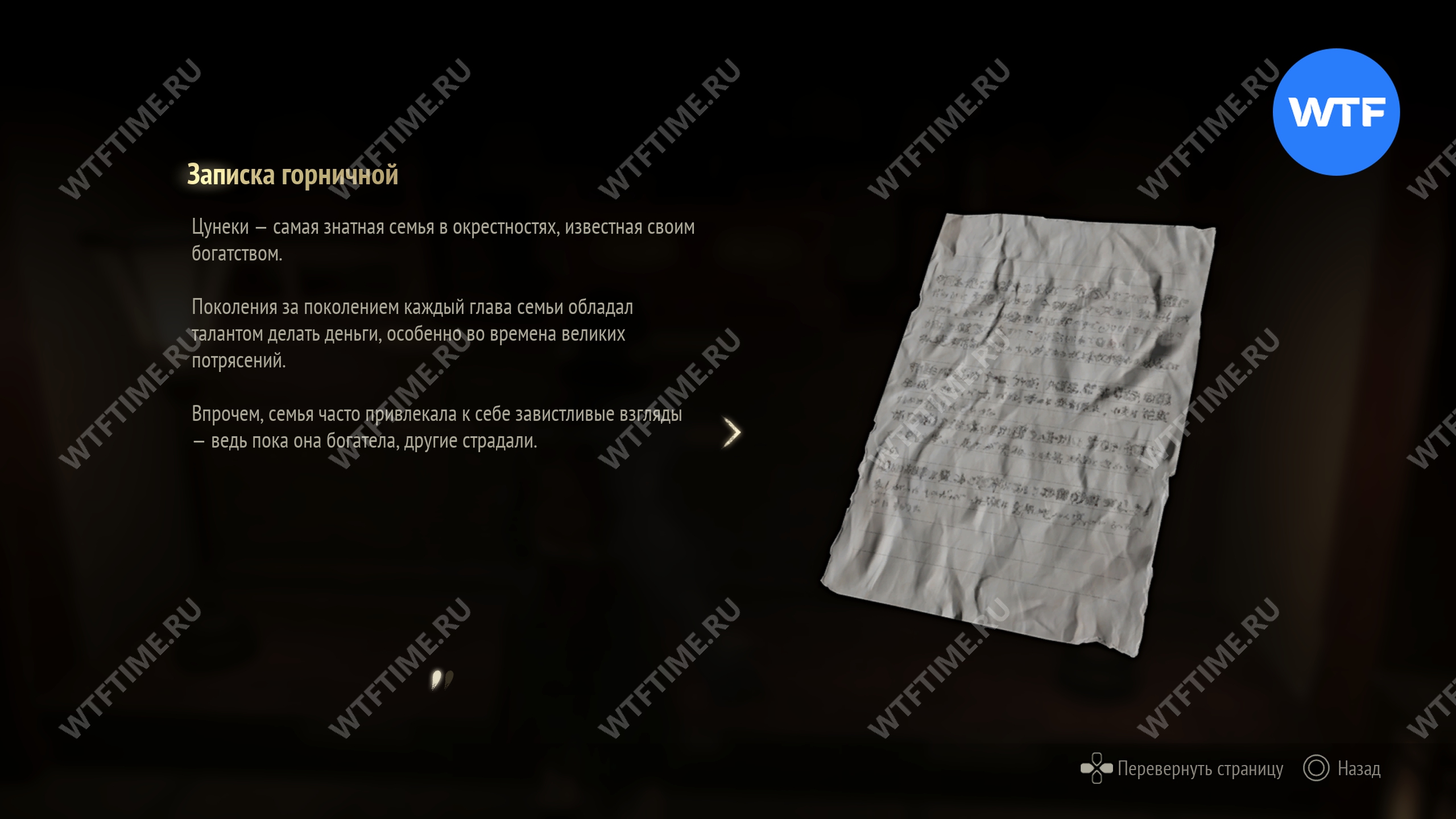 Теперь пройдите через дверь рядом со святилищем хокора (прямо напротив фрески с лисами). Это приведет вас в небольшую комнату, где у дальней стены будет лежать еще одна Записка горничной.