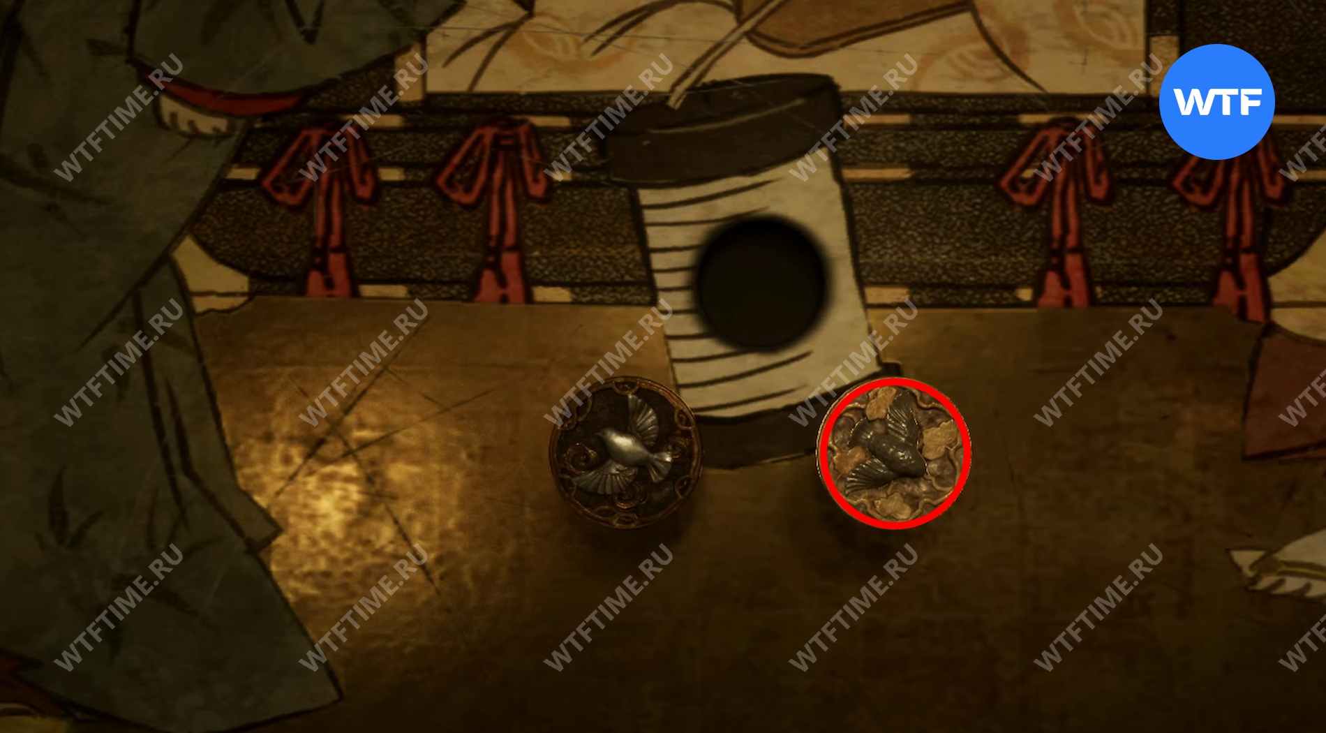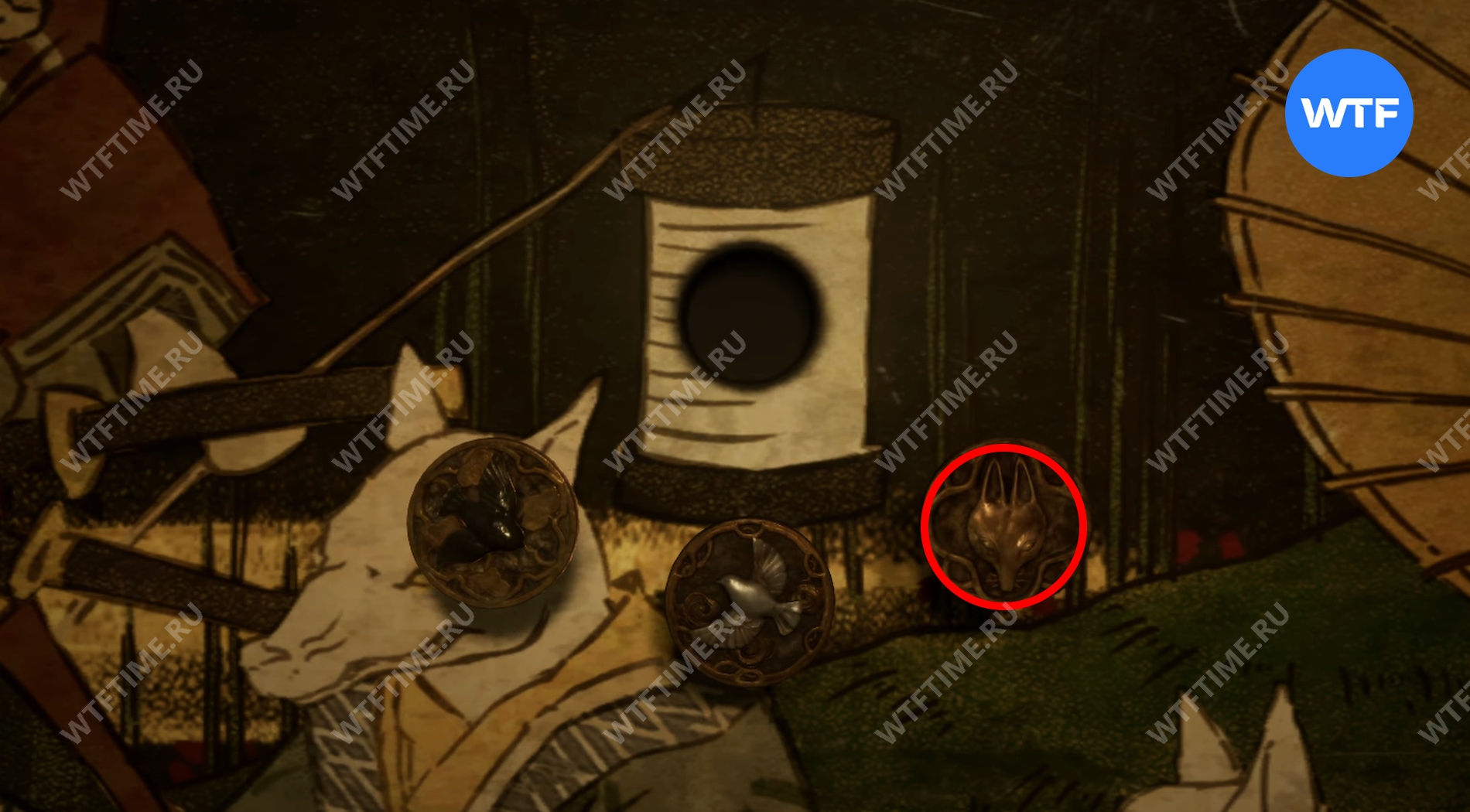 Чтобы решить загадку с настенной росписью, вы должны расположить три герба на фреске с лисами, ориентируясь на текст подсказки на свитках. Решение этой головоломки будет привязано не к уровню сложности, а к той концовке, условия для которой у вас на данный момент выполнены.