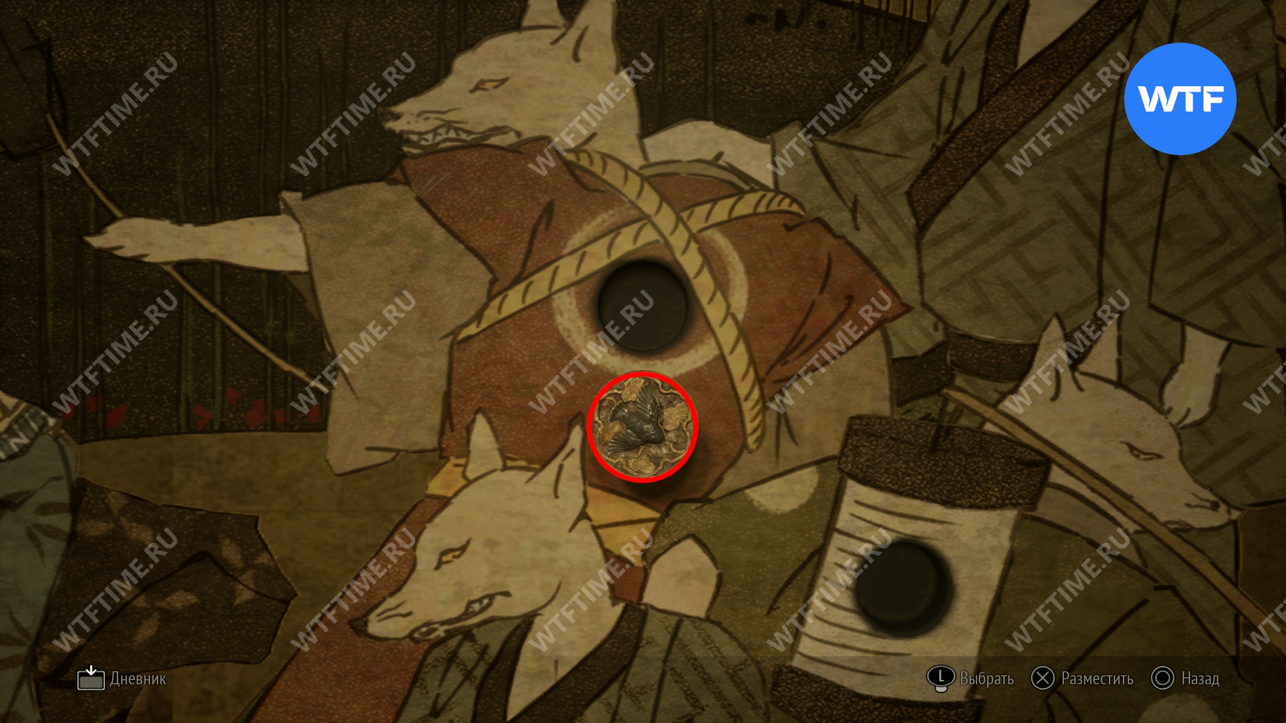 Теперь вам нужно пройти через дверь справа от фрески с лисами. Это приведет вас в комнату с большим количеством статуй. В ближнем правом углу здесь есть дверь с эмблемой Инари-сама, которую вы можете открыть при помощи броши. Идите туда и заберите дощечку эма со стола.