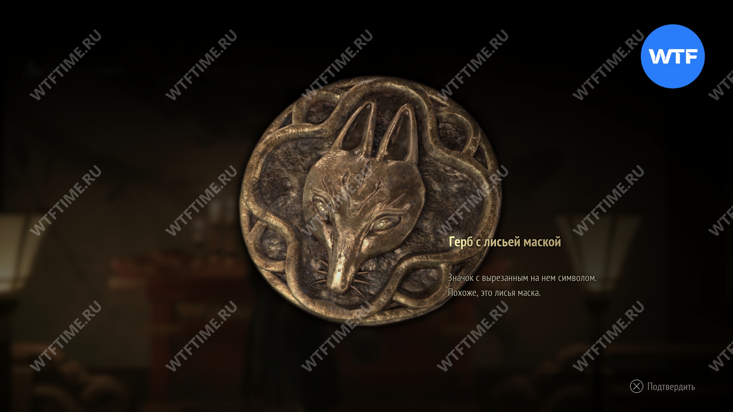 Вы попадете в большой зал, где вам нужно перебить всех врагов, чтобы в итоге добраться до шкатулки с гербом с лисьей маской.