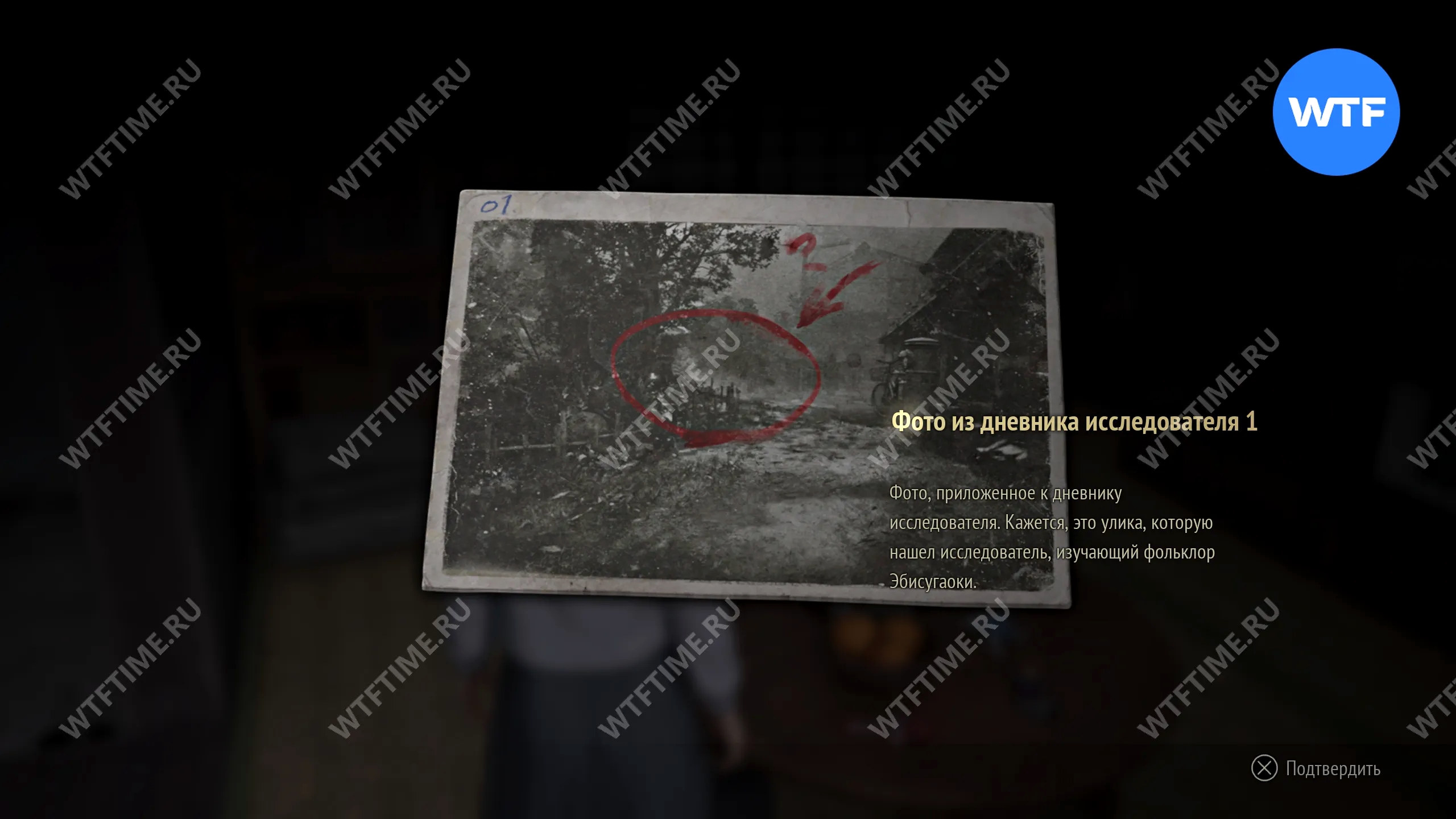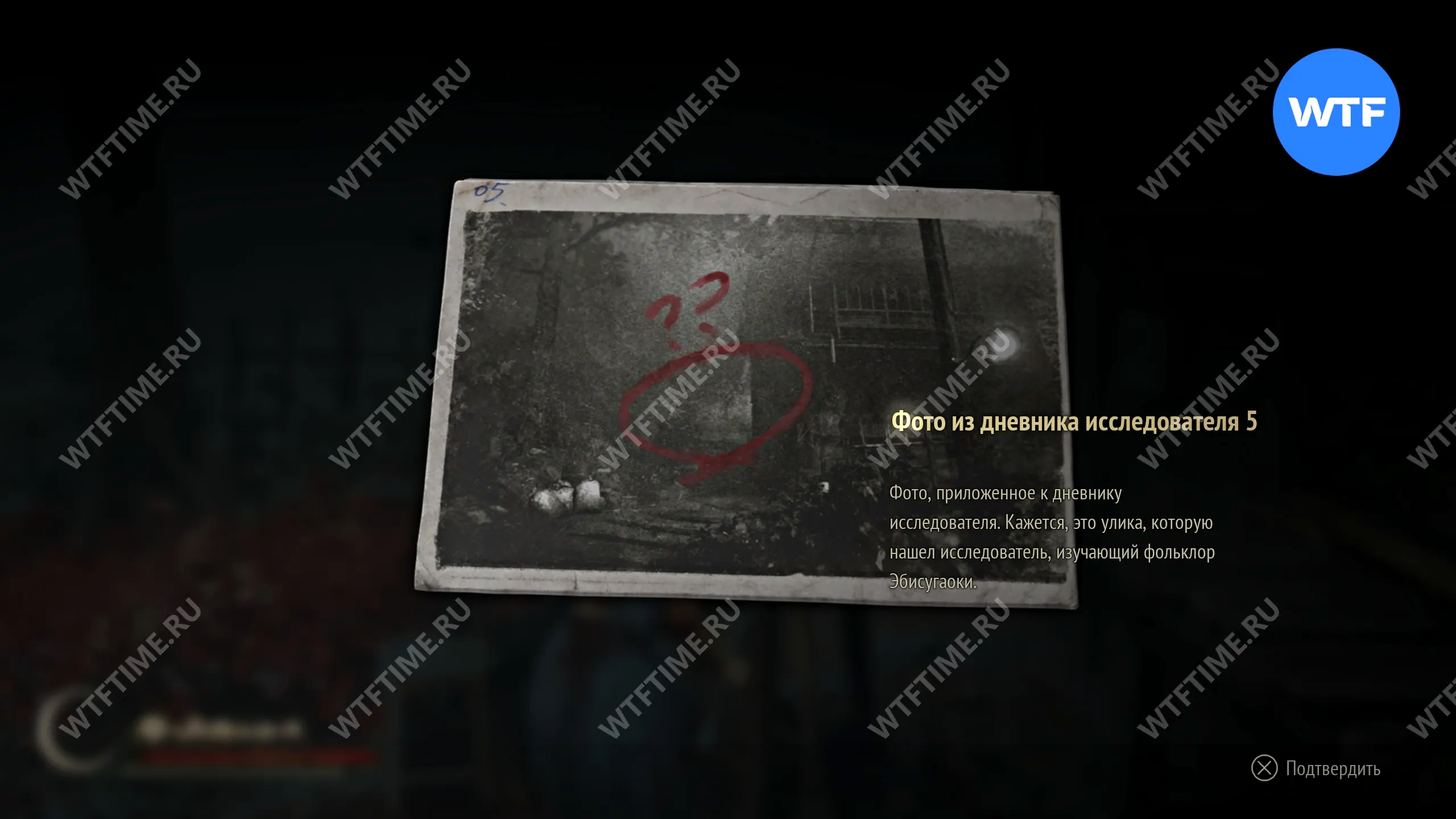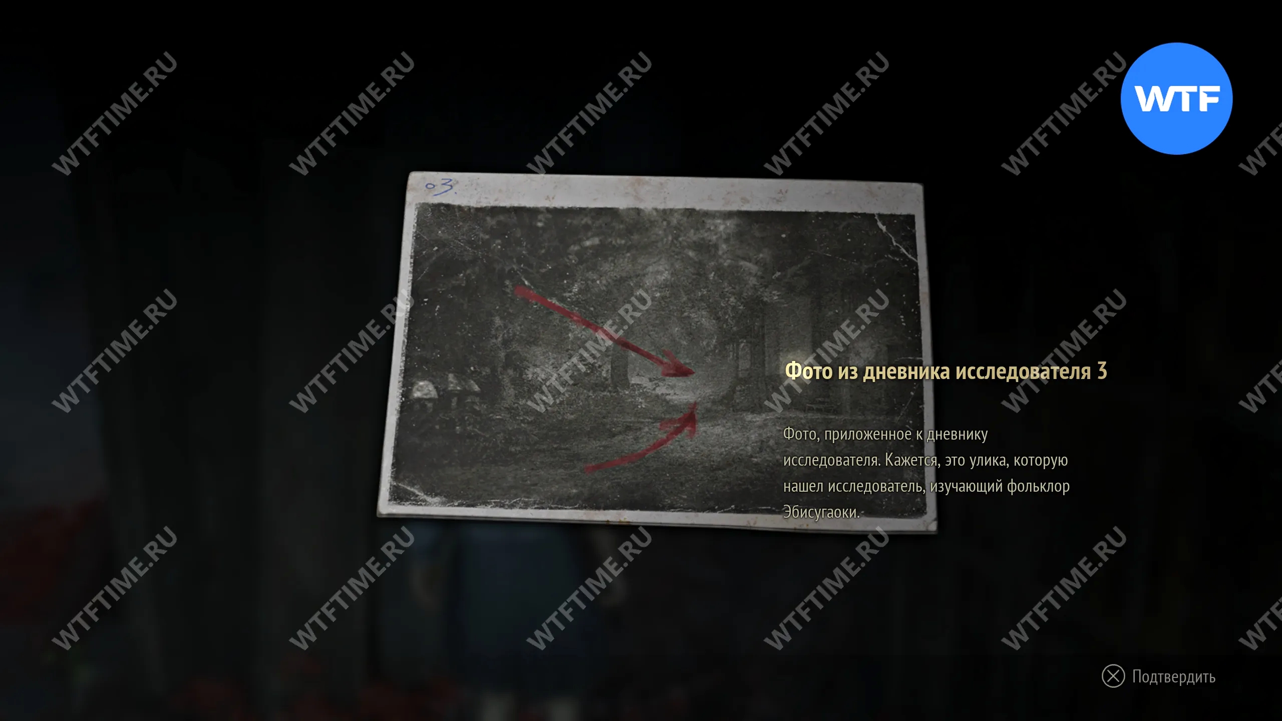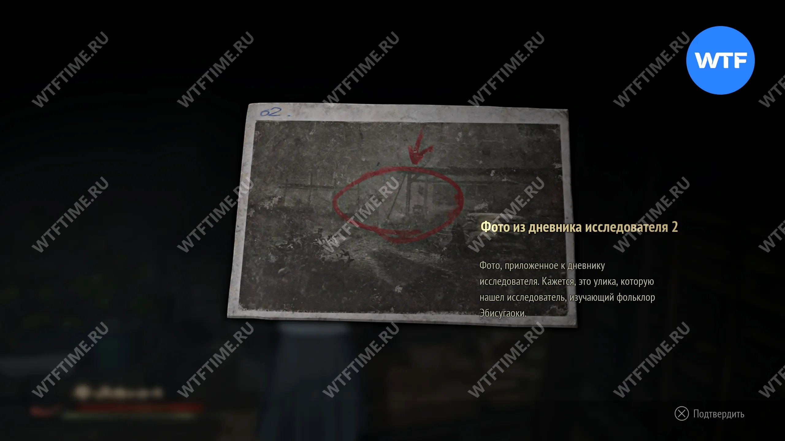 Во время второго визита в Эбисугаоку доберитесь до дороги к северу от супермаркета, где находится точка сохранения. У дома напротив святилища хокора (немного левее, если смотреть по карте) на деревянном ящике лежит документ «Фото из дневника исследователя 2».