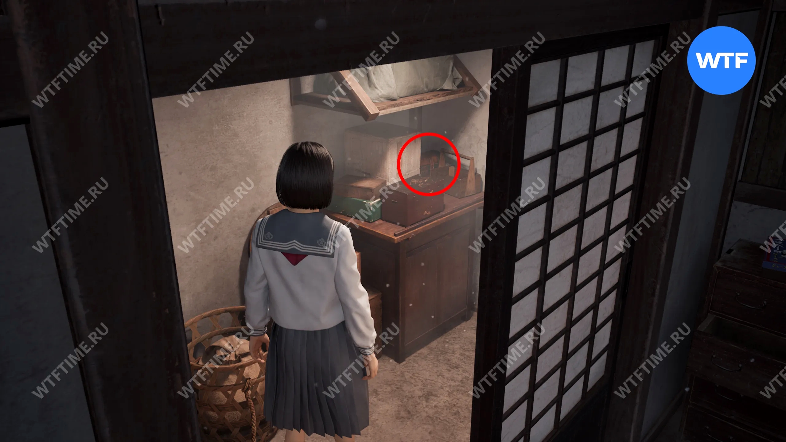 Спуститесь на первый этаж и идите на кухню. В кладовке, куда можно из неё попасть, на столе стоит один из таких сундучков. Внутри него лежит выцветшая кукла-невеста, которую нужно отнести к статуе Дзидзо в качестве подношения.