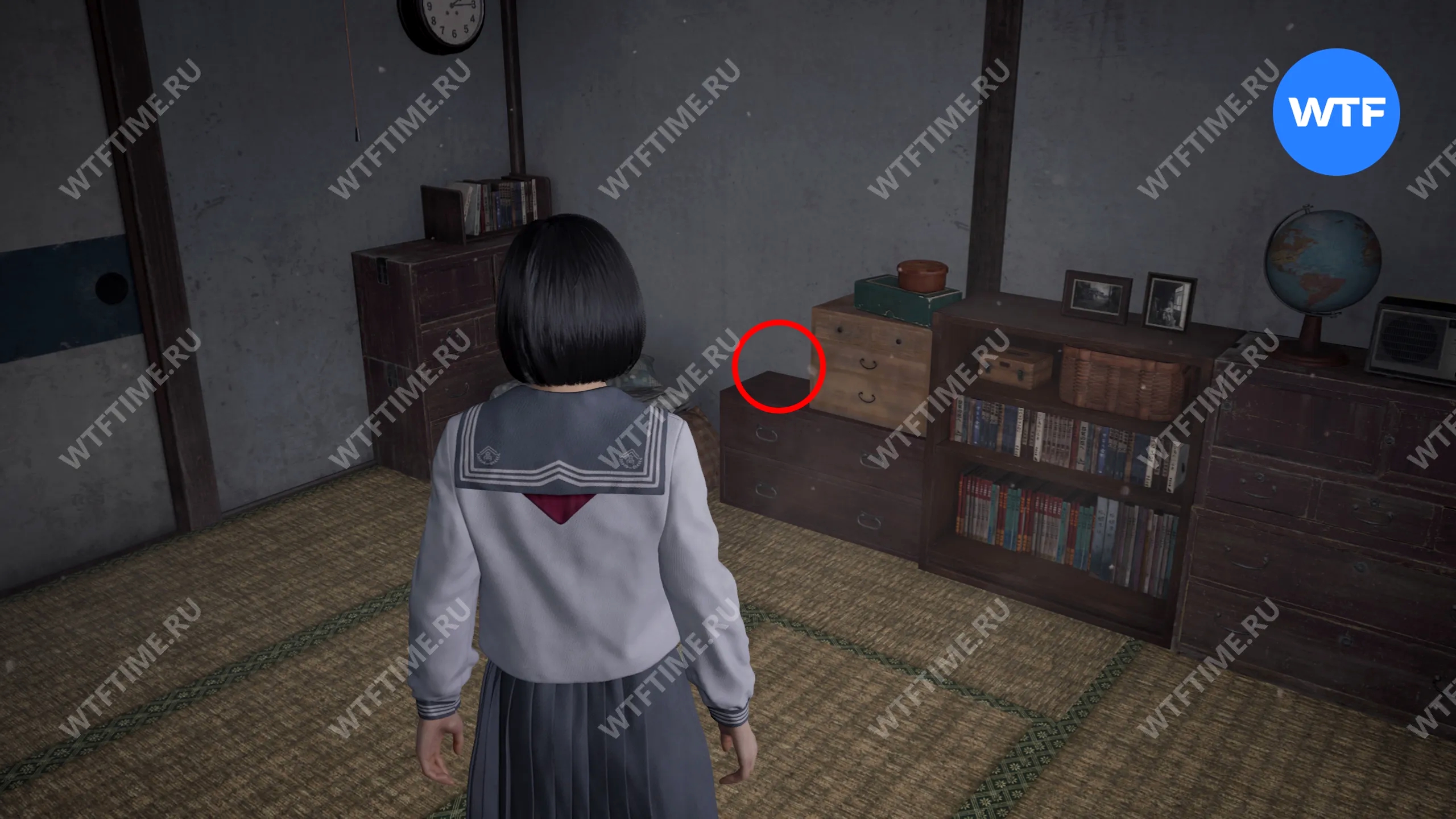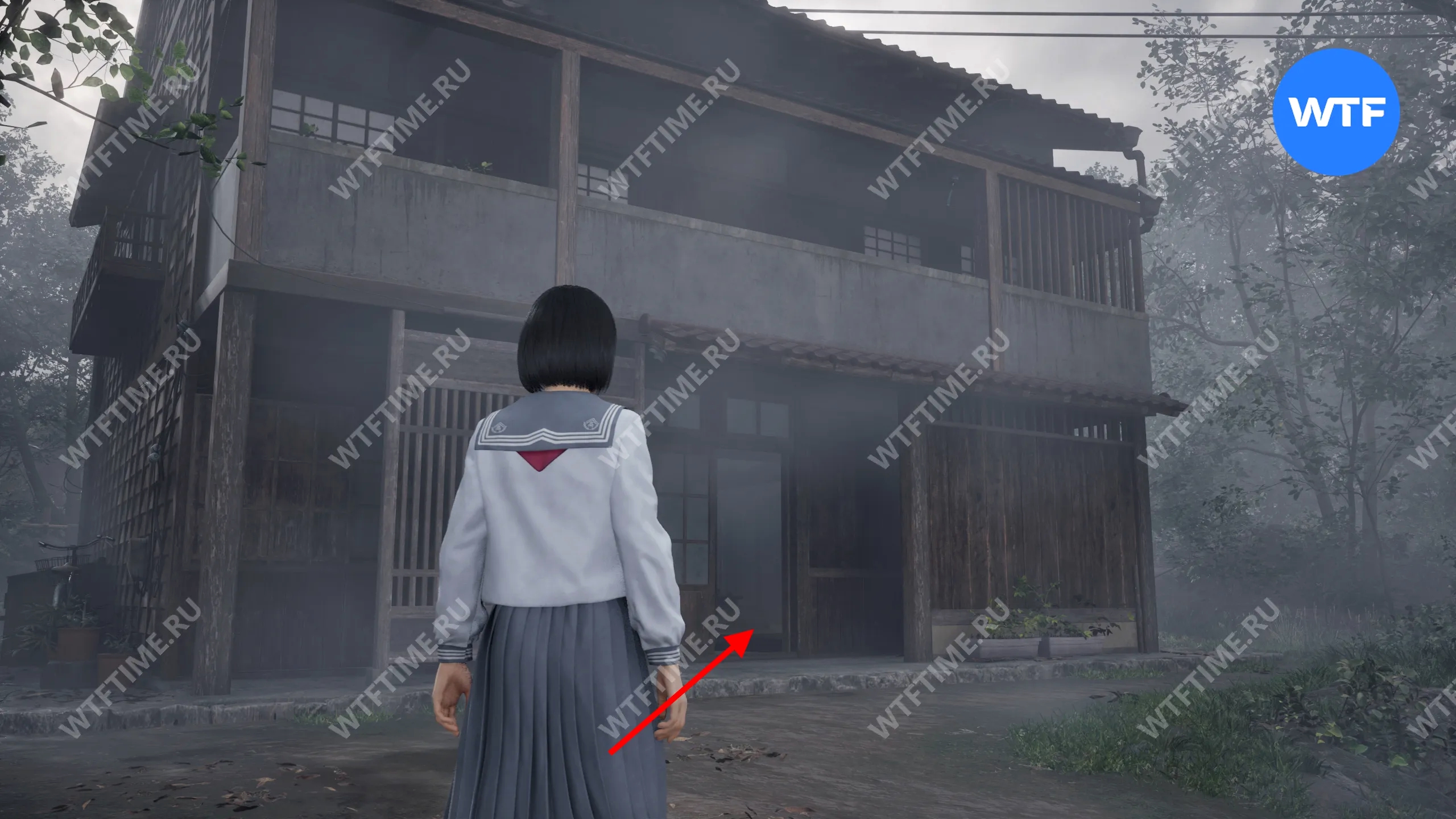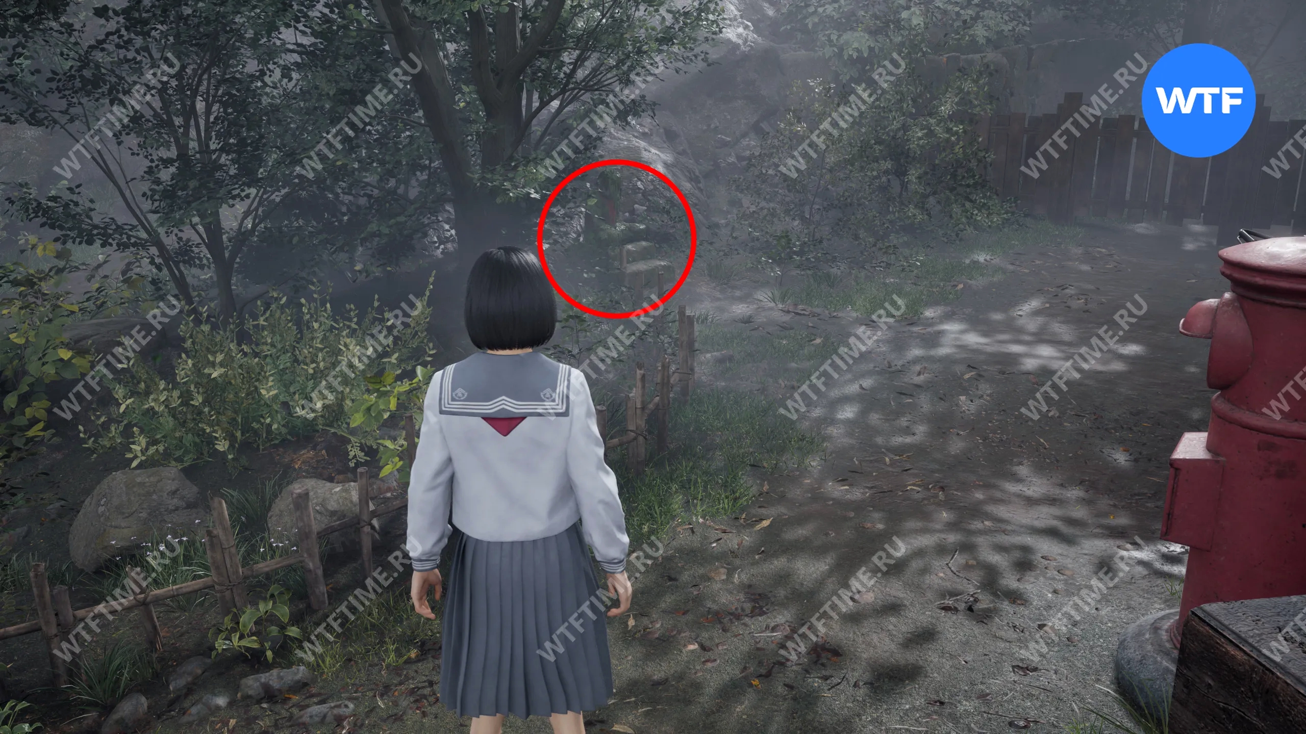 Место, показанное на фотографии, приведет вас к первой статуе Дзидзо. Чтобы туда добраться, выйдите из дома и спуститесь по горе к следующему зданию. Статуя находится во дворе напротив красного почтового ящика, под большим деревом.