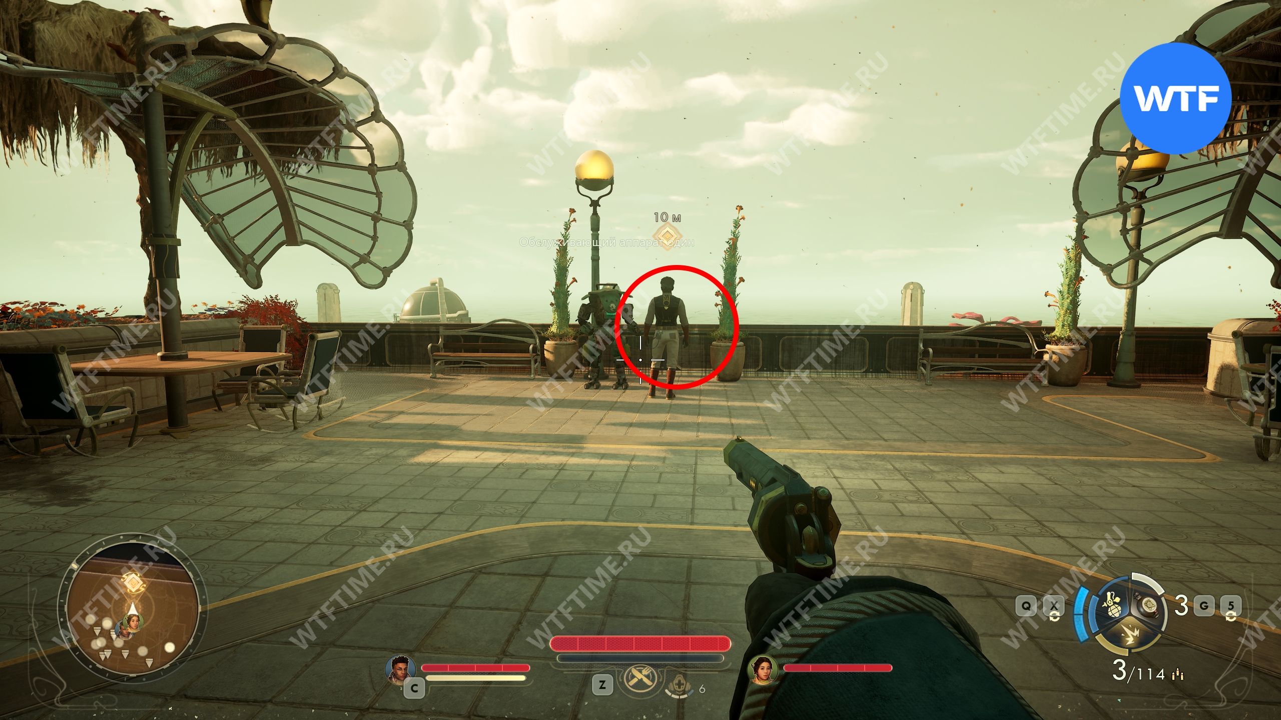 Войдя в Центр ремонта автоматонов идите по дороге вперед, а затем сверните направо в главный двор. Там вы встретите маршала Донельсона. Если расспросить его о проблемах, он упомянет об ученой по имени Дельфиния Брайант, которая может дать вам задание «Защита от миазмов».