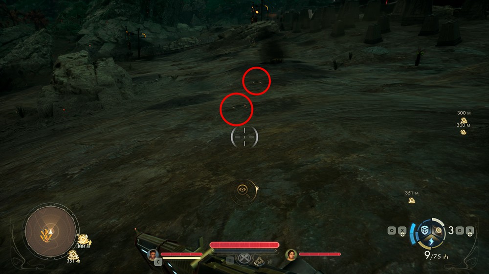 Если нужных навыков у вас нет, то просто очень внимательно смотрите себе под ноги. Мины можно заметить по небольшим светящимся огонькам в земле. Они срабатывают, если вы проходите рядом.