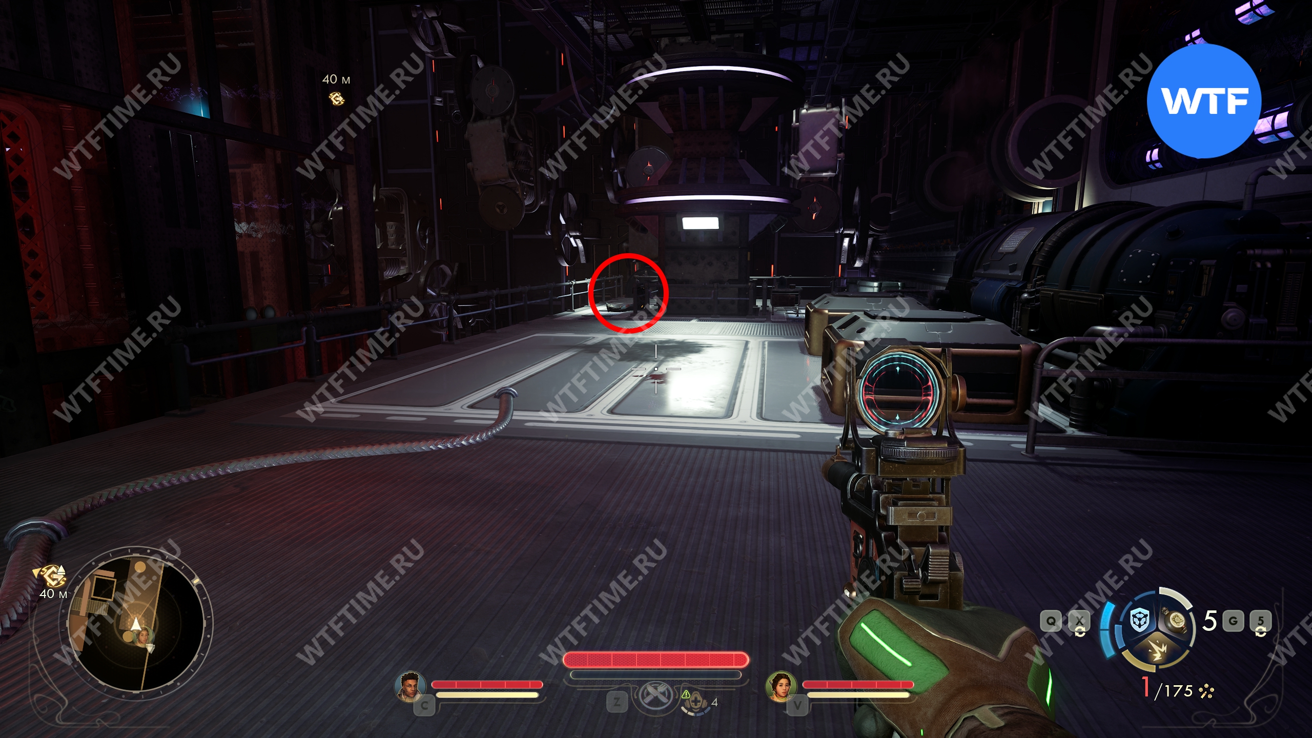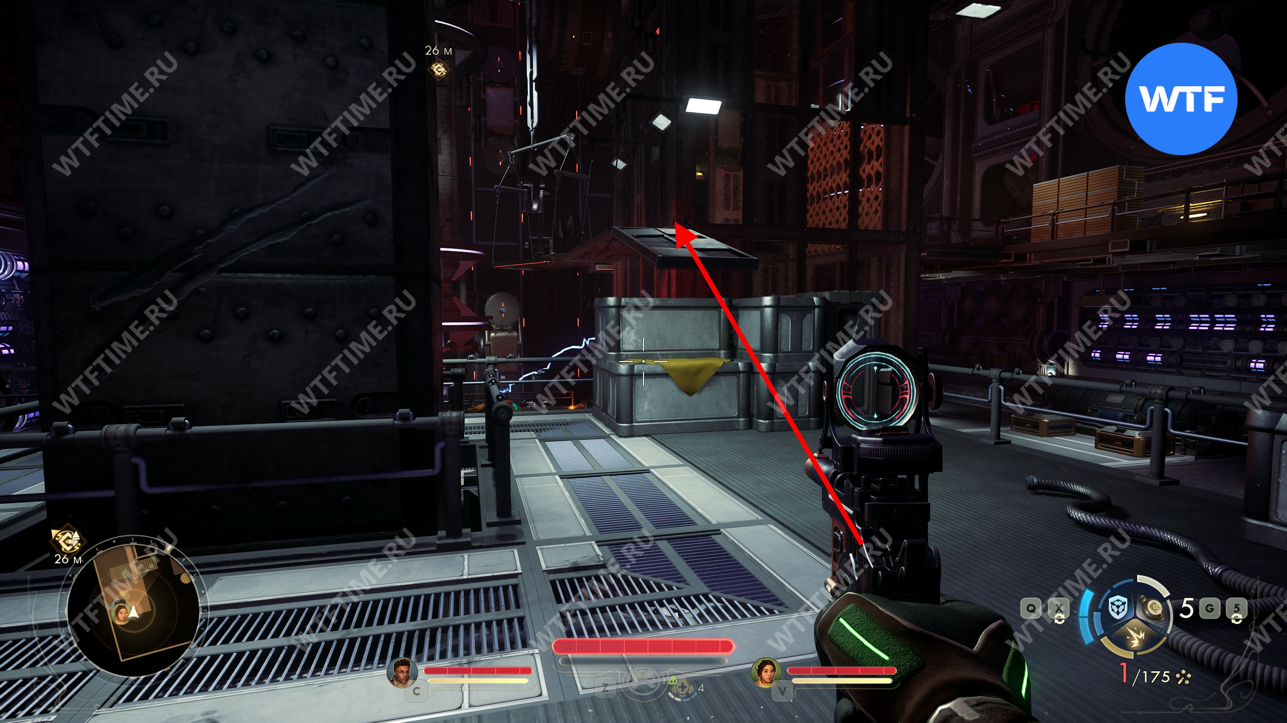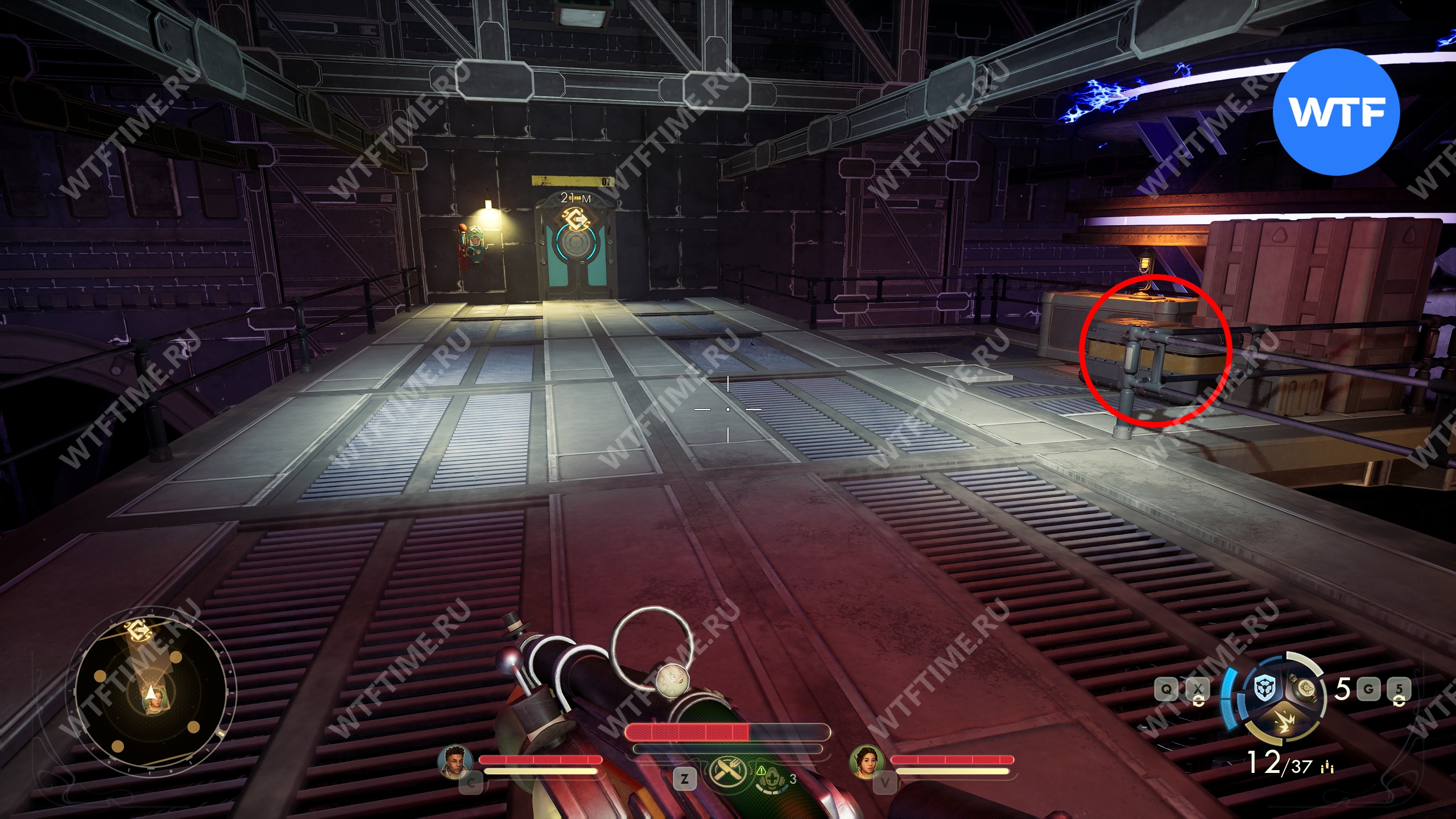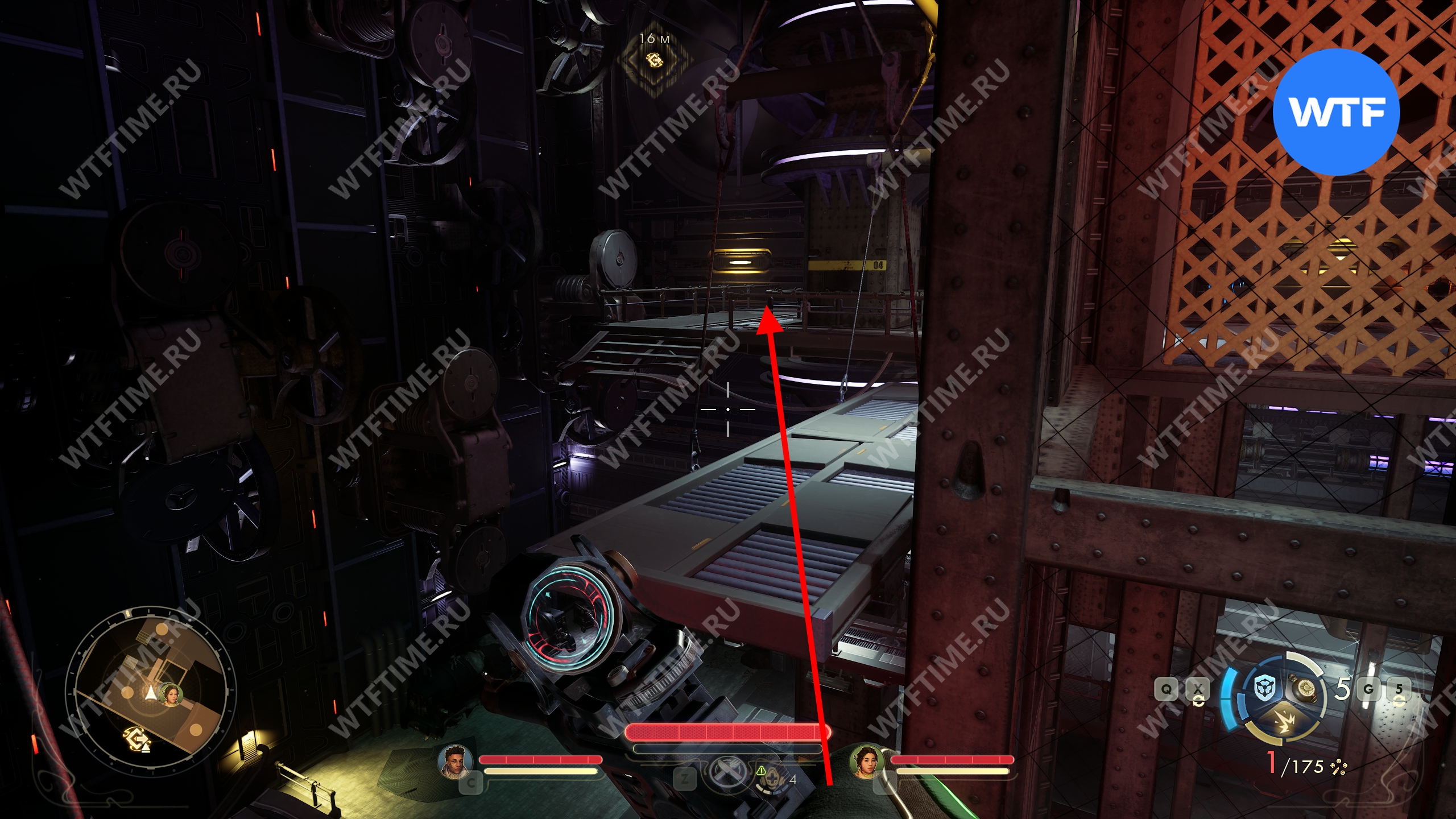 За следующим пропуском нужно отправиться на шестой уровень станции, но по пути рекомендуем сделать одну остановку. От предыдущего тела вернитесь немного назад к лифту и перепрыгните на другую сторону платформы.