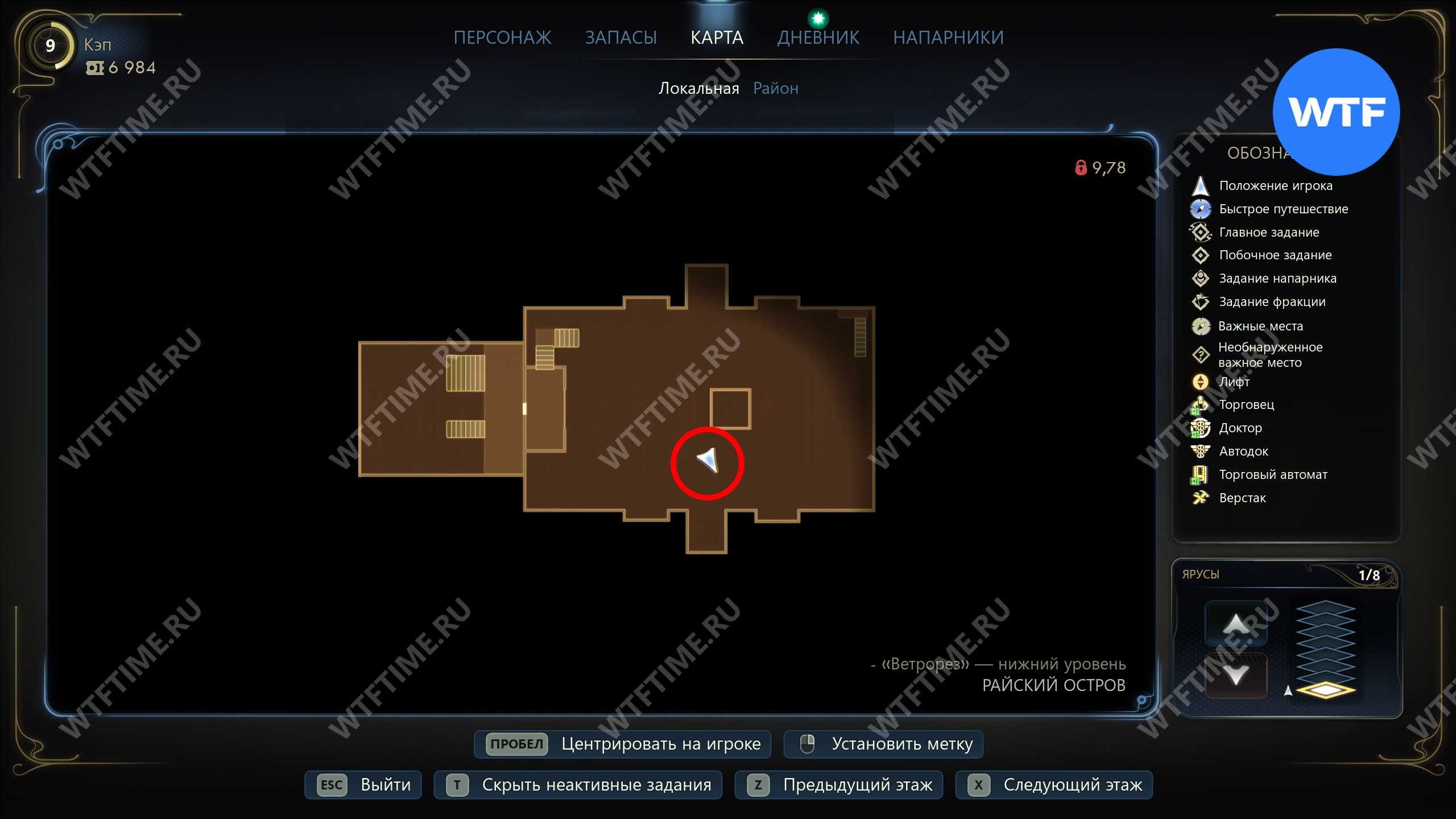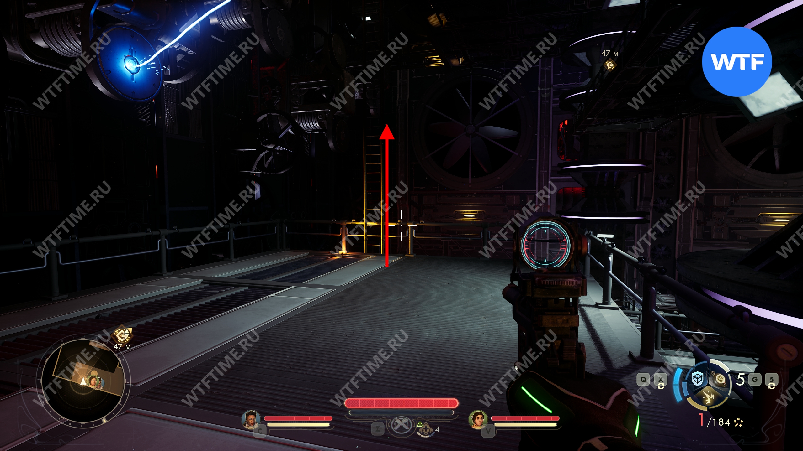 От стола с карточкой идите вперед, поднимитесь по лестнице, а затем поднимитесь еще выше по лестнице справа. Это приведет вас на шестой уровень, где у сломанного лифта можно найти тело с оружейным пропуском.