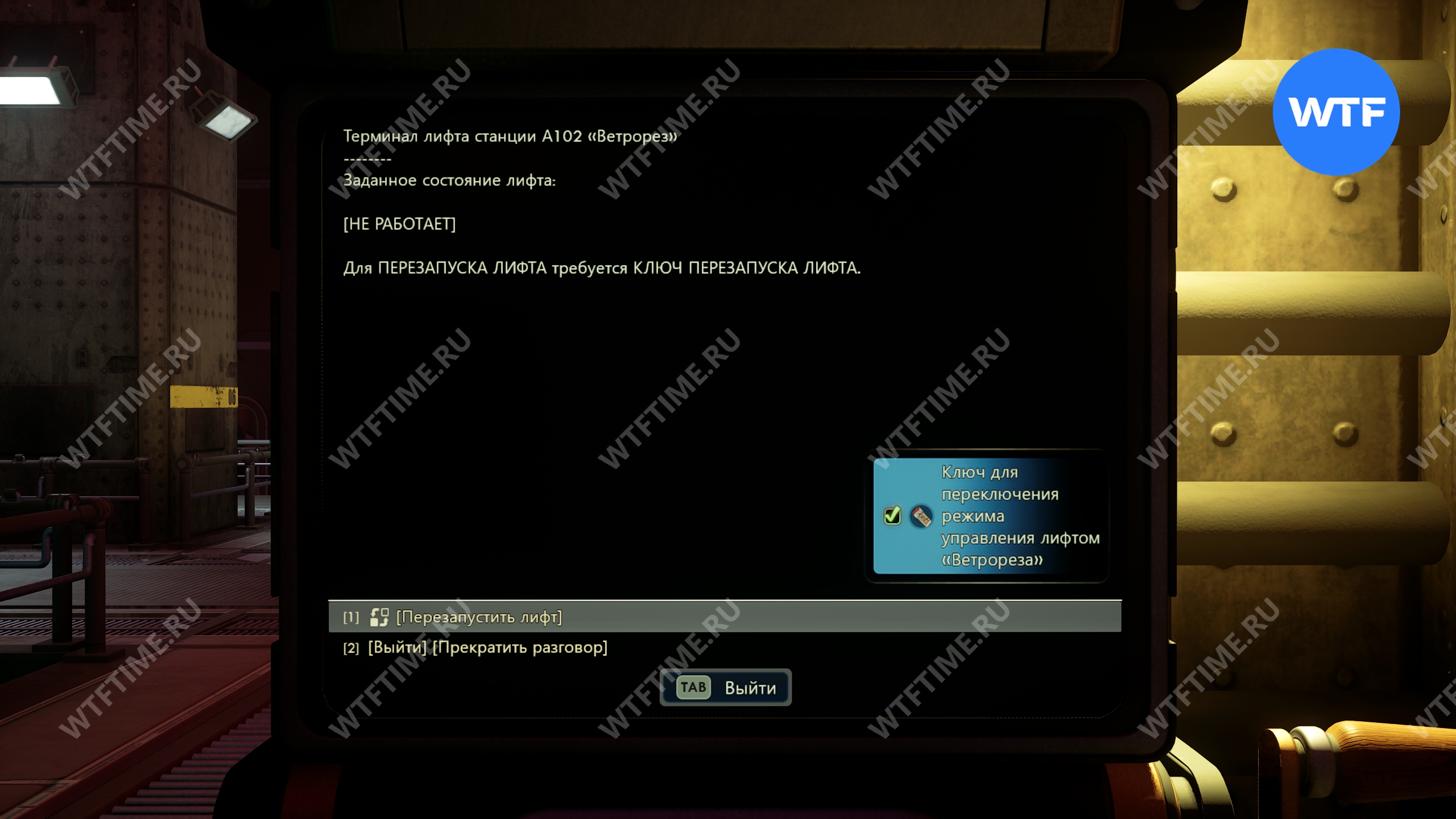 С предыдущего тела вам также нужно забрать ключ для переключения режима управления лифтом «Ветрорез». Используйте его на терминале слева, чтобы перезапустить лифт.