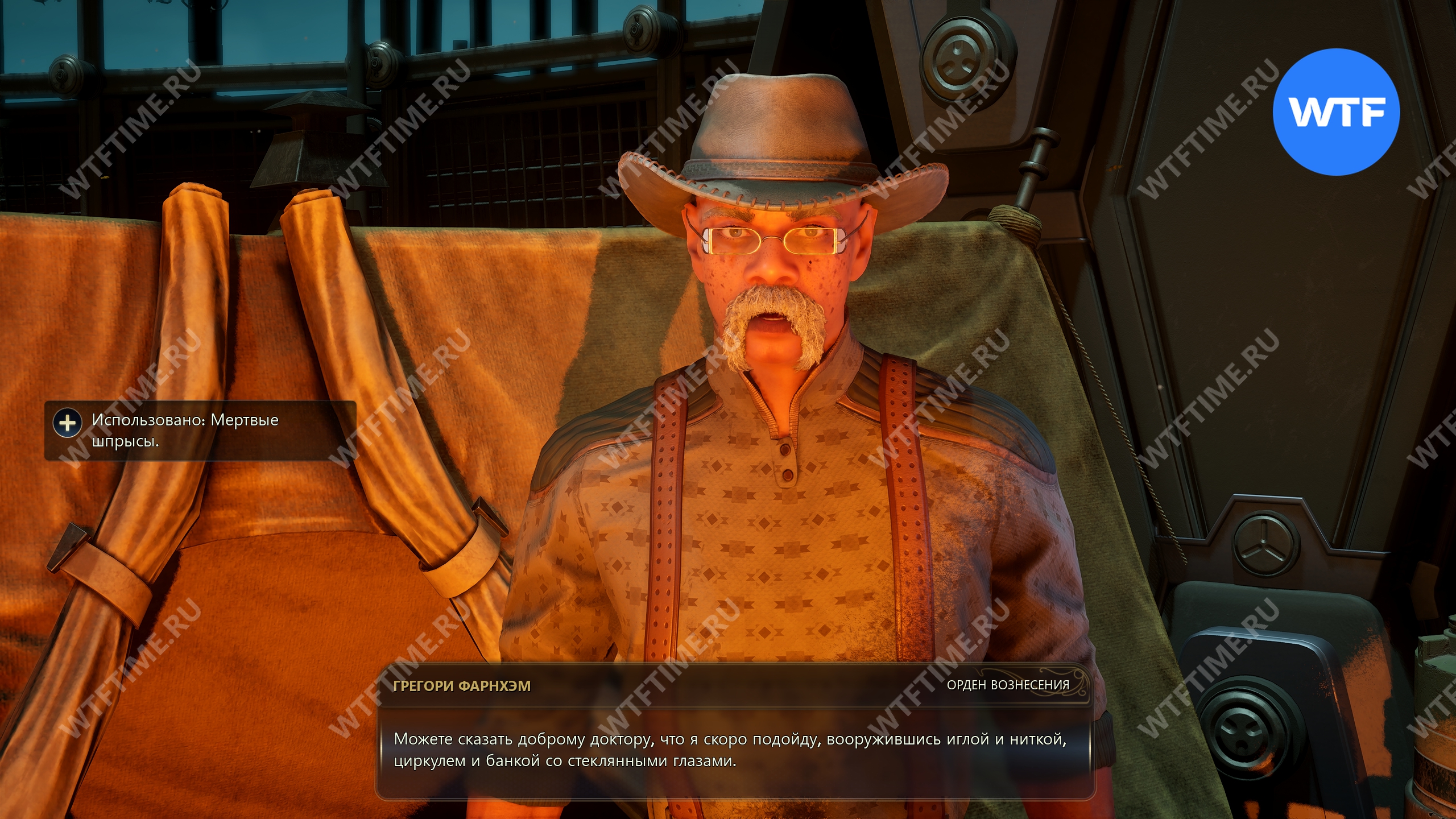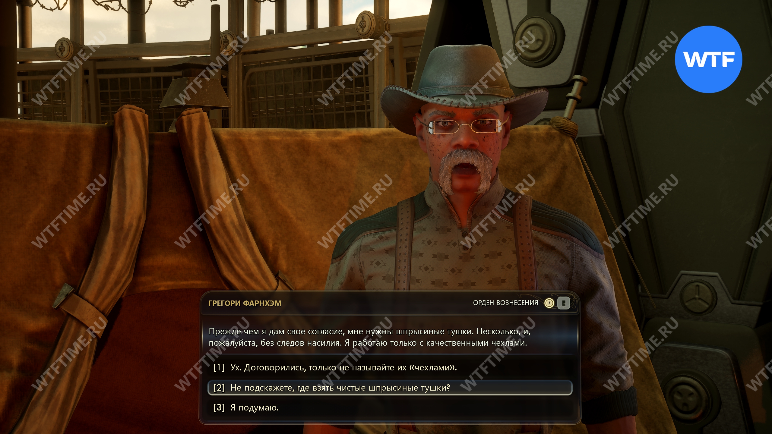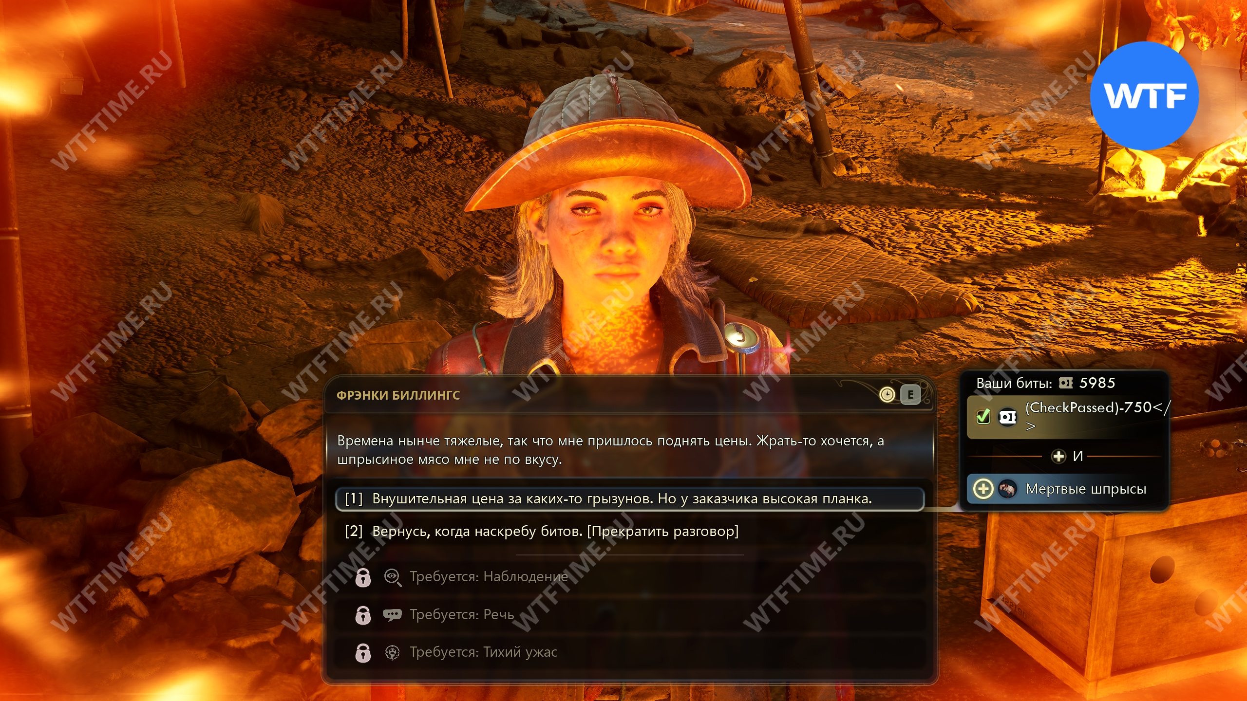 Как бы вы ни построили диалог, он в любом случае потребует принести ему шпрысиные тушки (даже при использовании навыка [Медицина 5]). Спросите, где их искать, чтобы узнать о местном зверолове Фрэнки Биллингс.