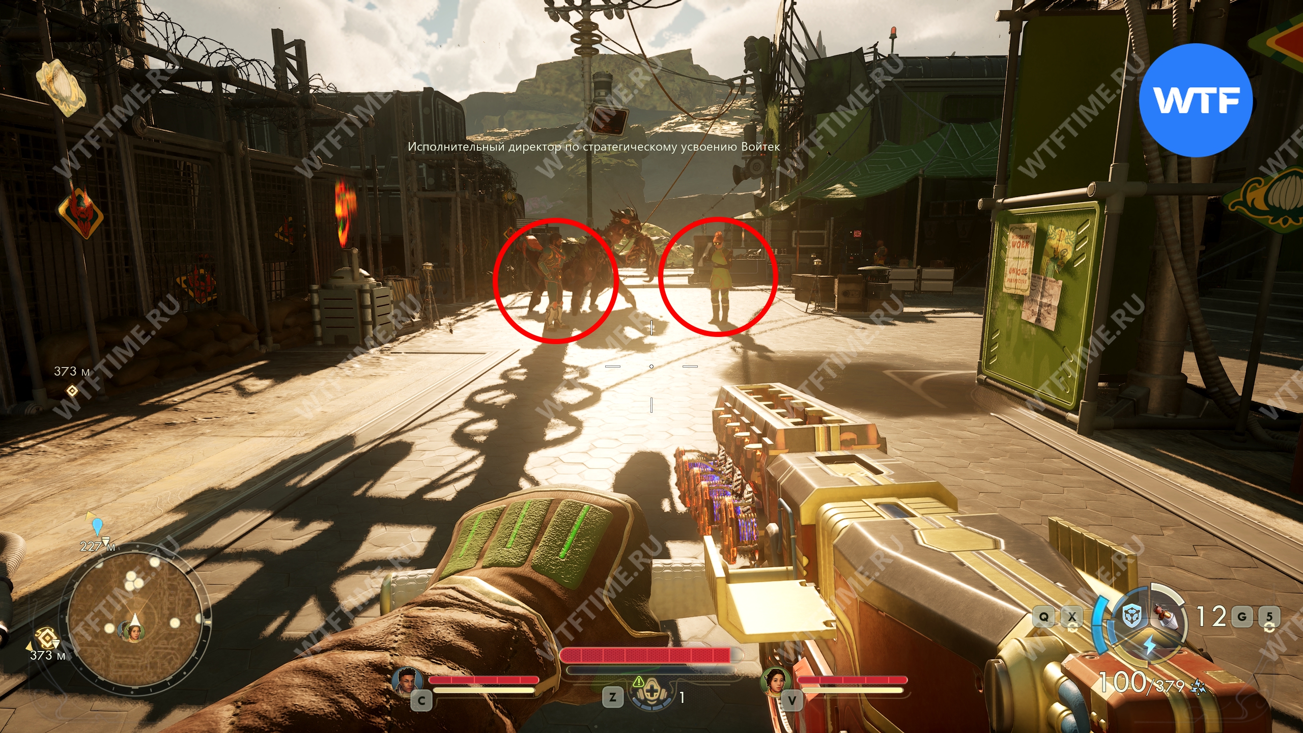 Полечитесь и запаситесь боеприпасами, так как впереди вас ждет сложный бой. Мы также рекомендуем изучить ассортимент торговца Бонни Фронтовая Зазывала в здании справа и купить все, что вам нужно.