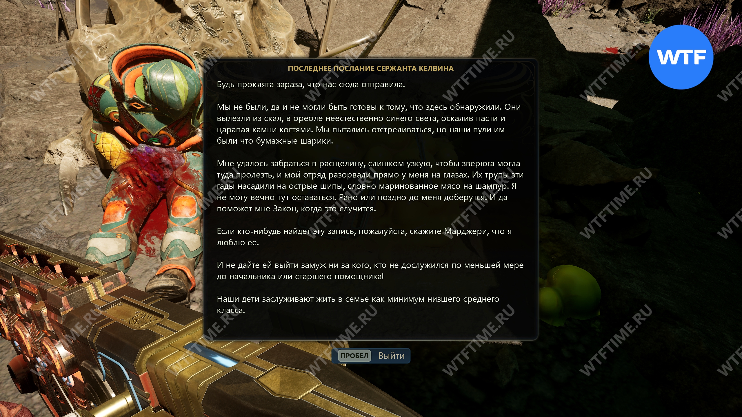 Если хотите узнать больше о том, что произошло в гнезде и откуда там столько трупов, то после входа держитесь левее, чтобы найти датапад возле тела сержанта Келвина. На нем записано его последнее послание.