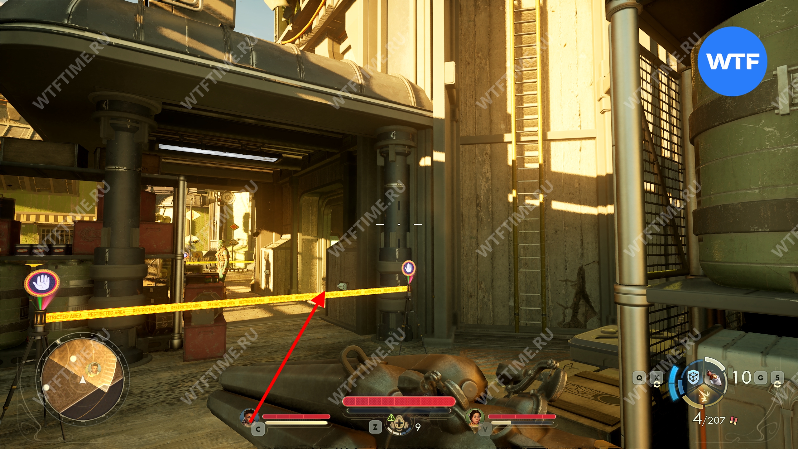 Чтобы туда попасть, зайдите с правой стороны, где находится лестница на крышу. Присядьте и подождите некоторое время, чтобы охранник отошел от входа. Затем войдите внутрь и закройте за собой двери.