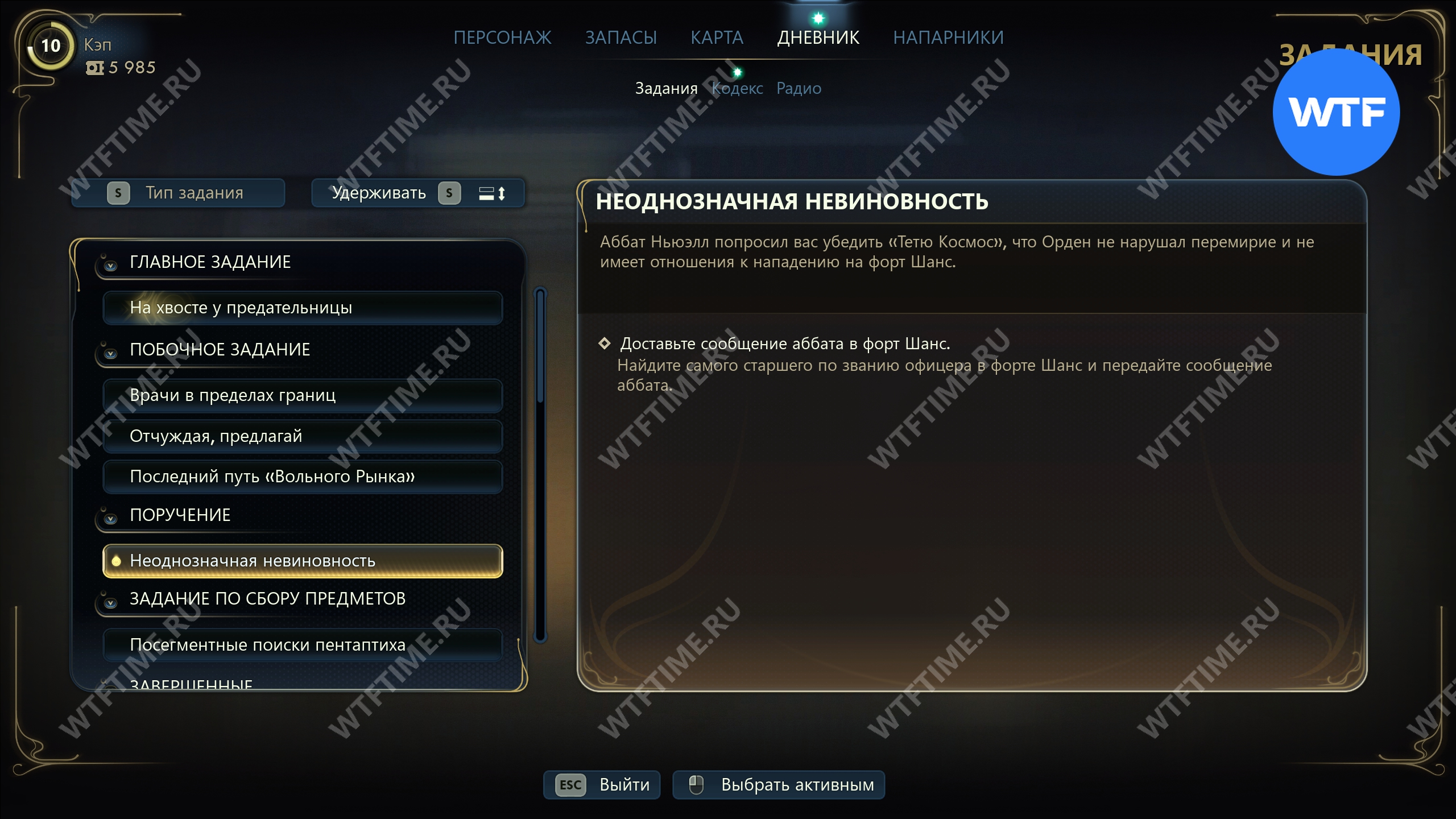 Вы найдете его в приюте «Милость Матриарха» в южной части Золотой гряды. Во время этого разговора он также попросит вас заглянуть в форт Шанс и убедить «Тетю Космос», что Орден не нарушал перемирие и не имеет никакого отношения ко взрыву.
