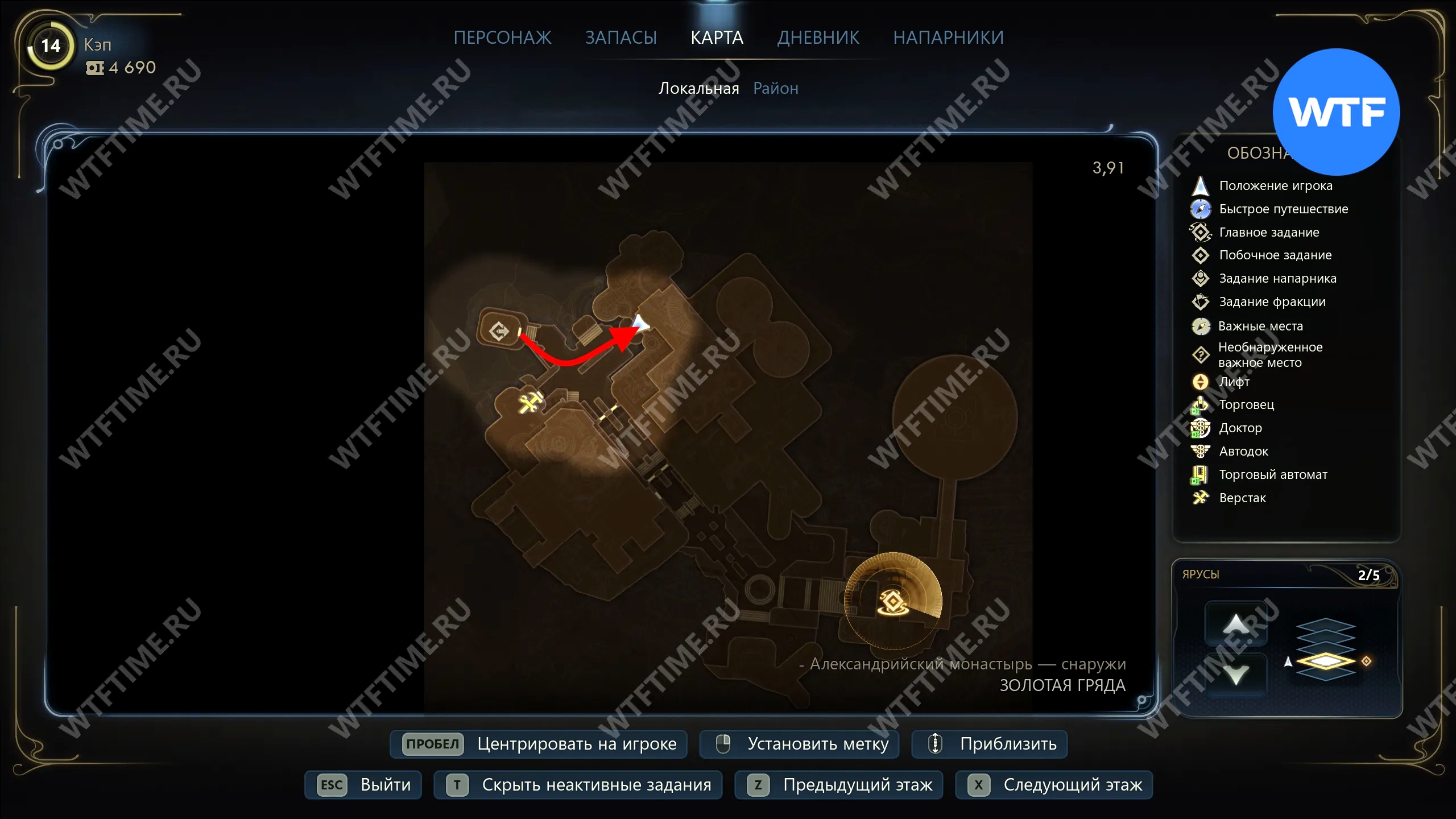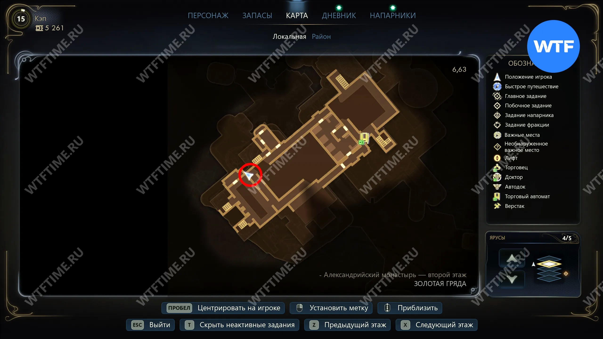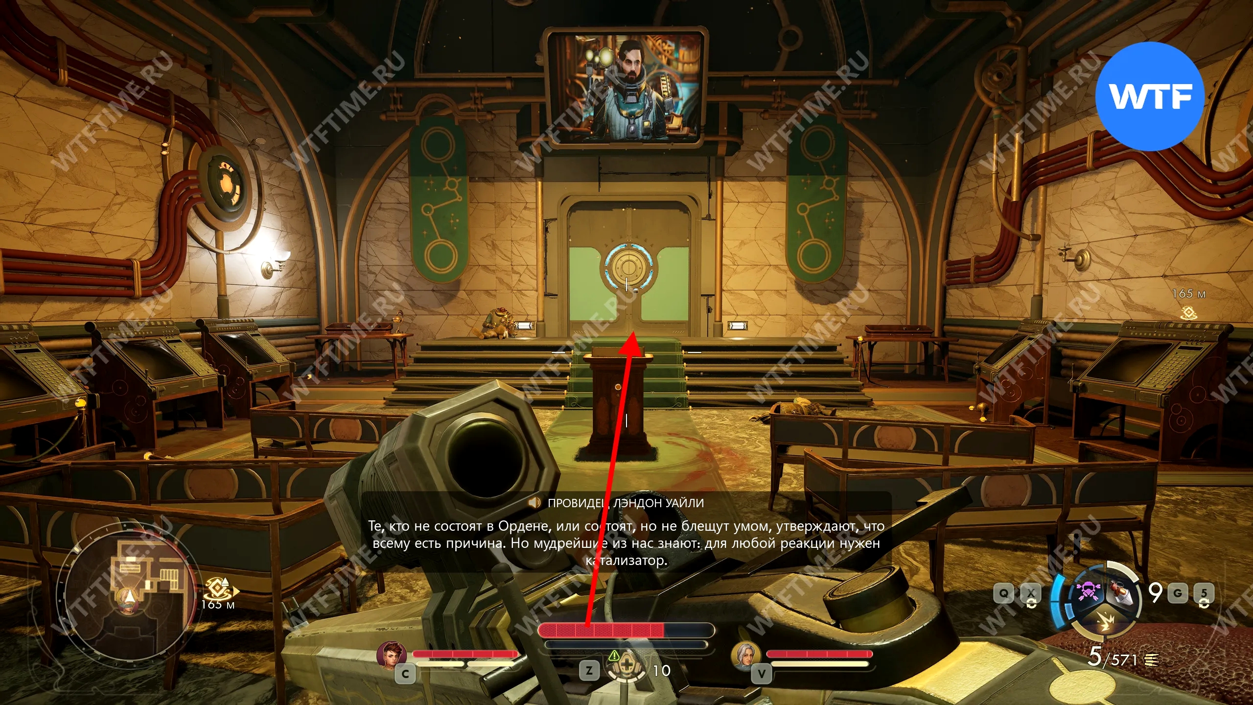 Поднявшись на лифте в монастырь, идите в сторону здания на северо-востоке и войдите внутрь. Затем пройдите через дверь под большим экраном с провидцем Уайли и идите по коридору направо.